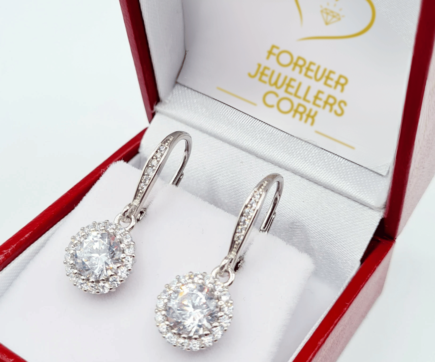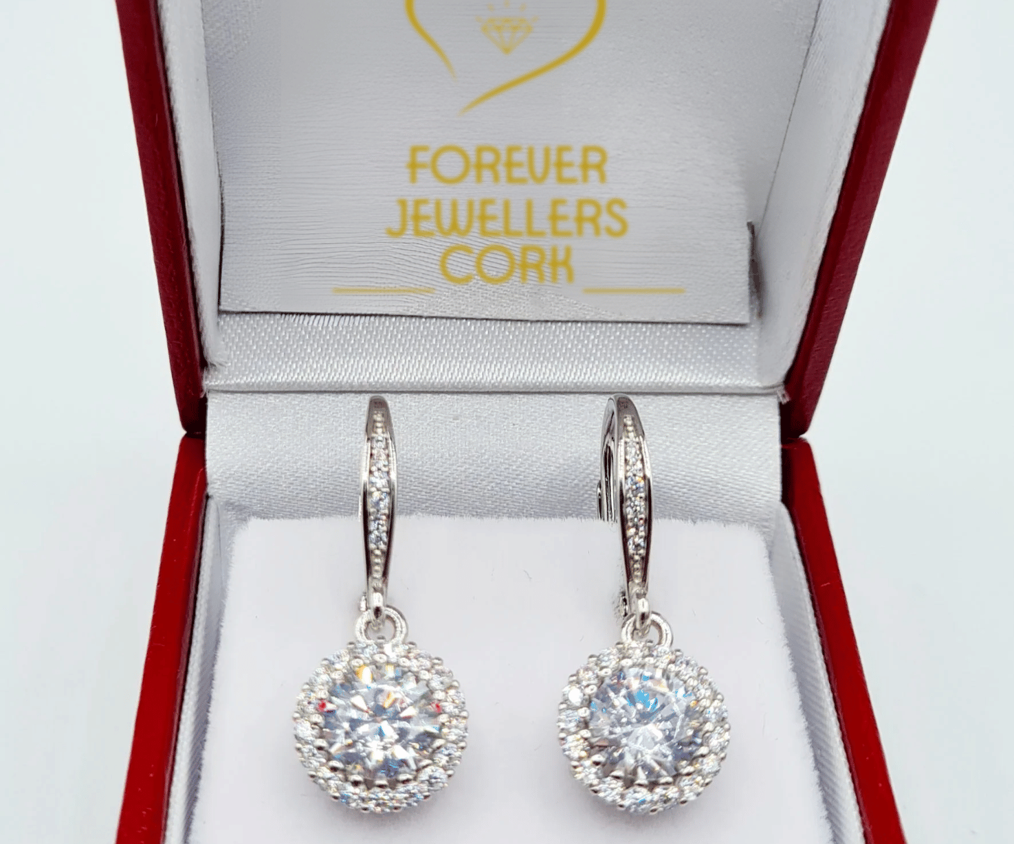 Sterling Silver CZ Halo Drop Earrings & Pendant Set