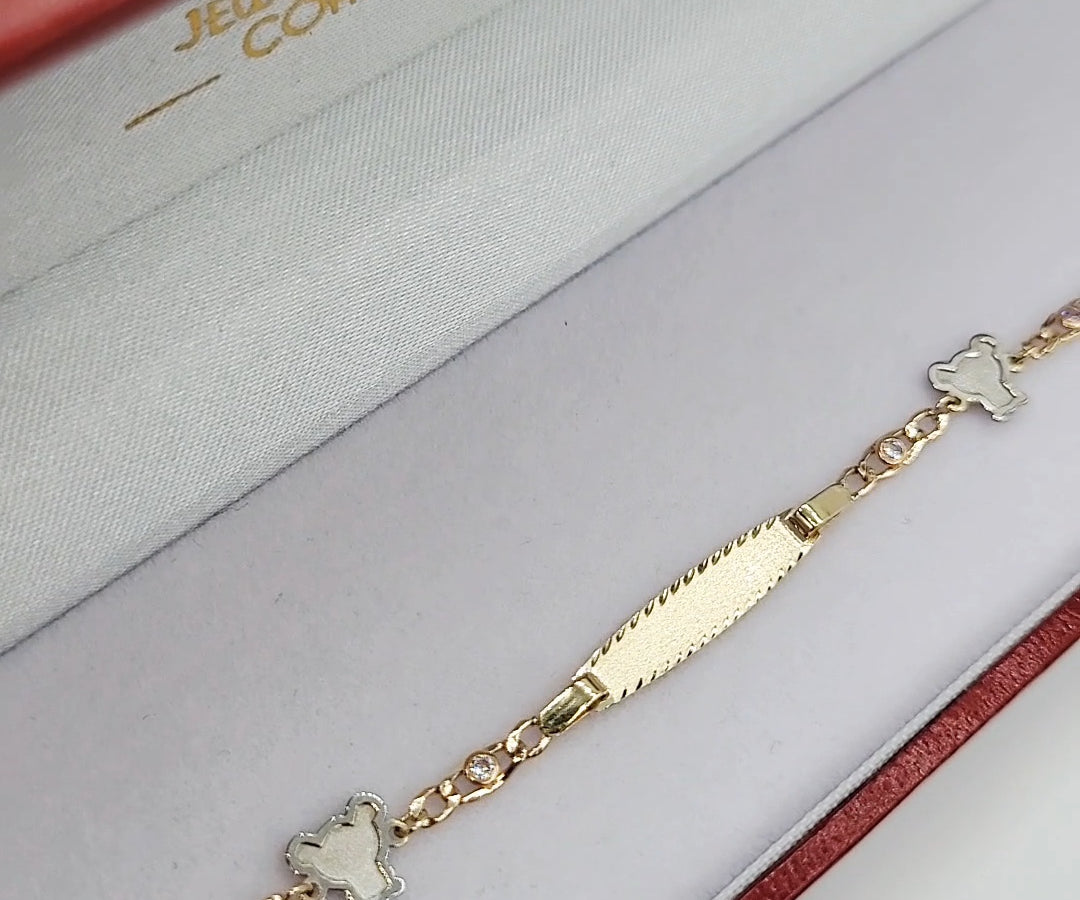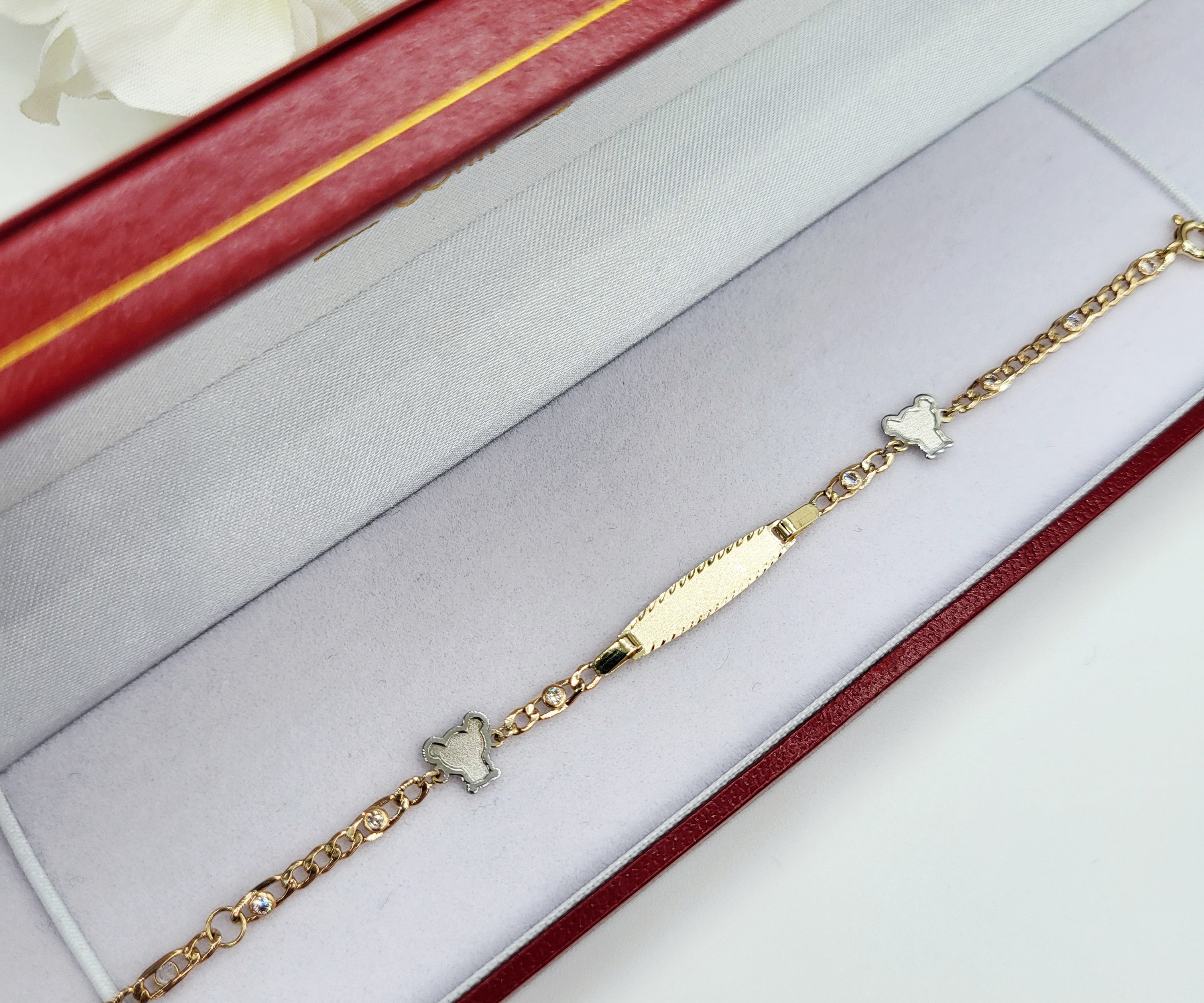 9ct Gold Teddy Bear I.D. Bracelet with CZ