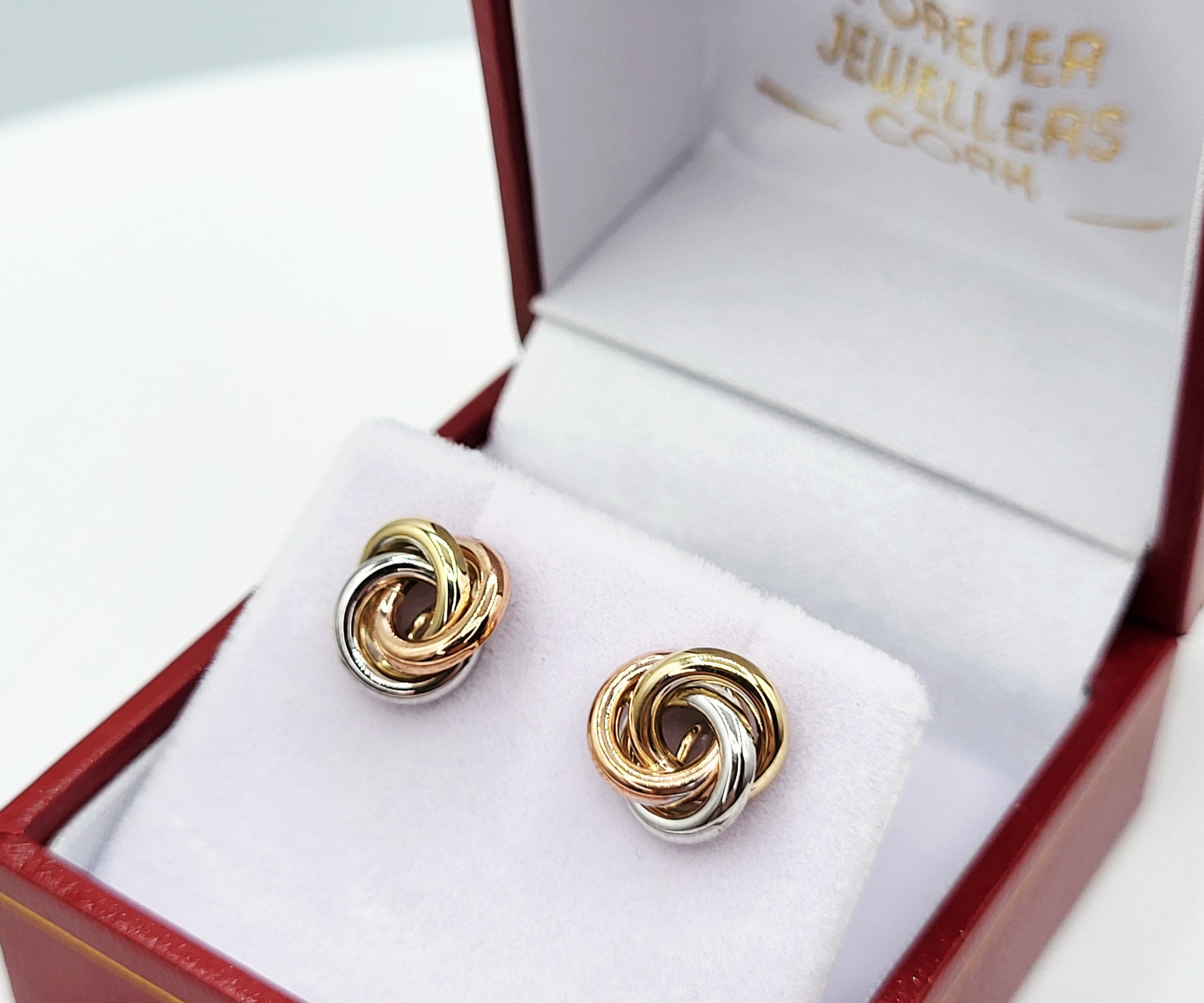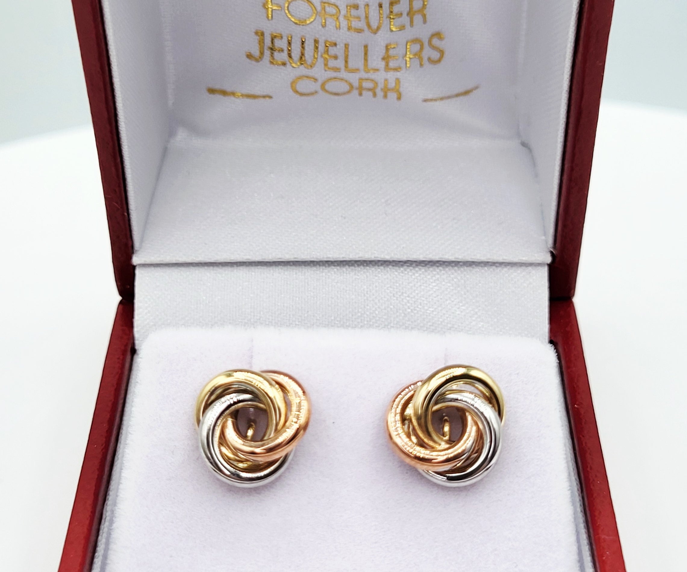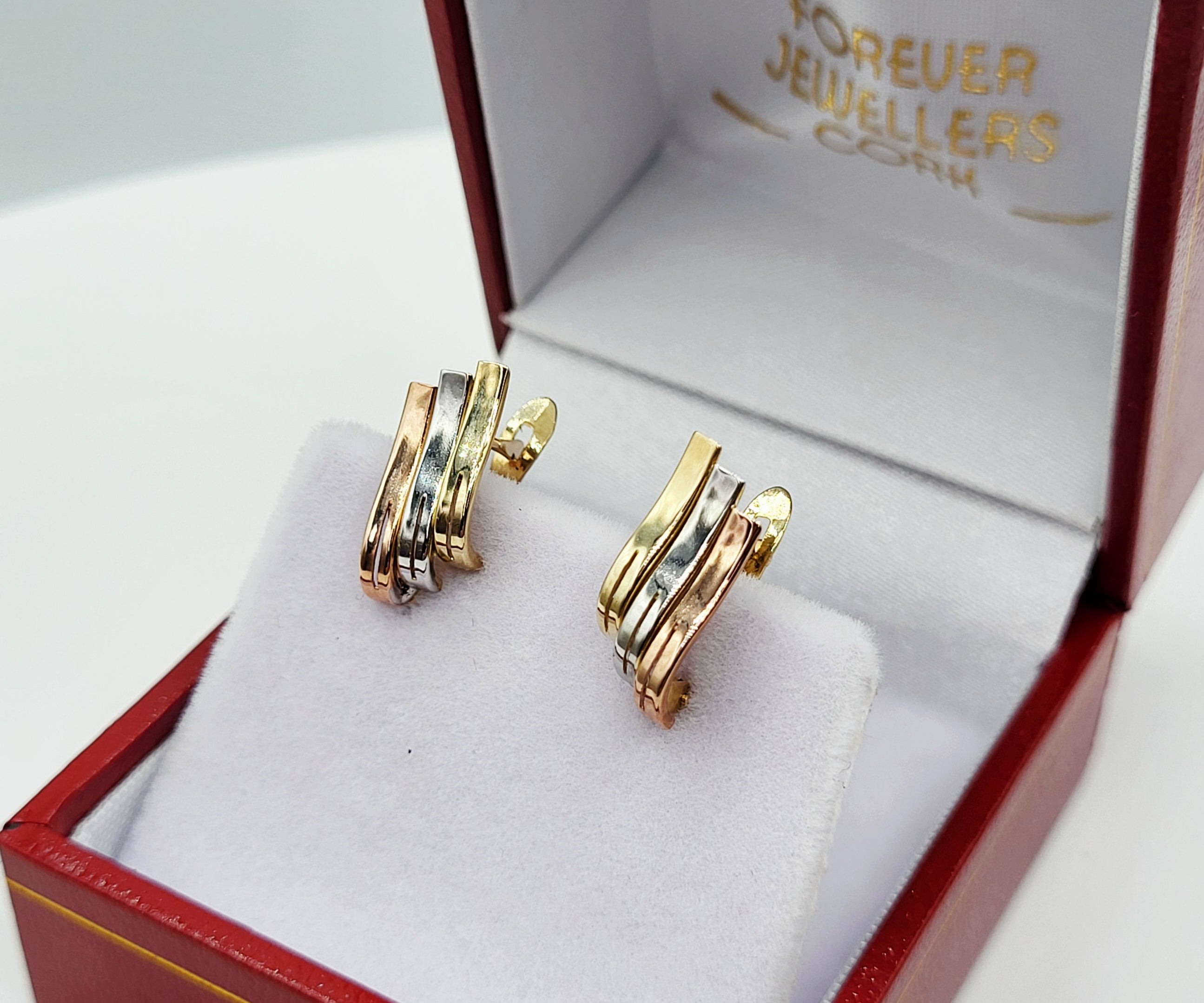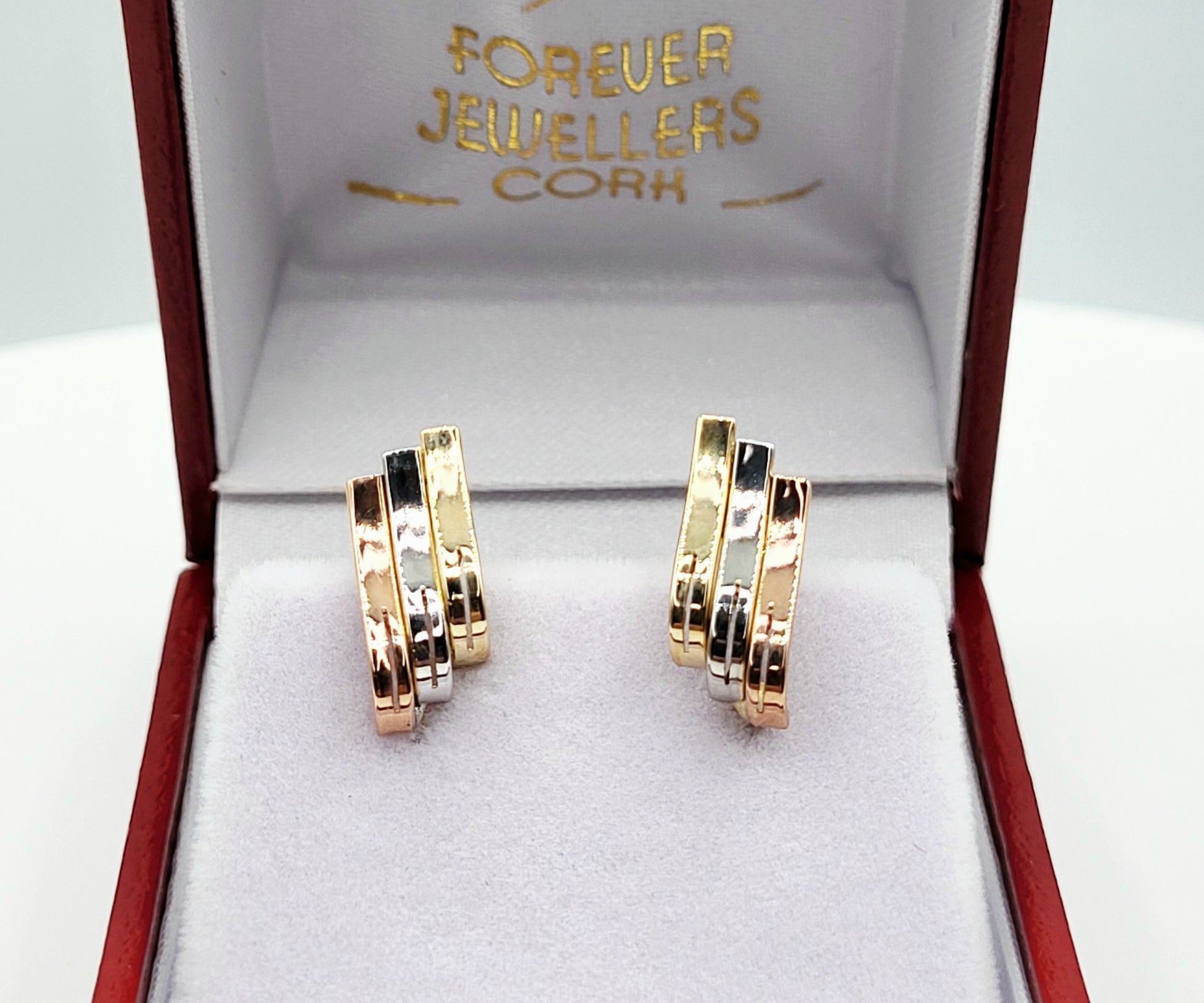 9ct Three Colour Gold Earrings ~Yellow, White & Rose Gold