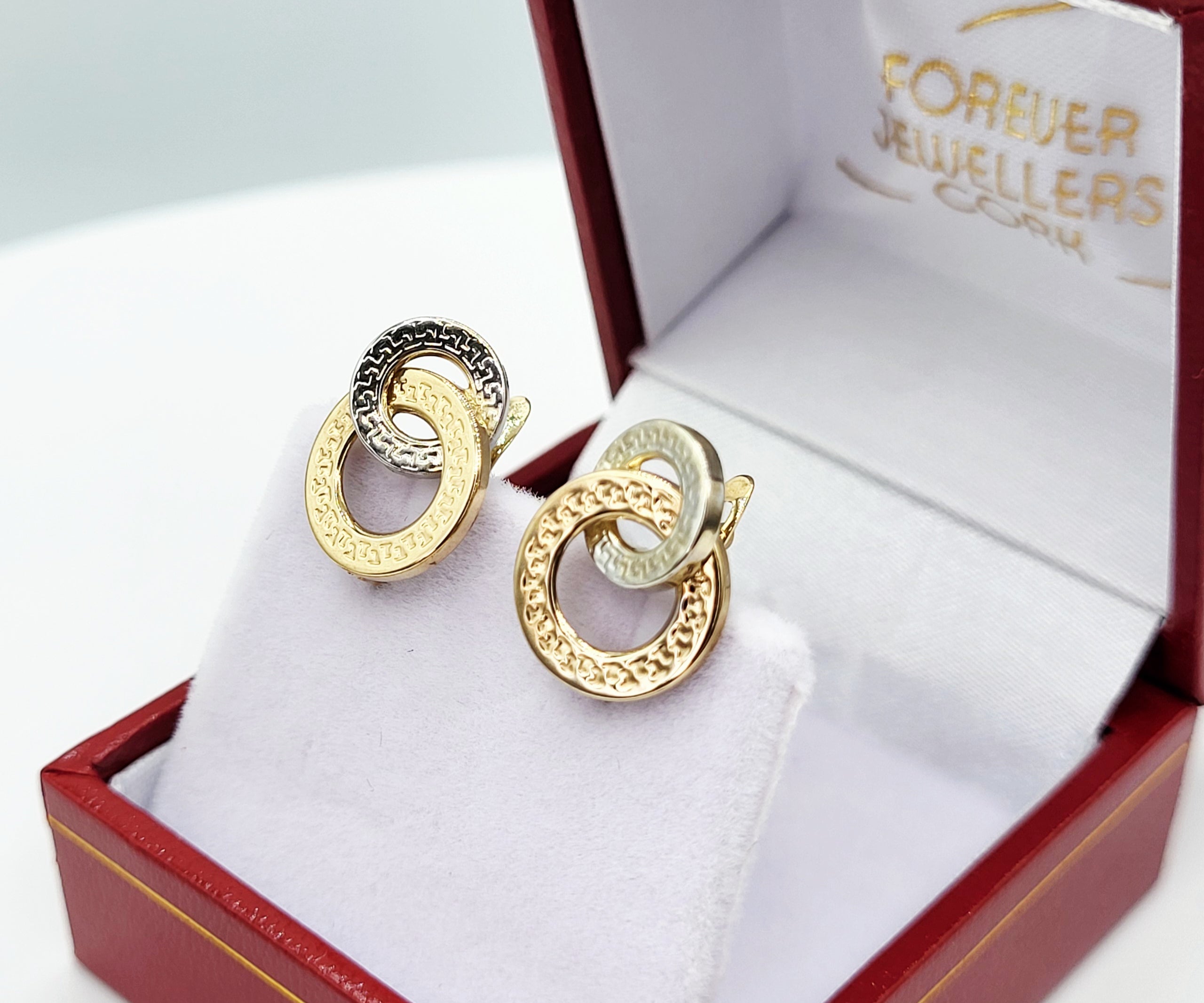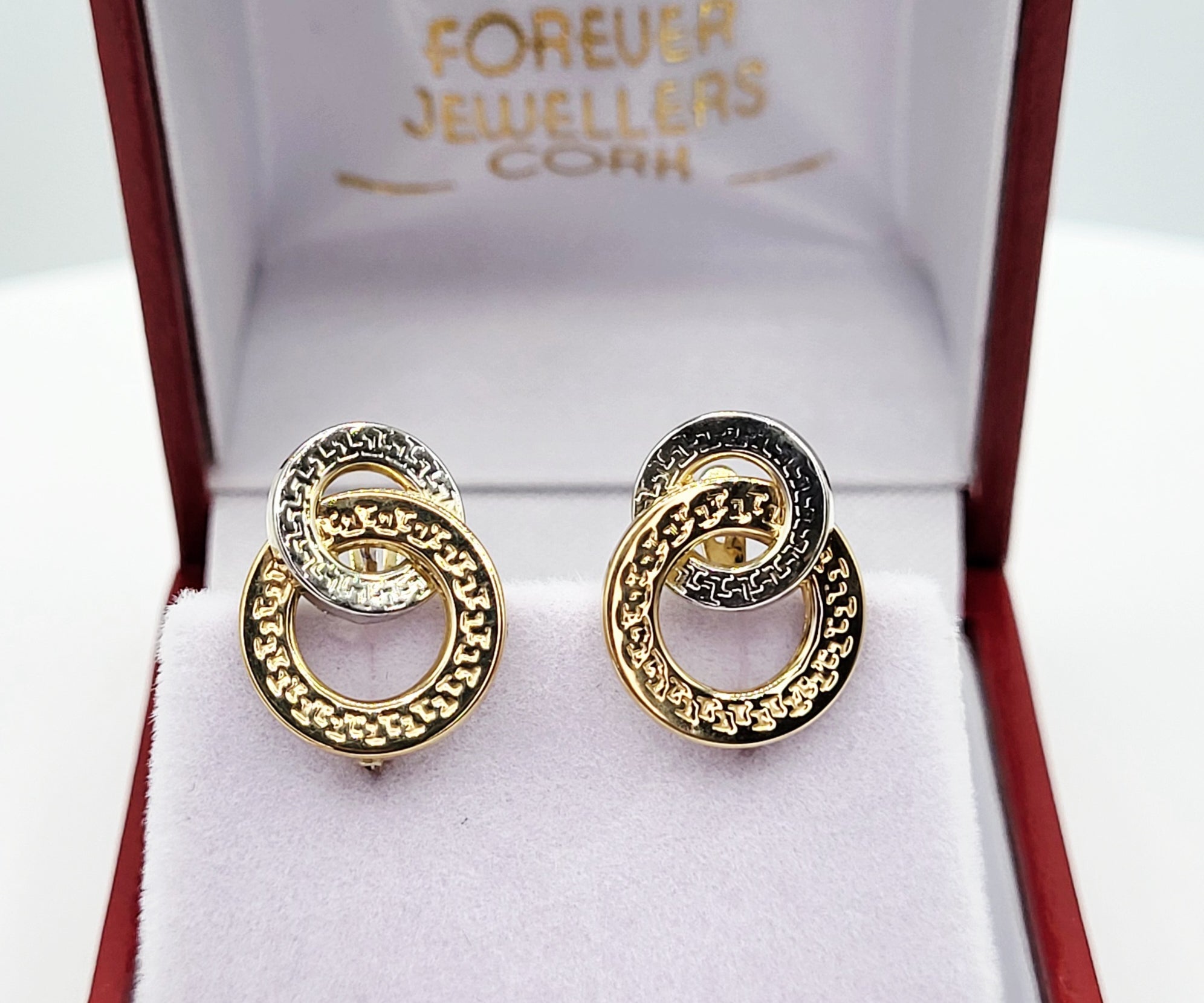 9ct White & Yellow Gold Interlocking Circle Earrings