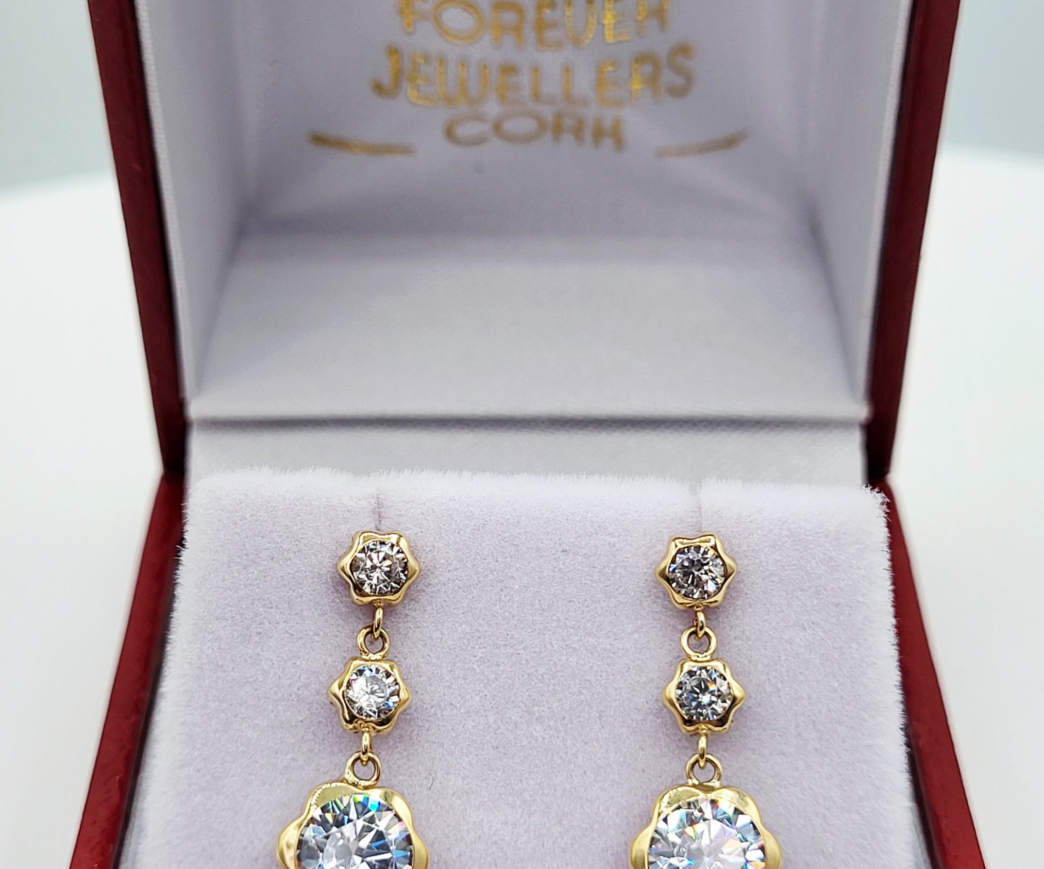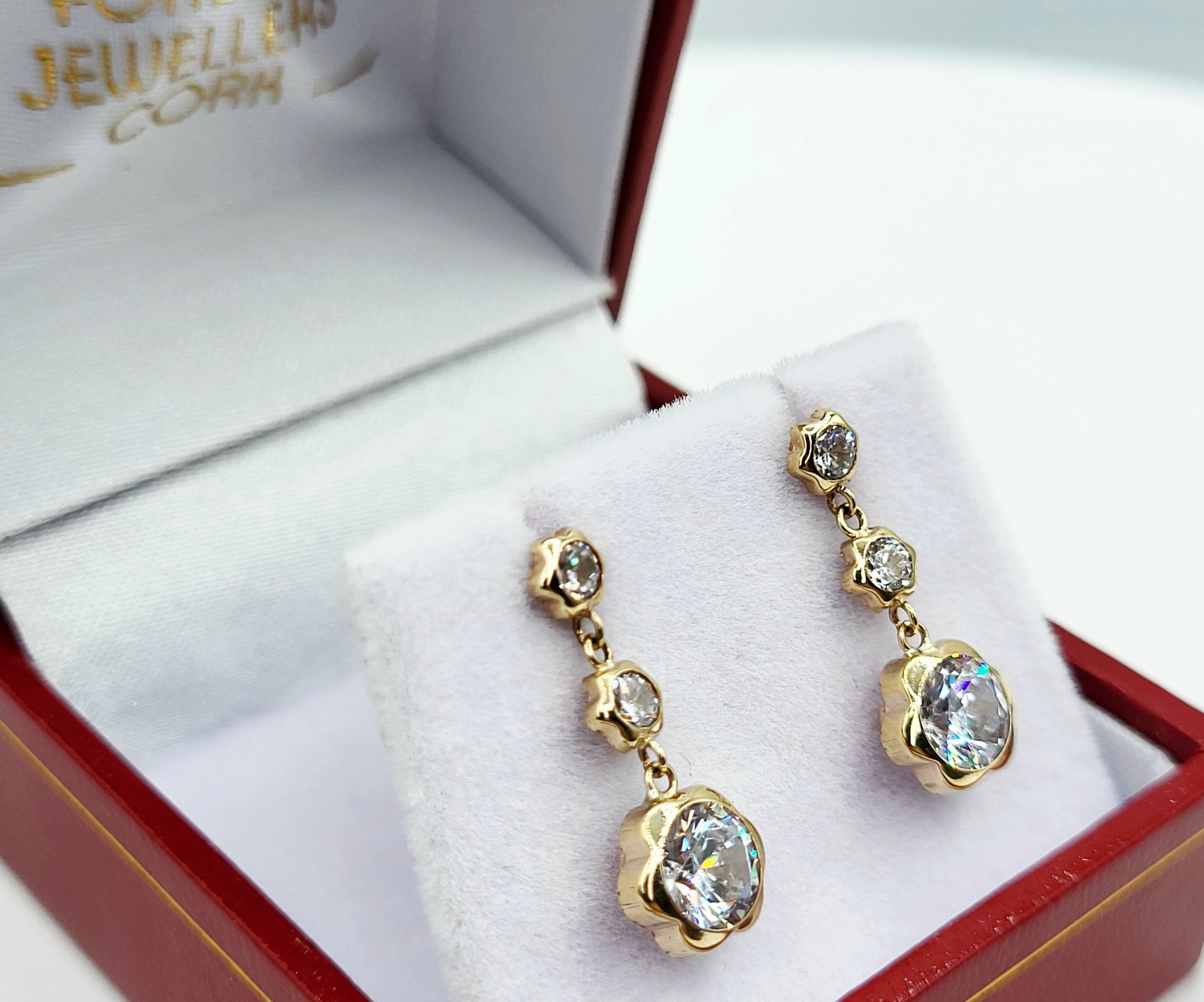 9ct Gold Cubic Zirconia Round Earrings Style (Medium size)