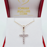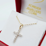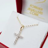 9ct Gold Cubic Zirconia Cross on 20" Belcher Chain