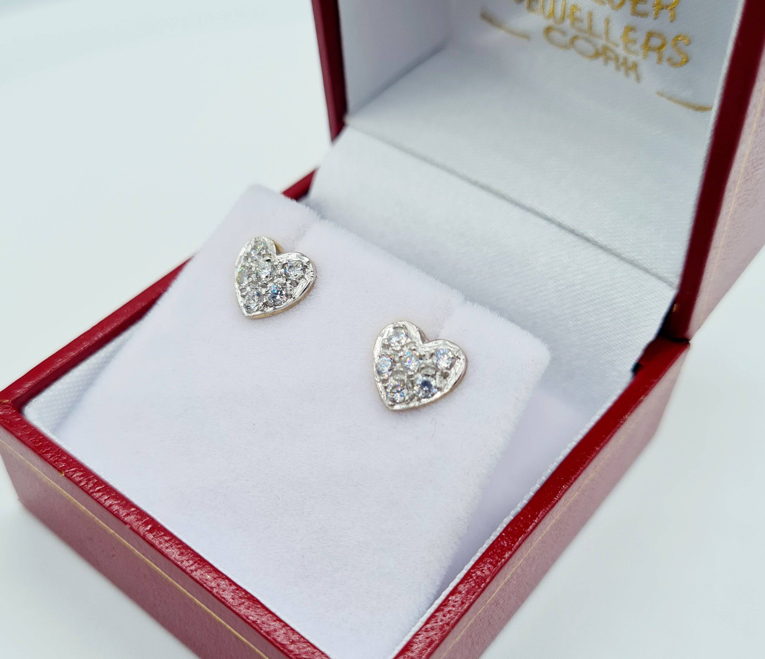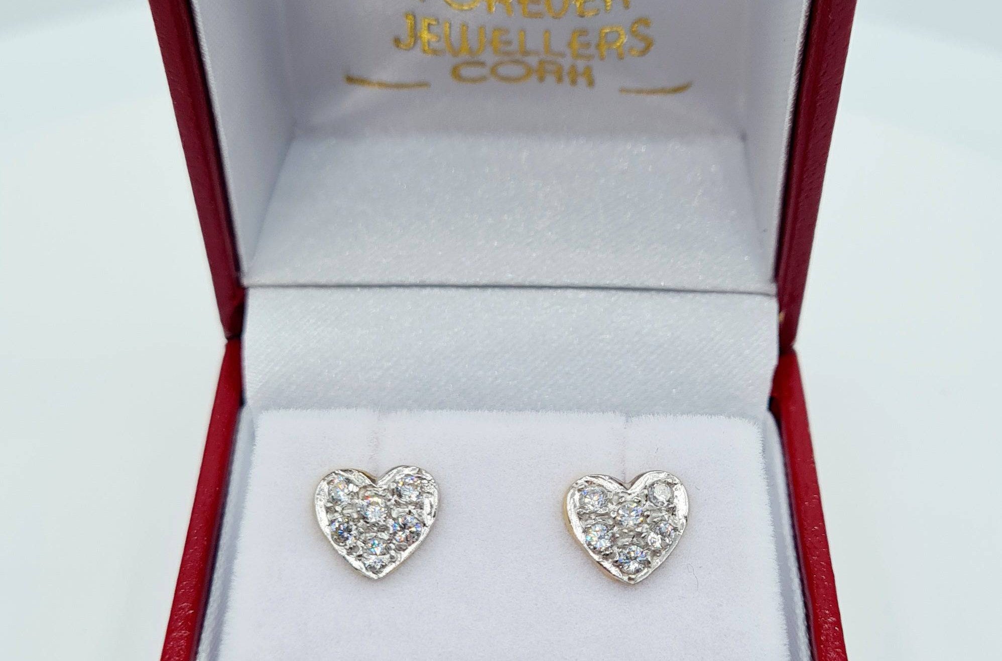 9ct Gold Cubic Zirconia Heart Stud Earrings