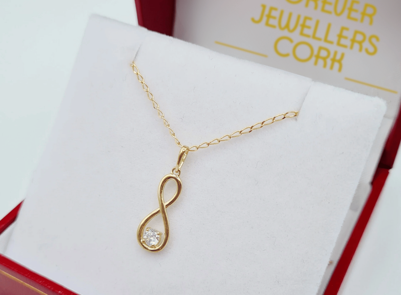 9ct Gold CZ Infinity Pendant on 18" Chain