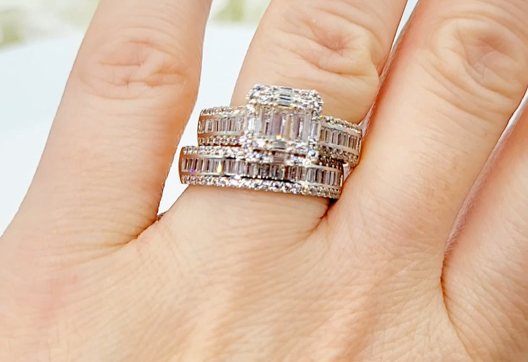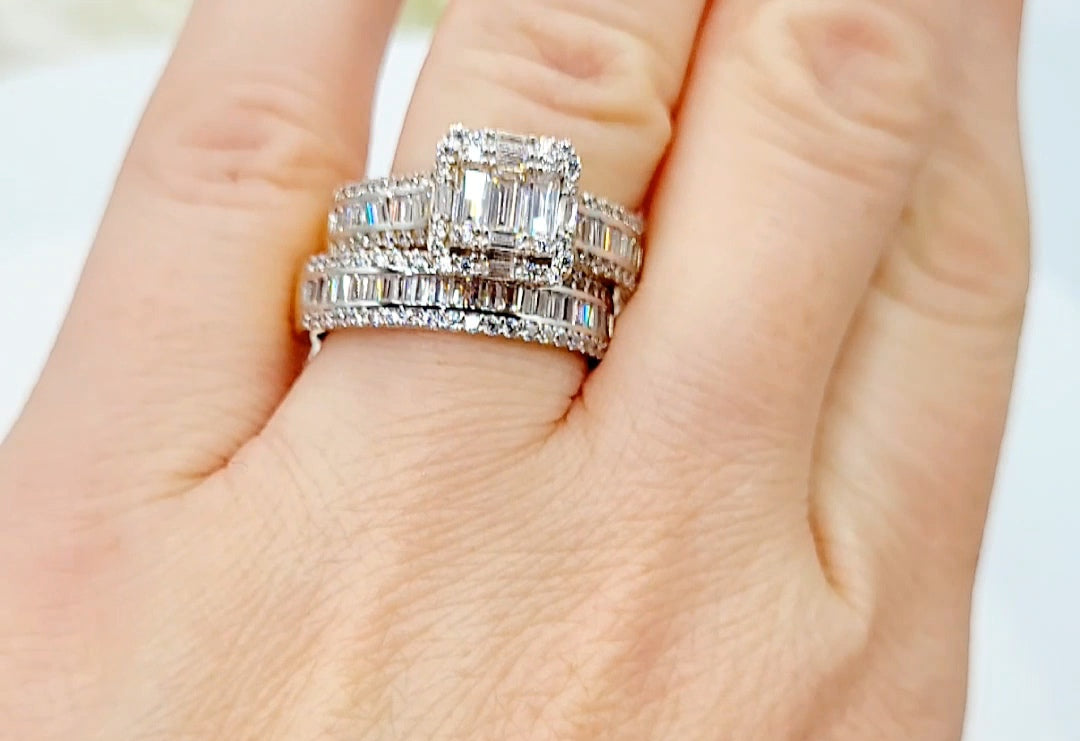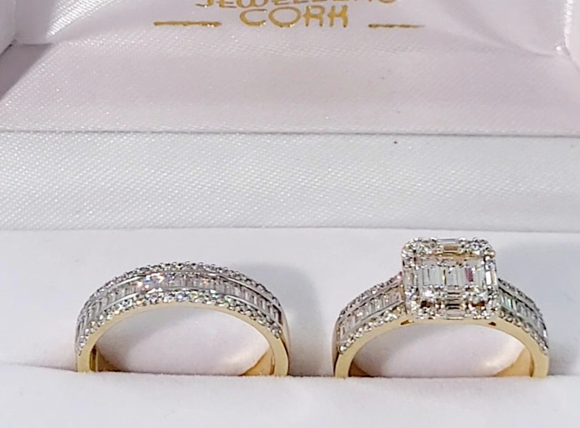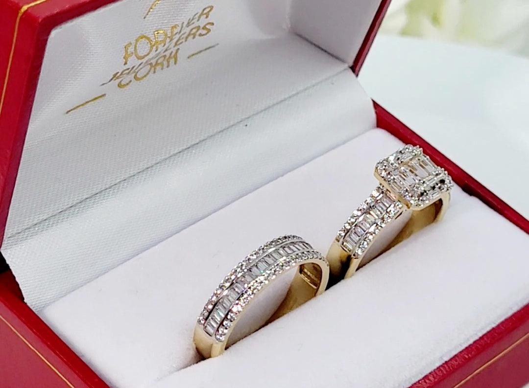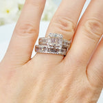 9ct Gold Evie Ring Set ~ Stunning Round & Baguette Cubic Zirconia Two Piece Ring Set in 9ct Gold