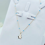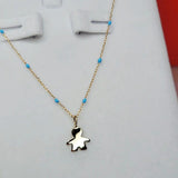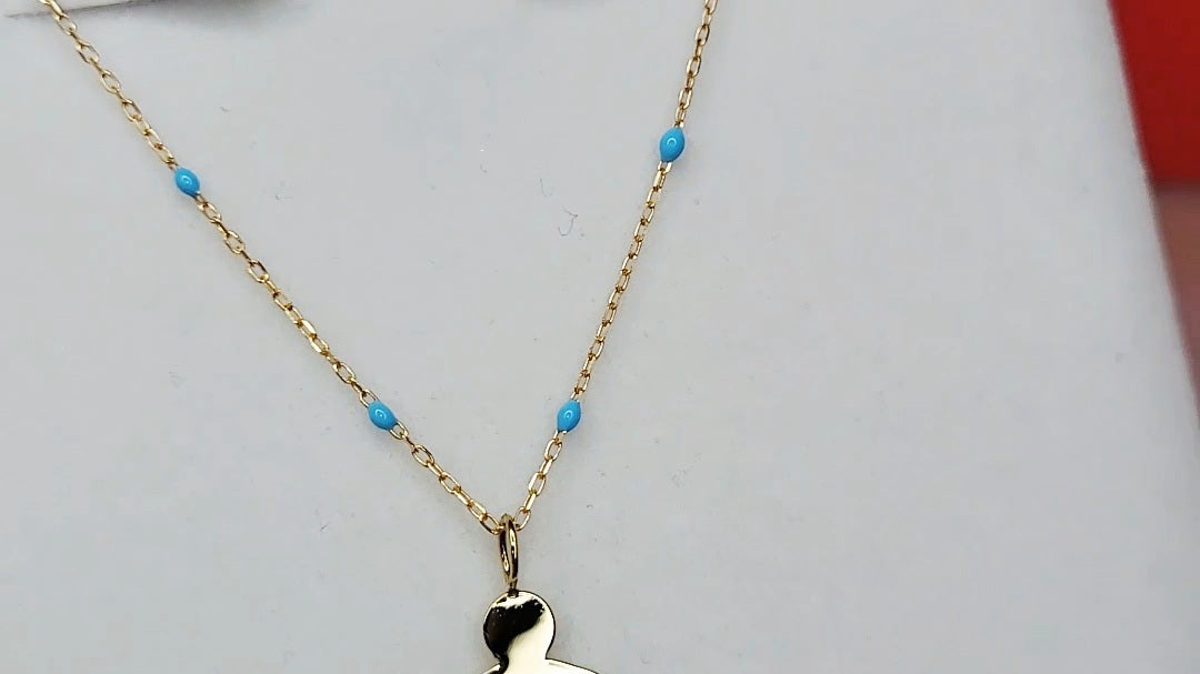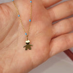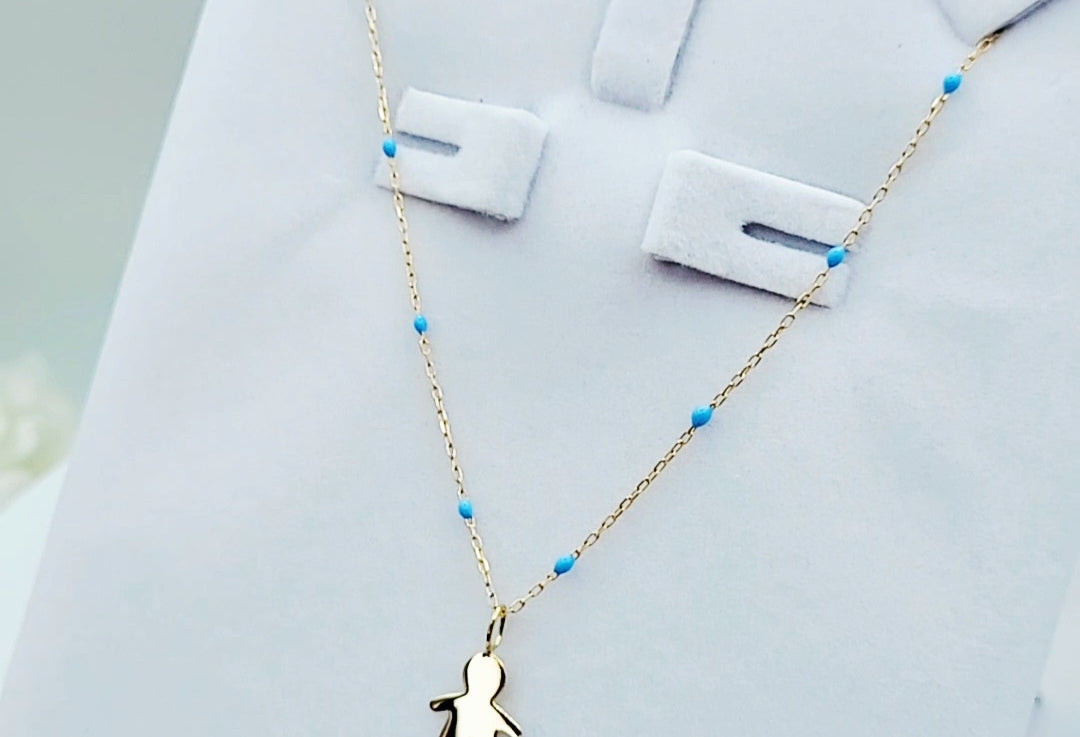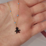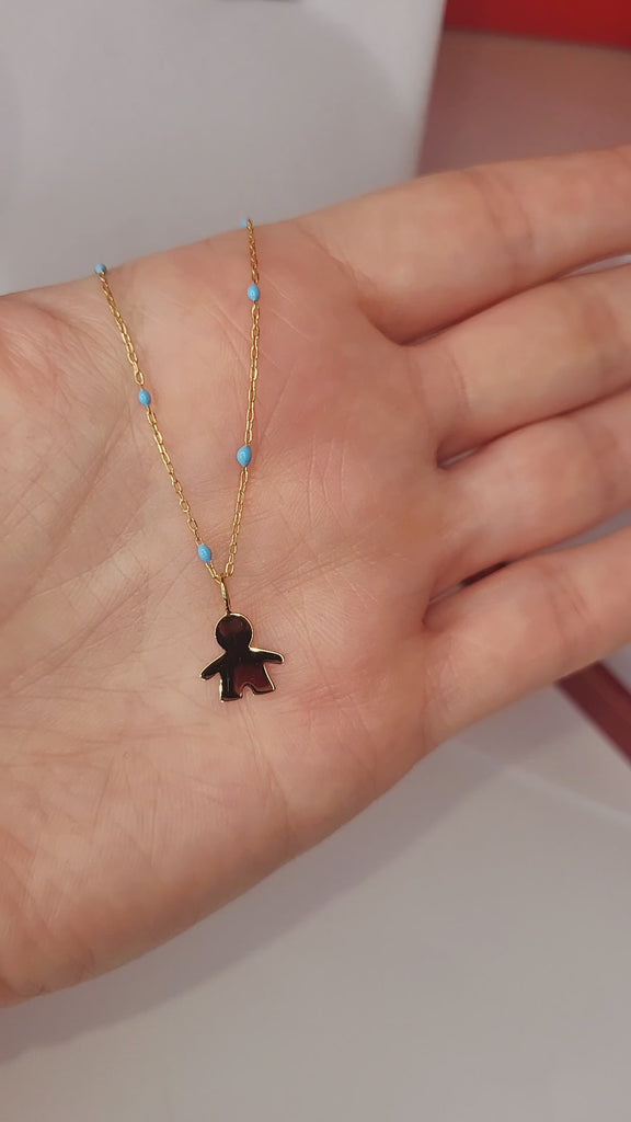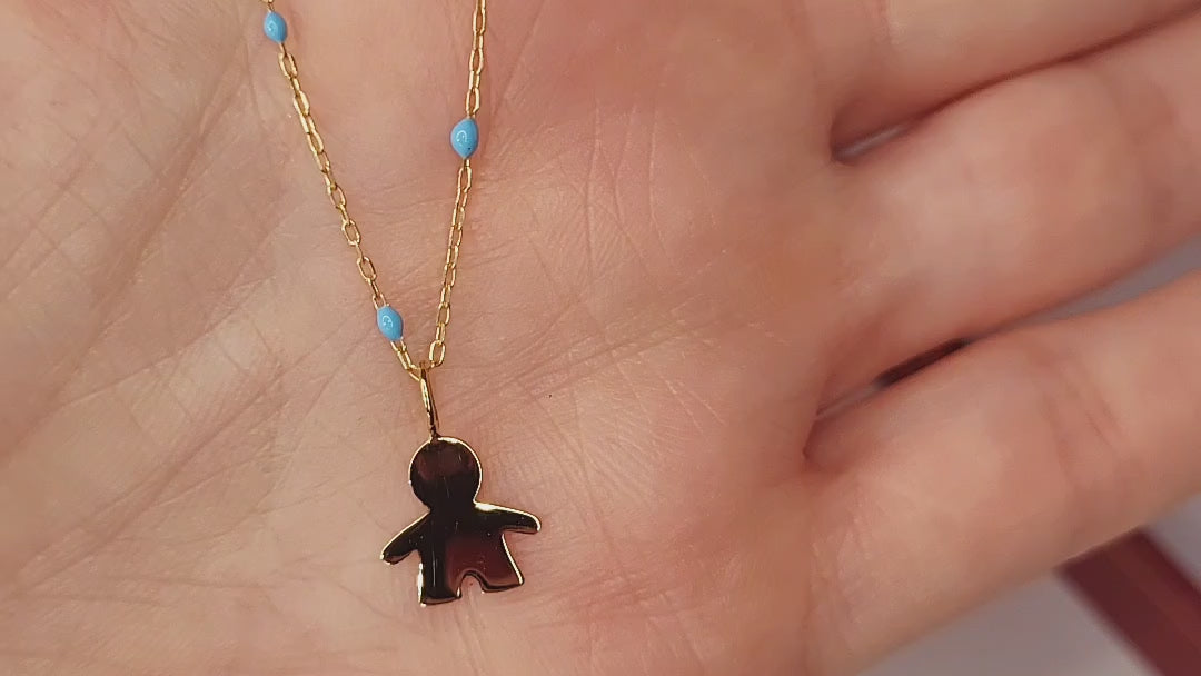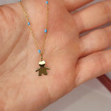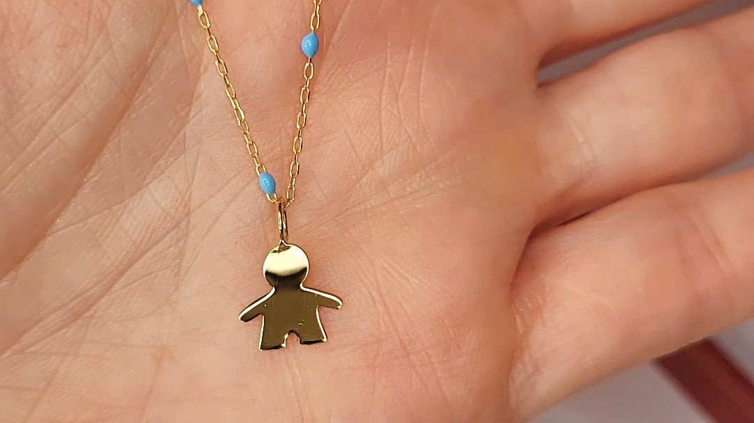 9ct Gold Little Boy Pendant on 9ct Gold chain with Blue Enamel detail