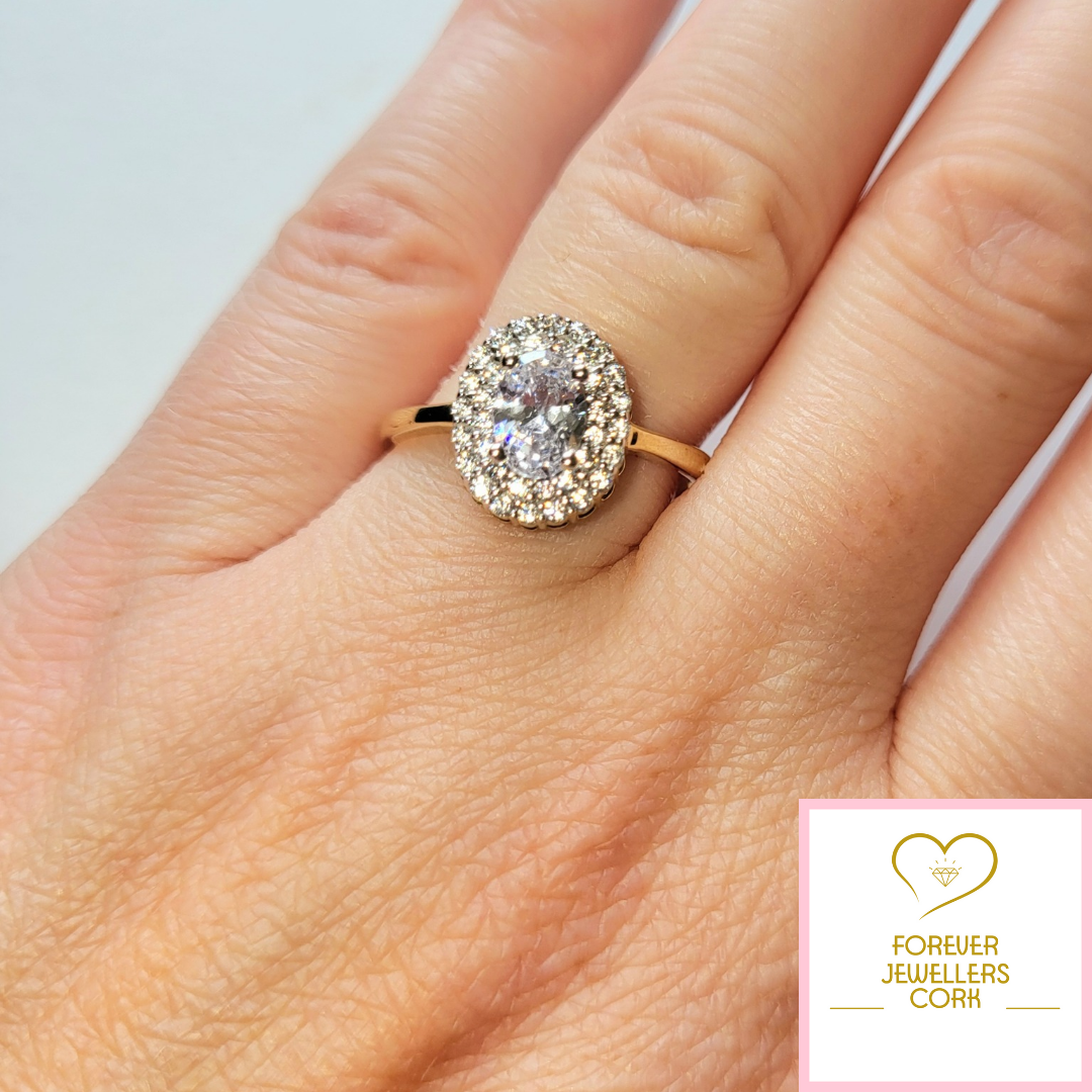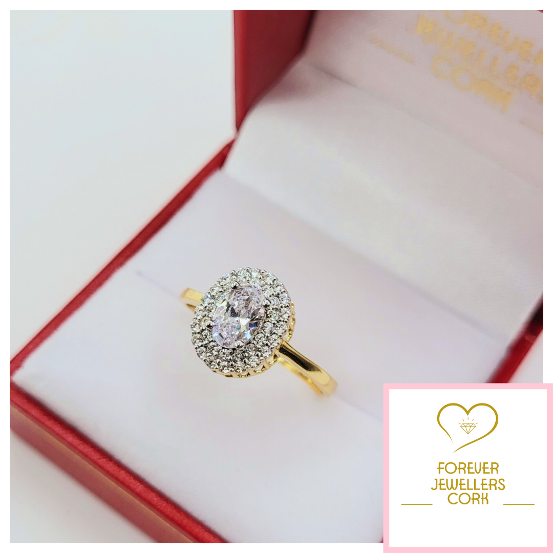 9ct Gold Oval Cubic Zirconia Double Halo Ring