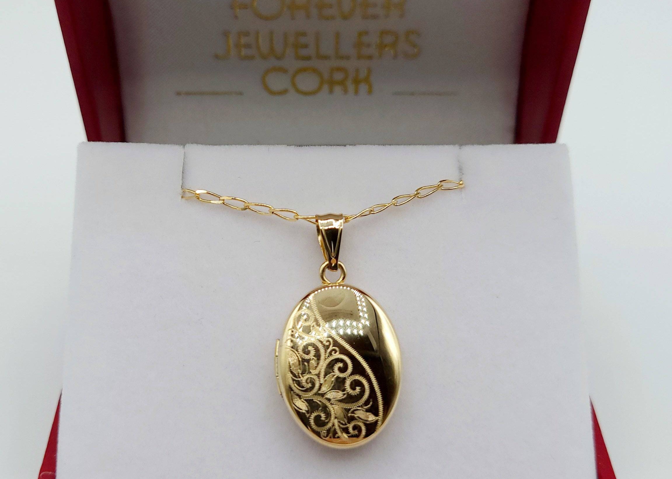 9ct Gold Oval Locket & Chain
