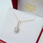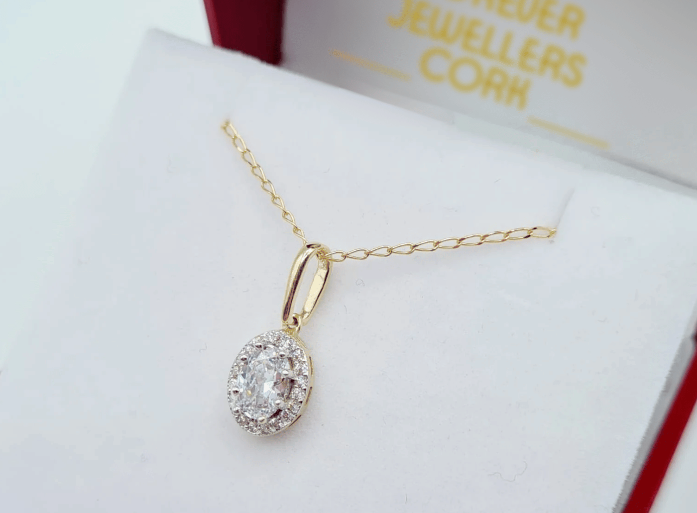 9ct Gold oval set Cubic Zirconia Pendant on 9ct Gold Chain