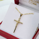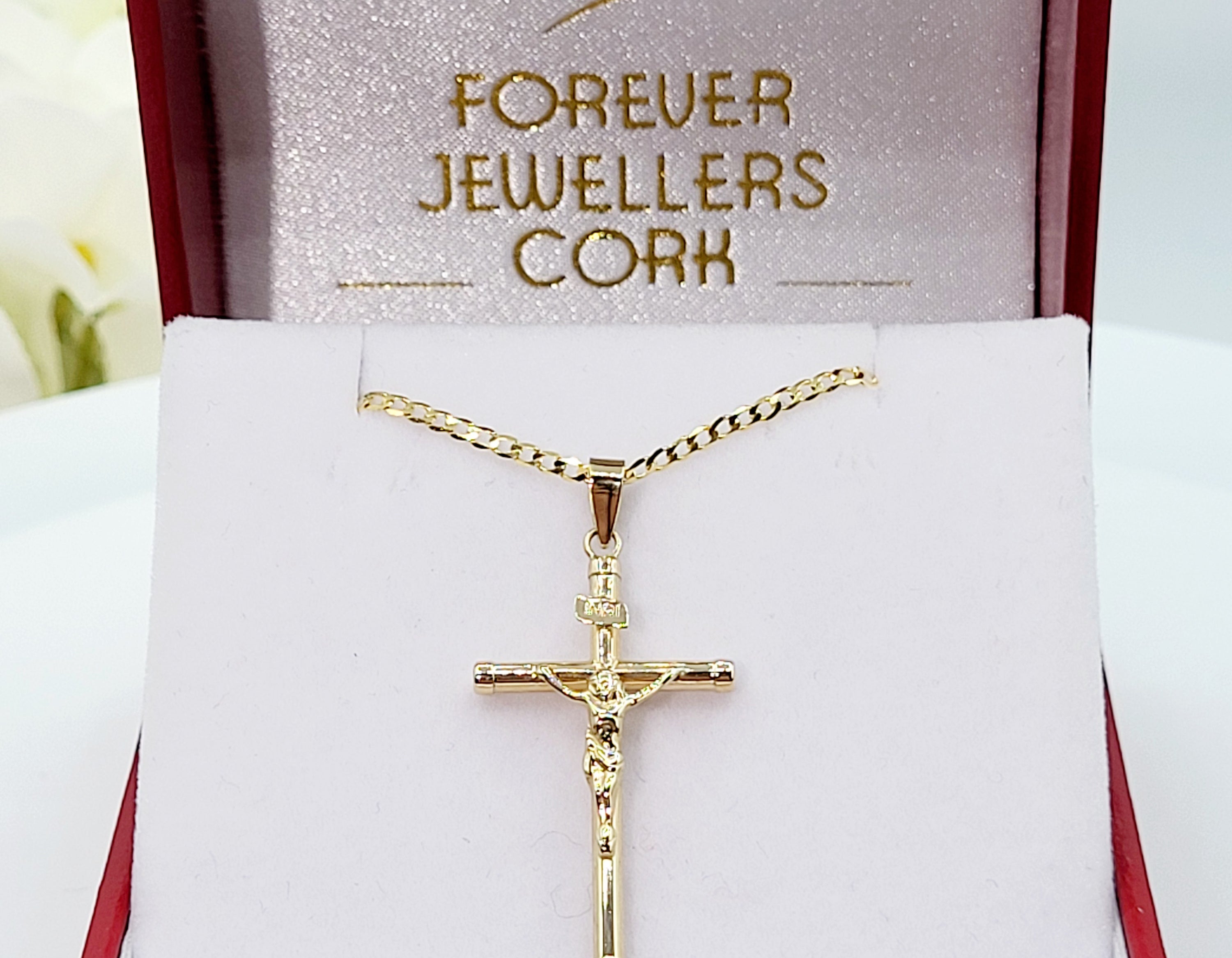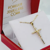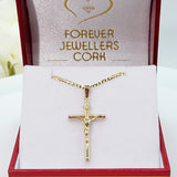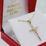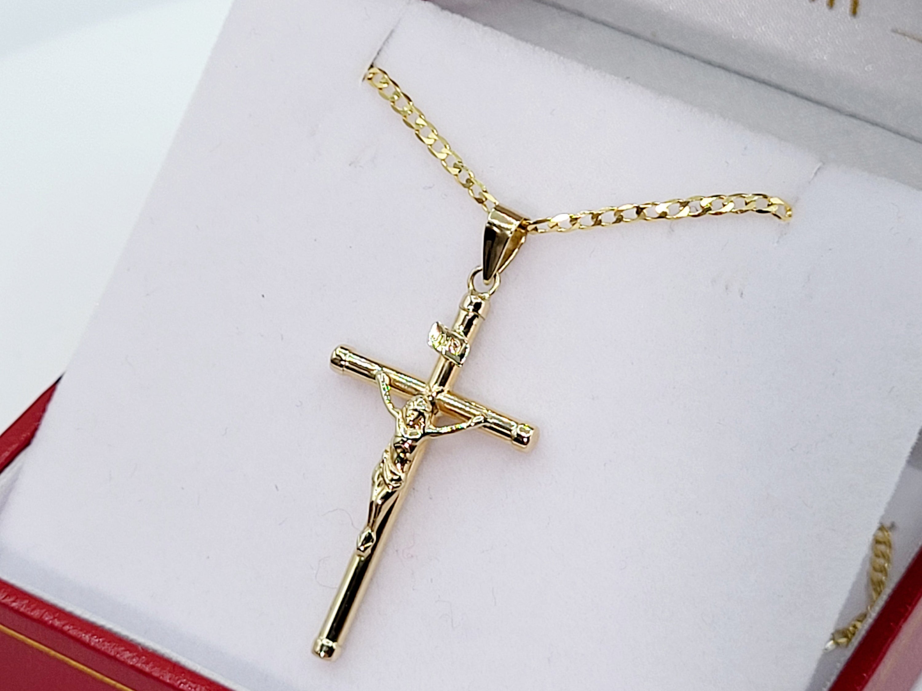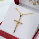 9ct Gold Tubular Crucifix Cross & Curb Chain