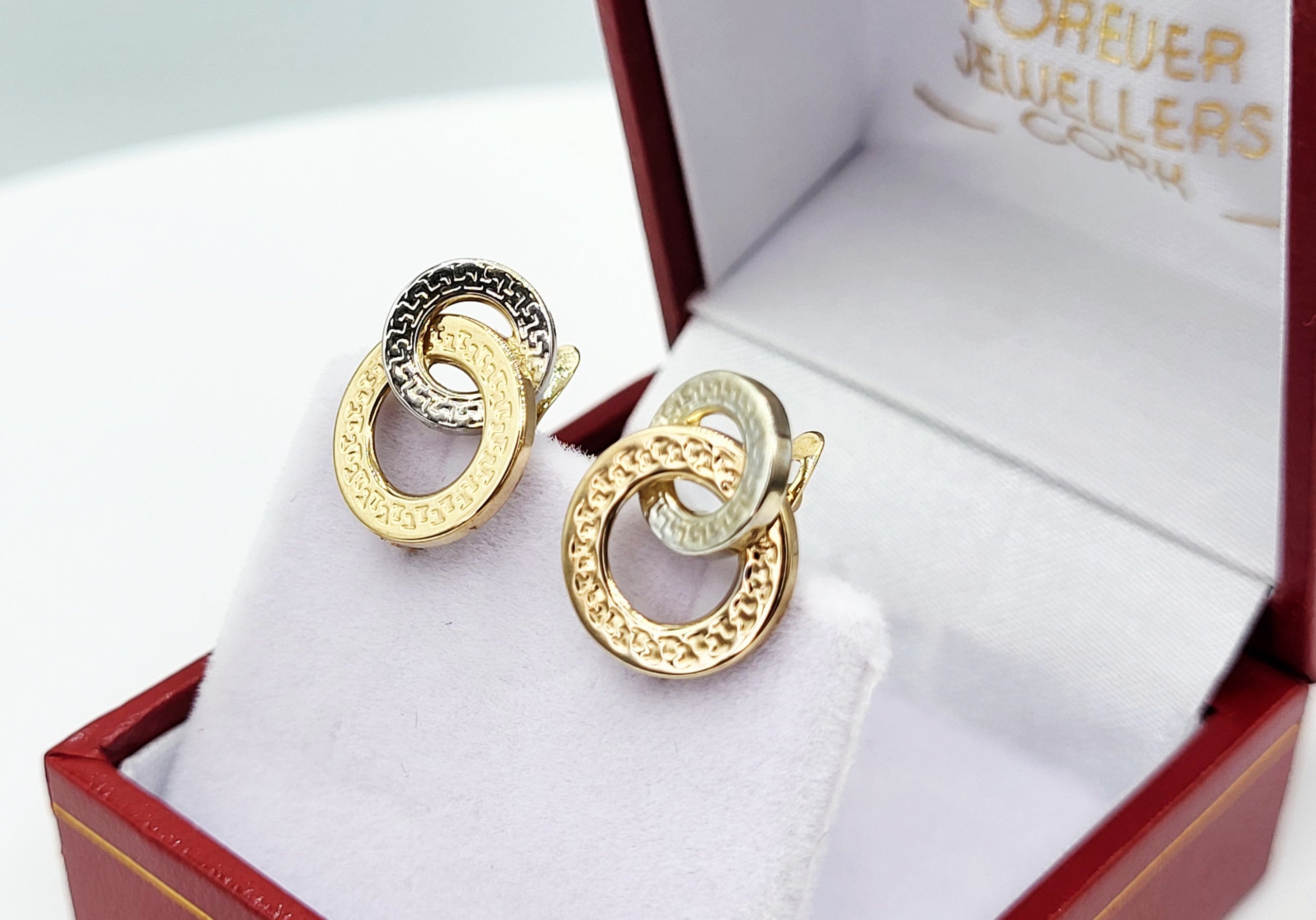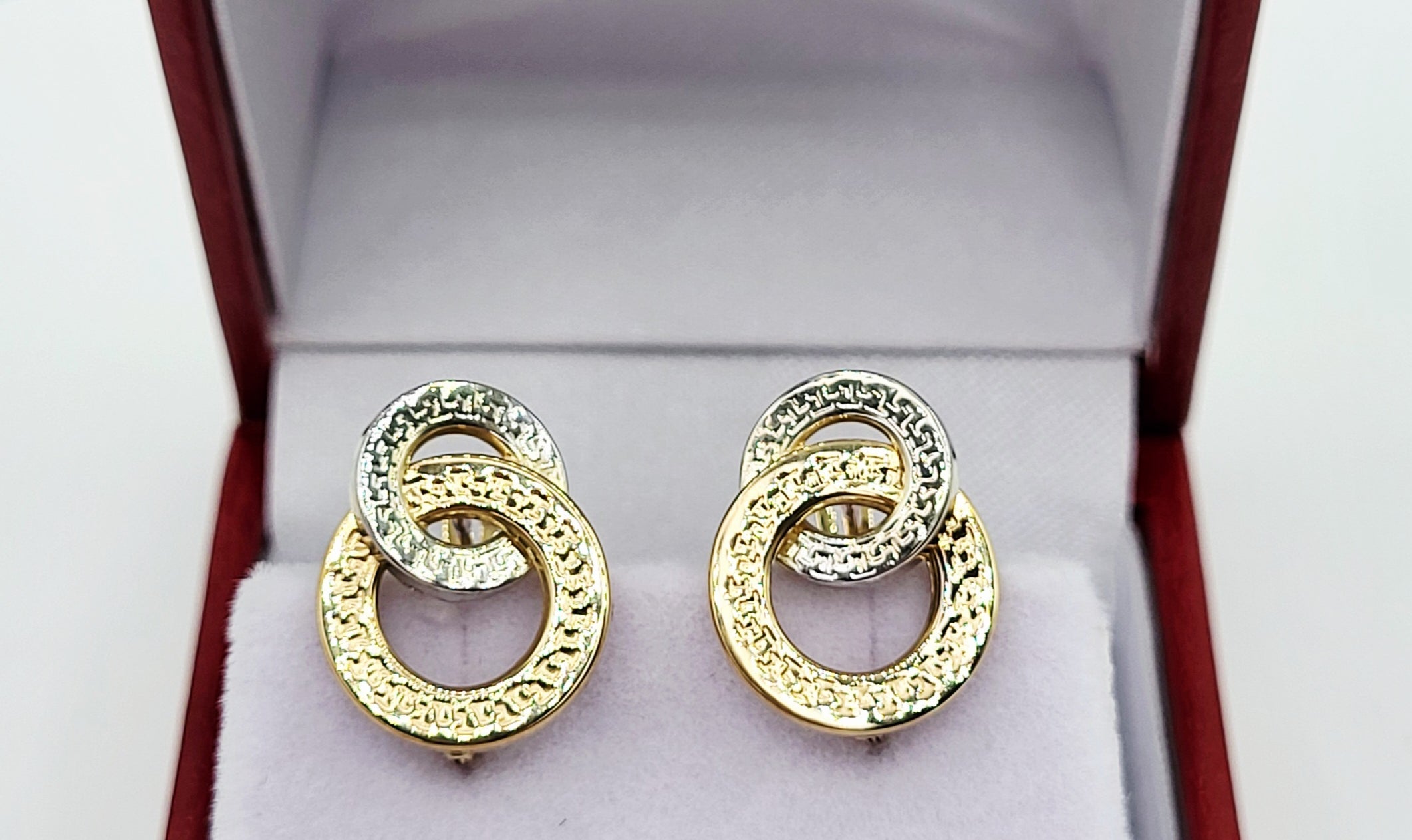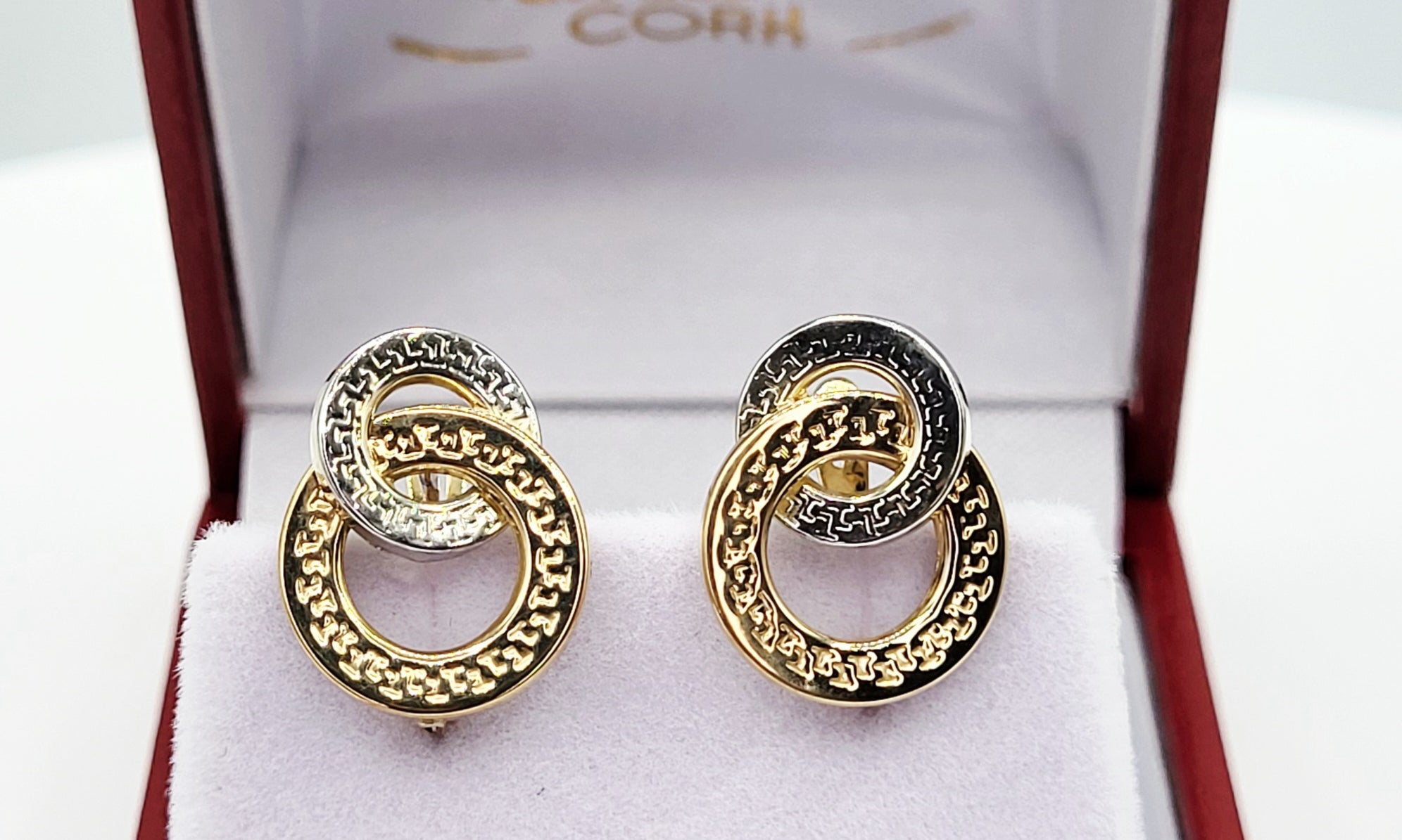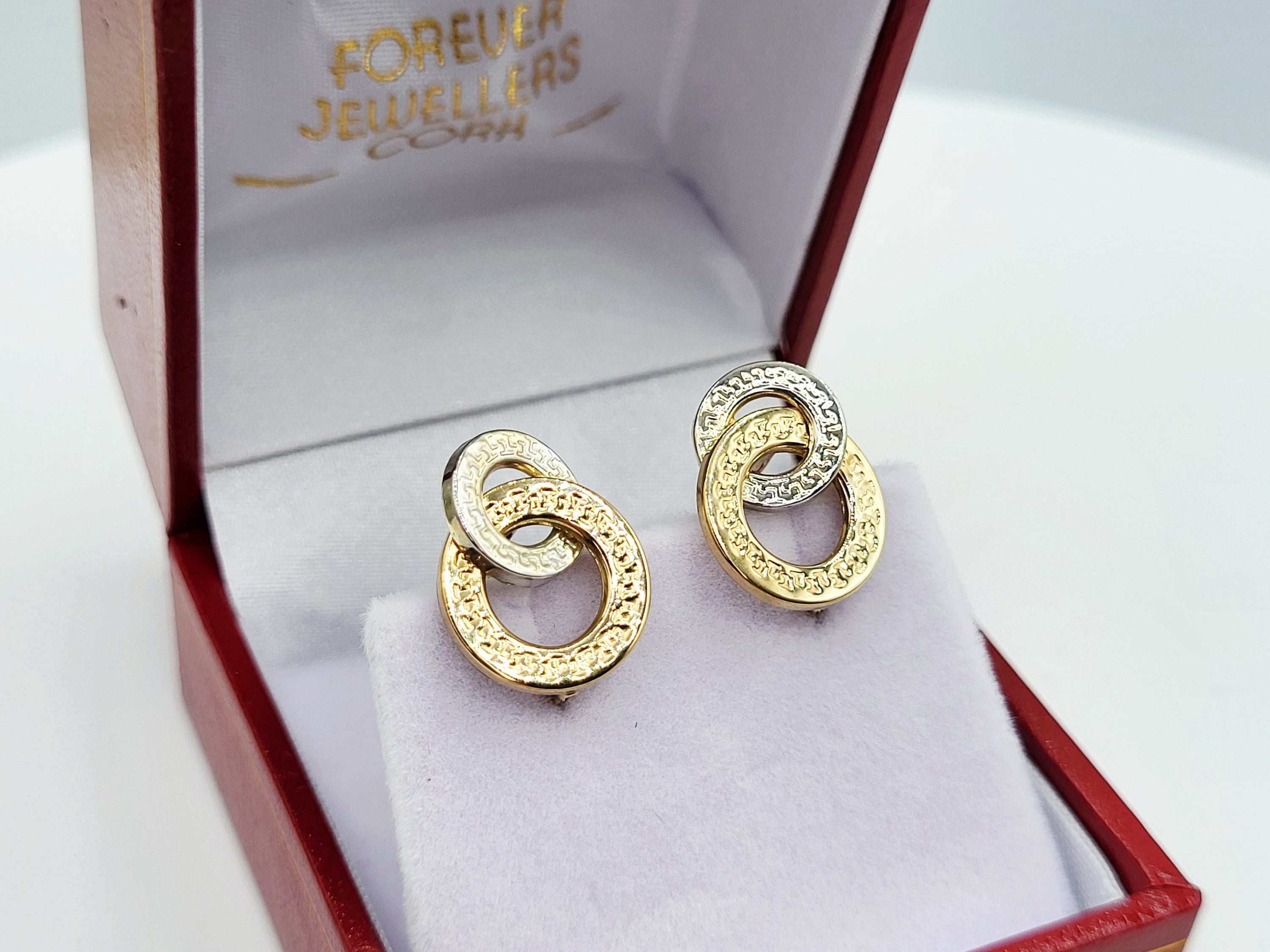 9ct White & Yellow Gold Interlocking Circle Earrings