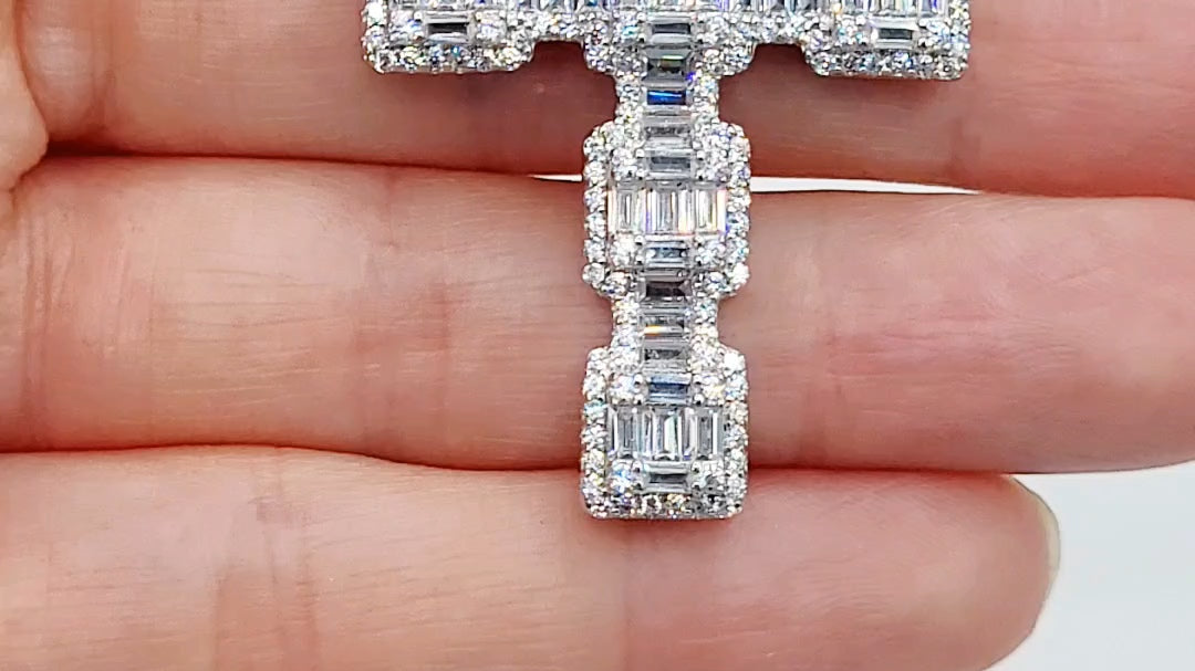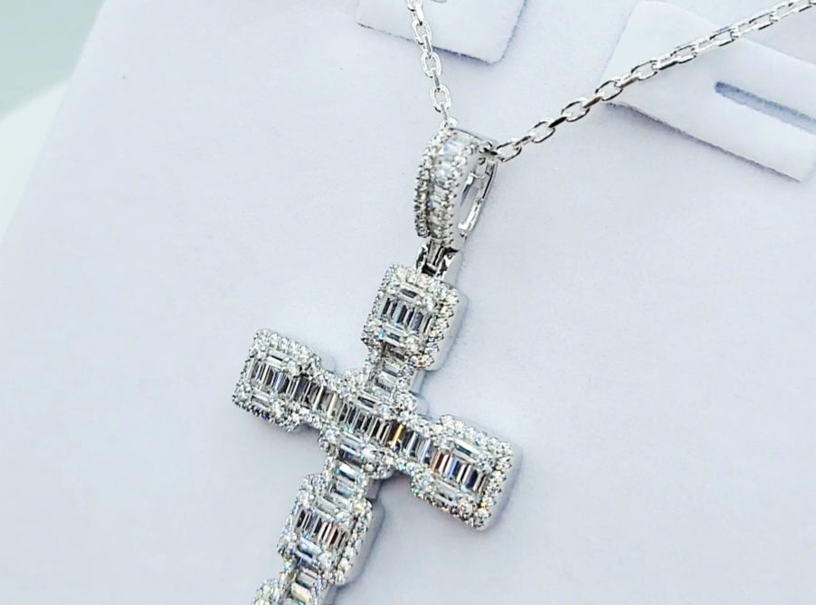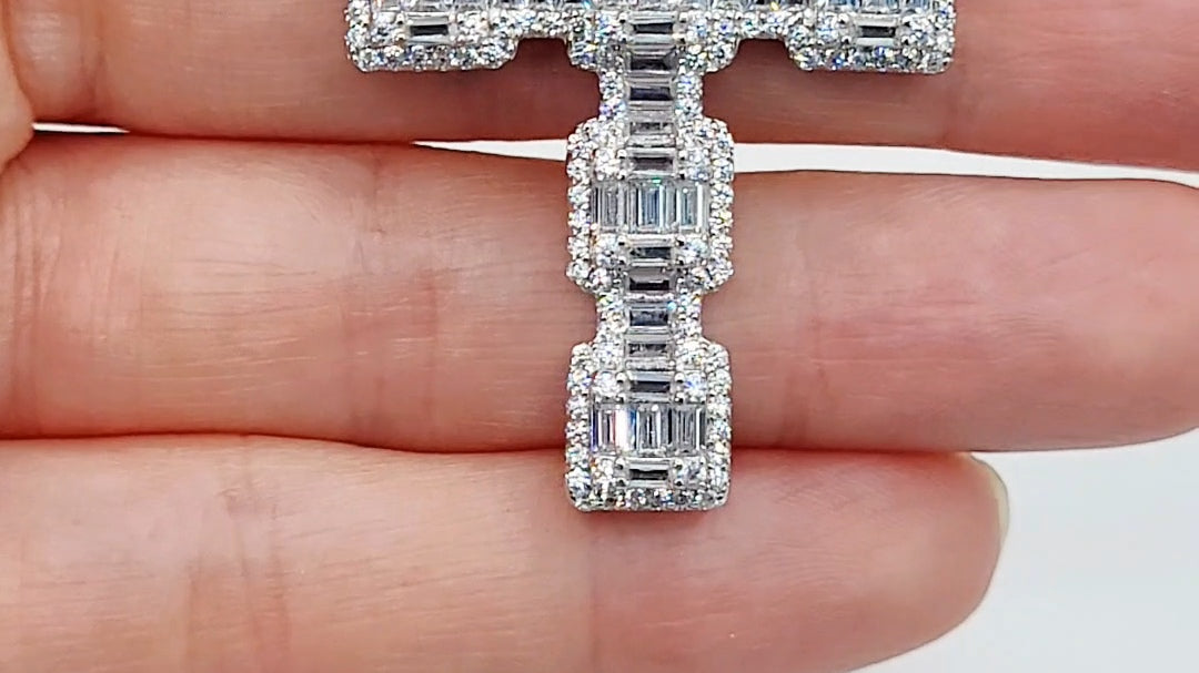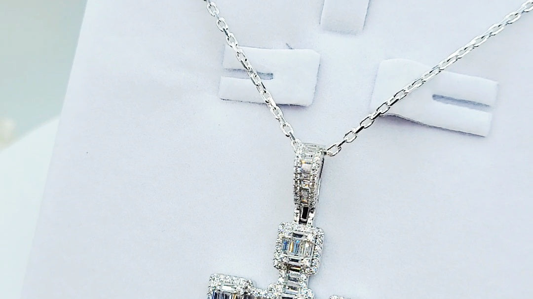 "Aoife" Sterling Silver Baguette & Round CZ Cross & Chain