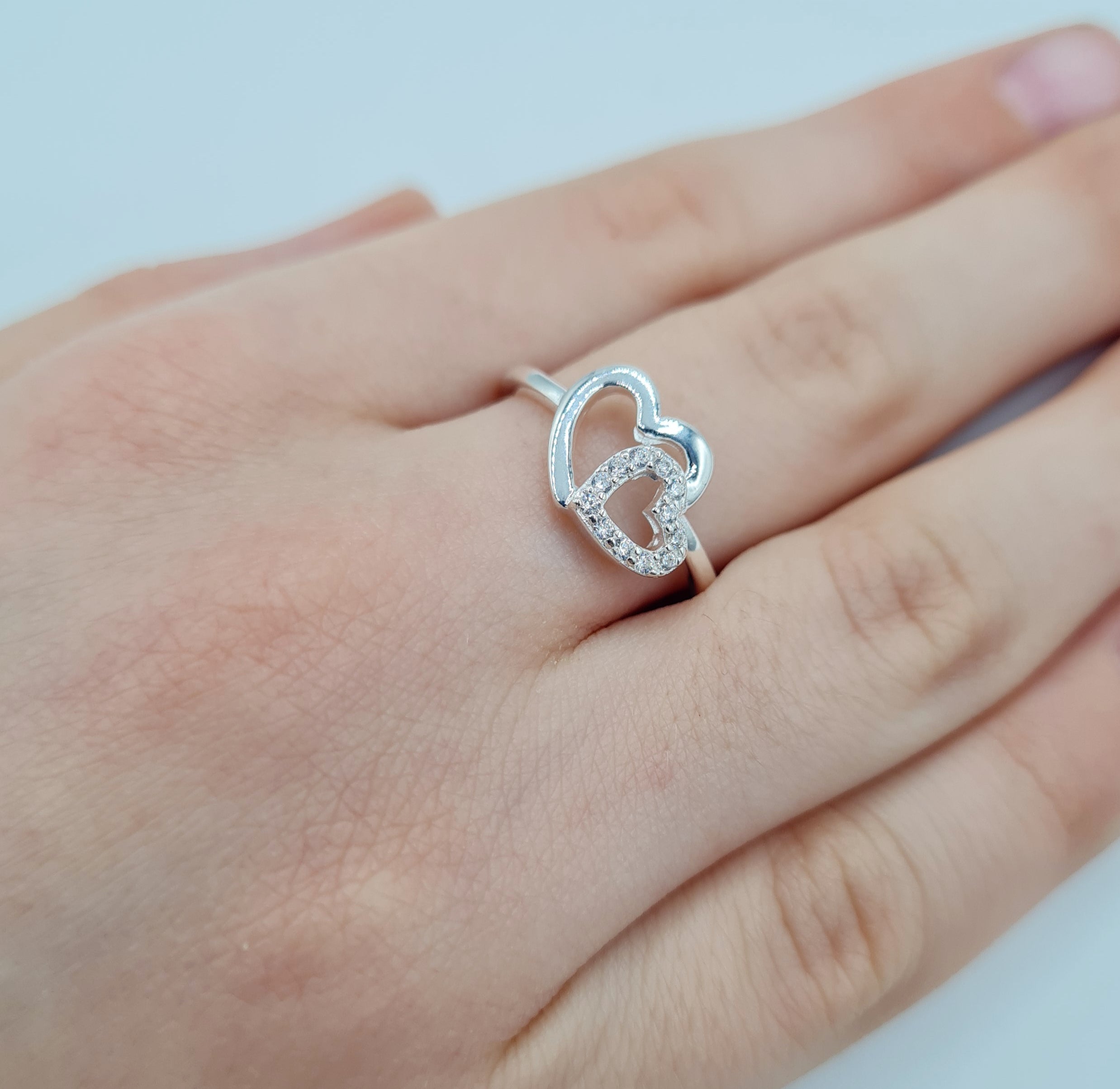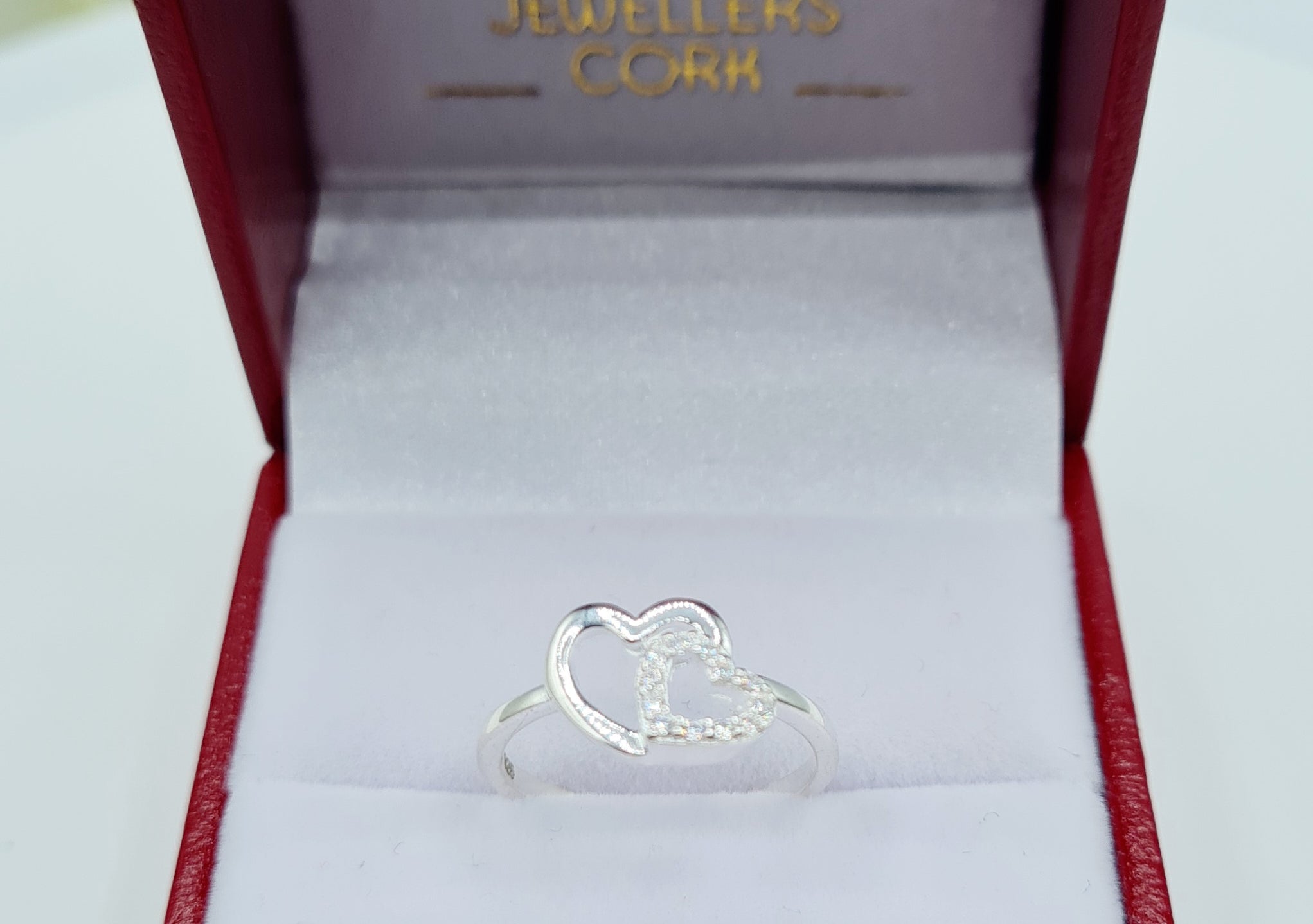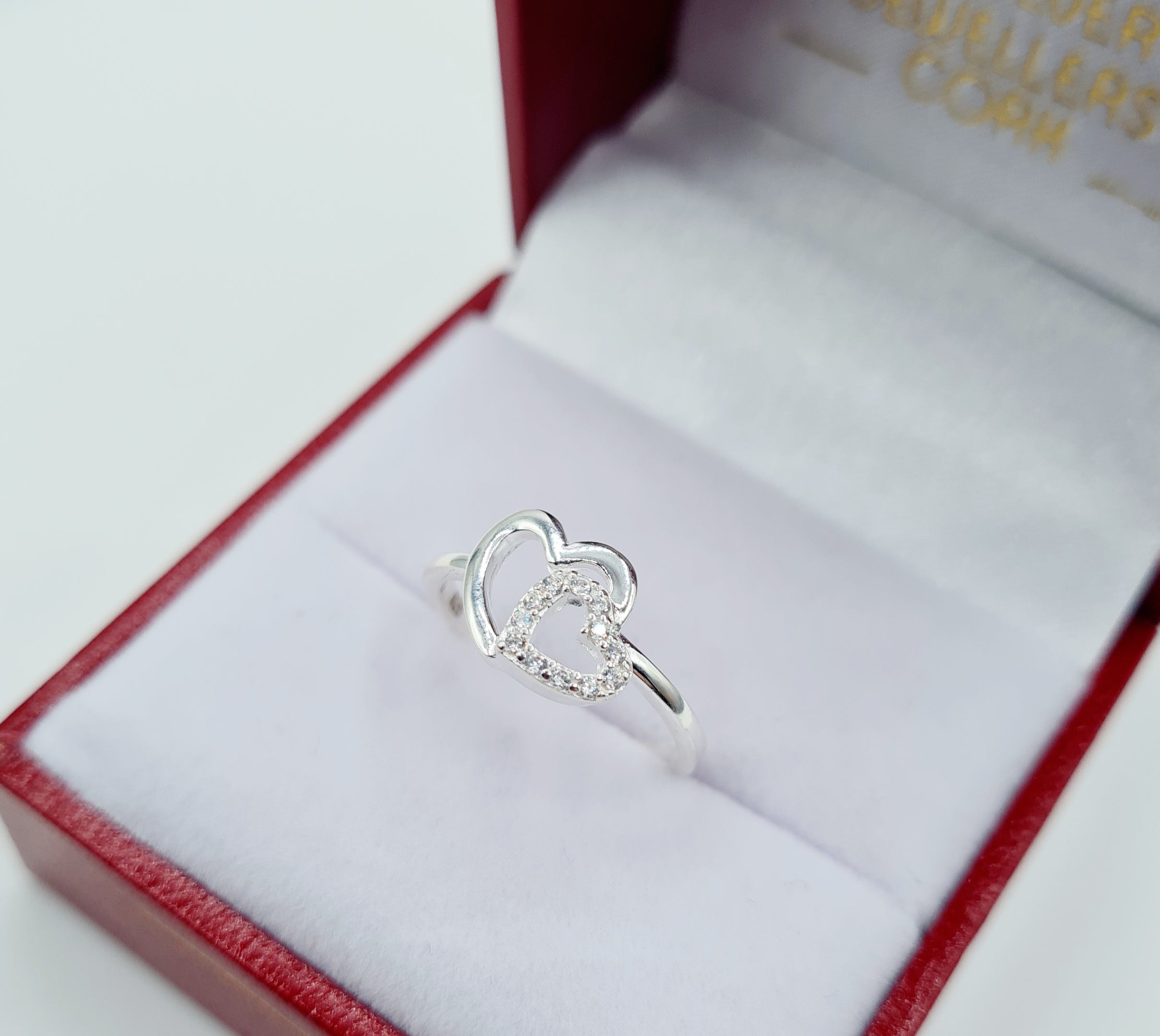 Childrens Sterling Silver Cubic Zirconia Double Heart Ring.
