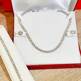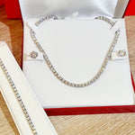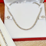 Cleo ~ Sterling Silver Cubic Zirconia 4mm Tennis Set ~ Necklace, Bracelet & Large CZ Earrings Set