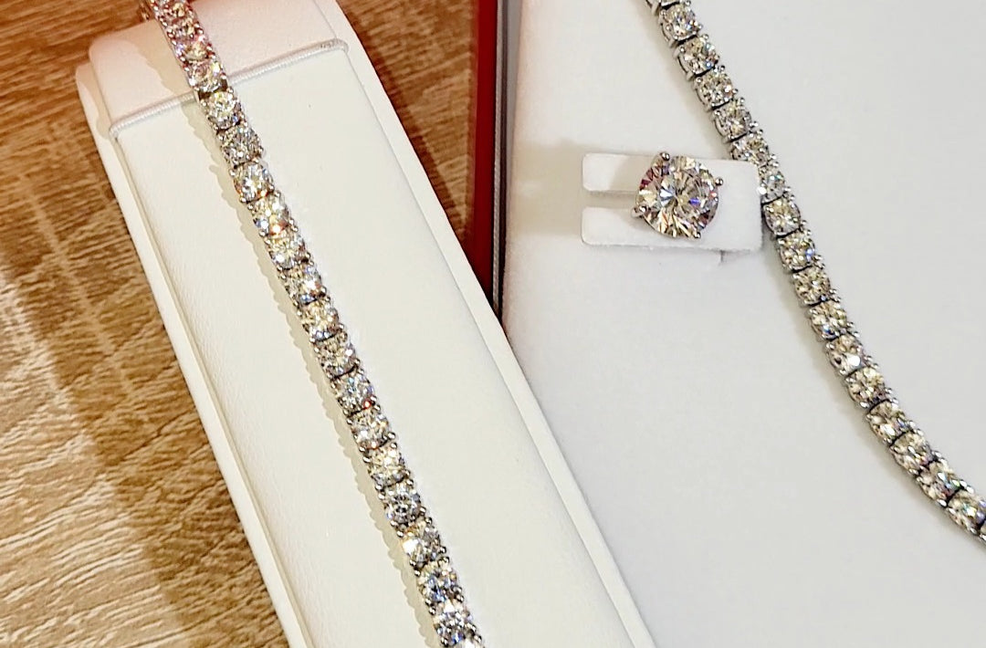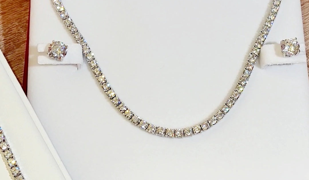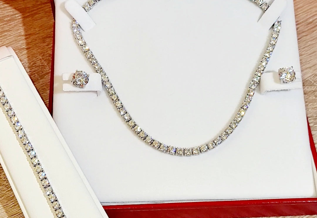Cleo ~ Sterling Silver Cubic Zirconia Tennis Set ~ Necklace, Bracelet & Earrings Set