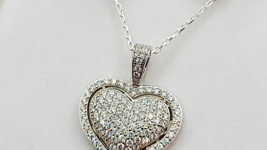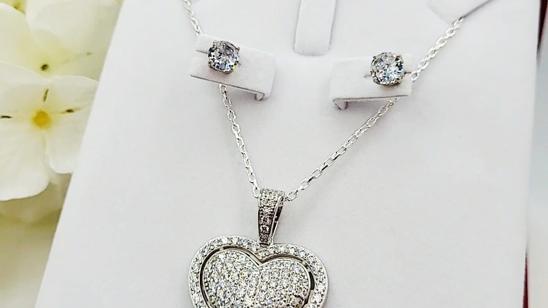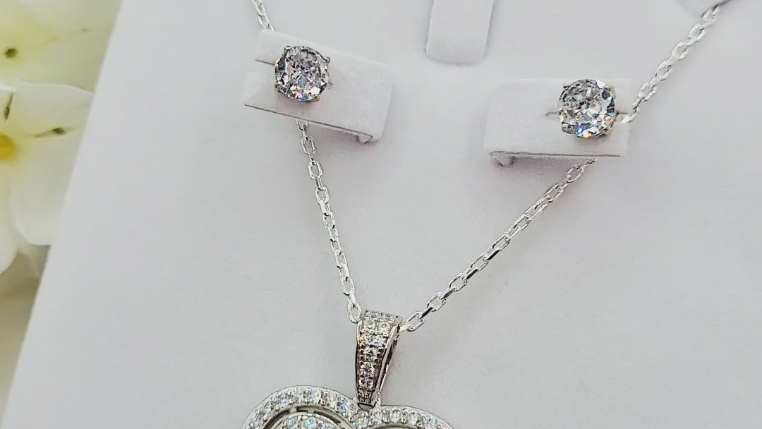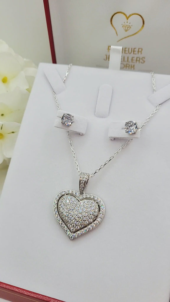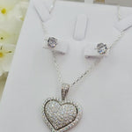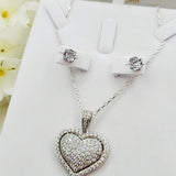 Croia ♥️ ~ Sterling Silver Large CZ Heart Pendant & CZ Earrings Set