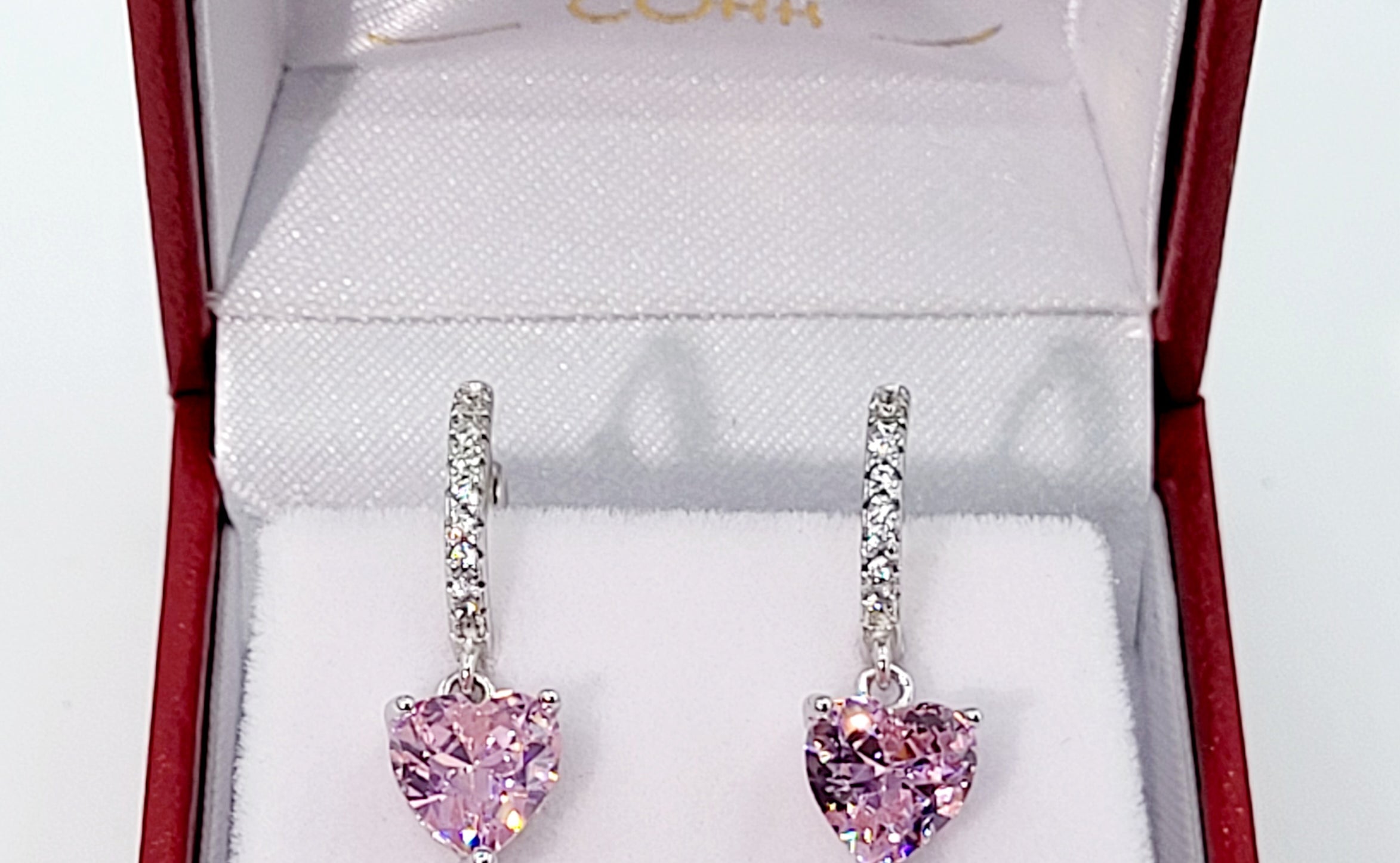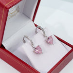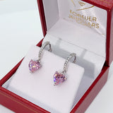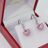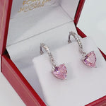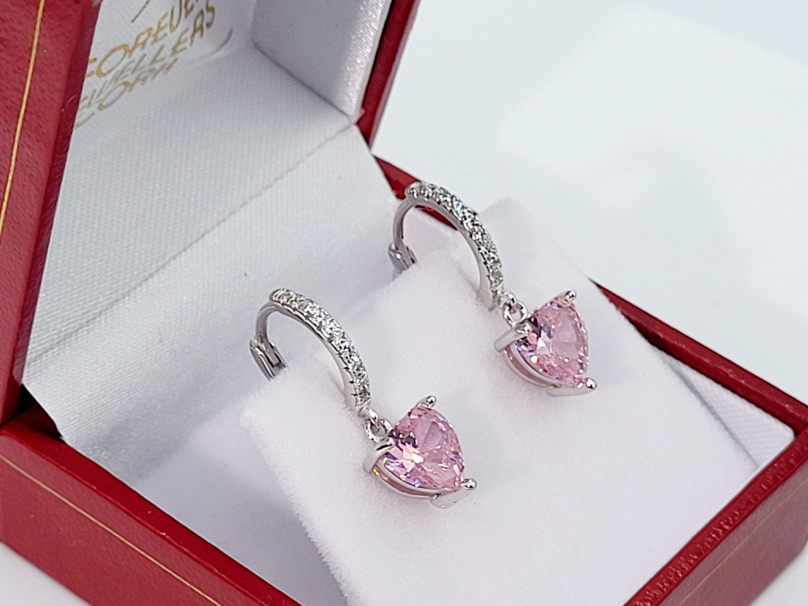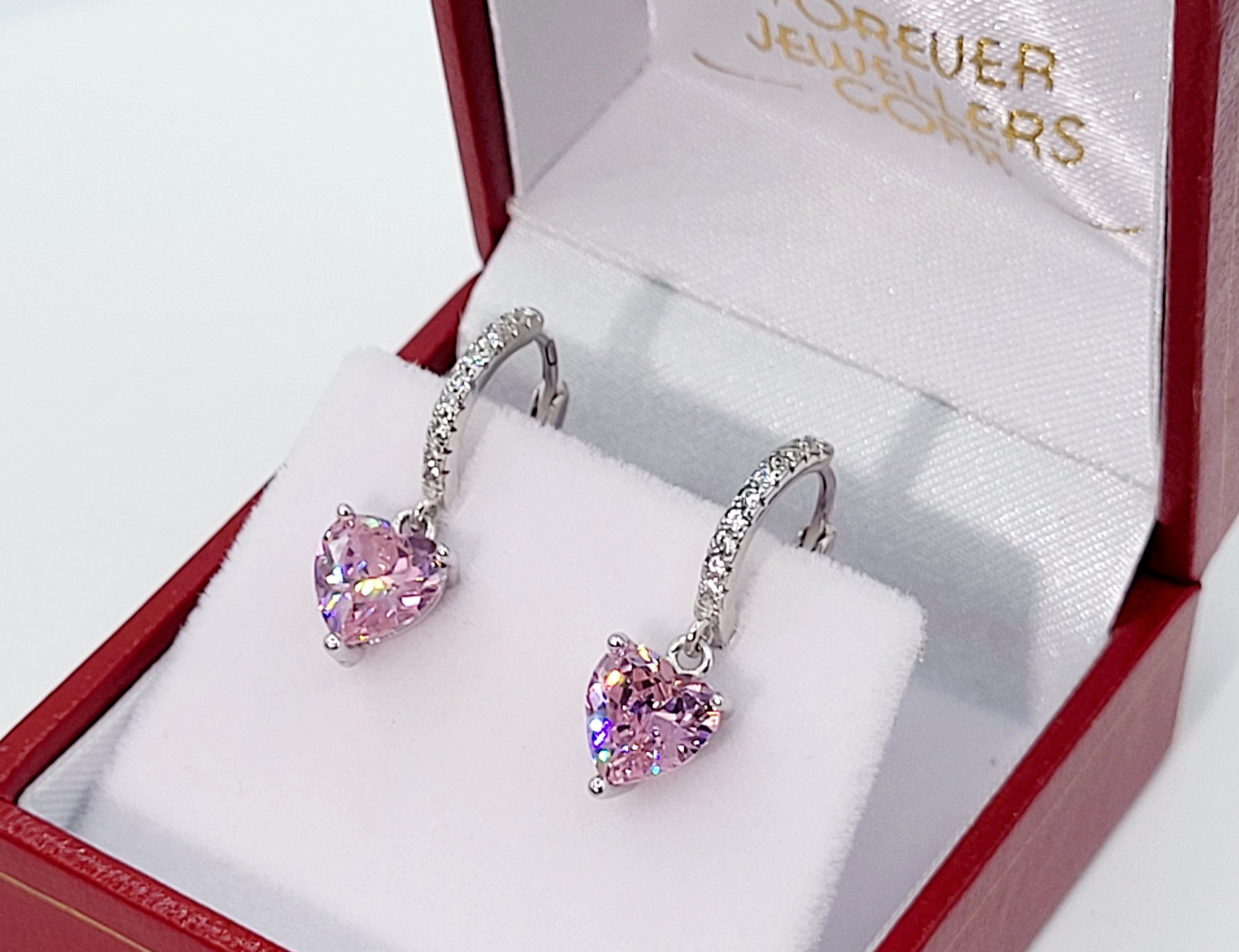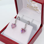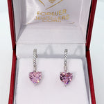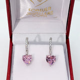 Forever Kim ~ Sterling Silver Pink Cubic Zirconia Heart Drop Huggie Earrings