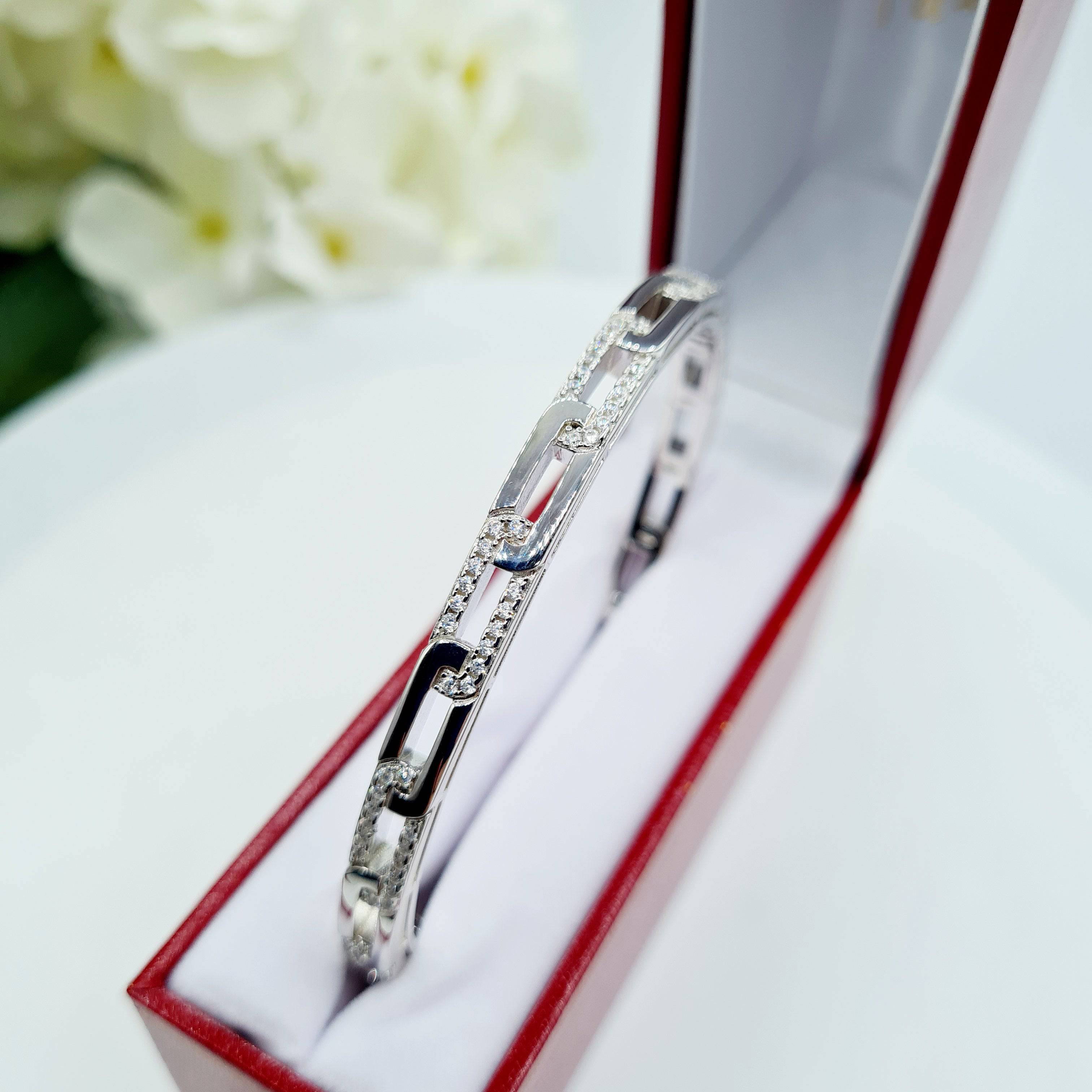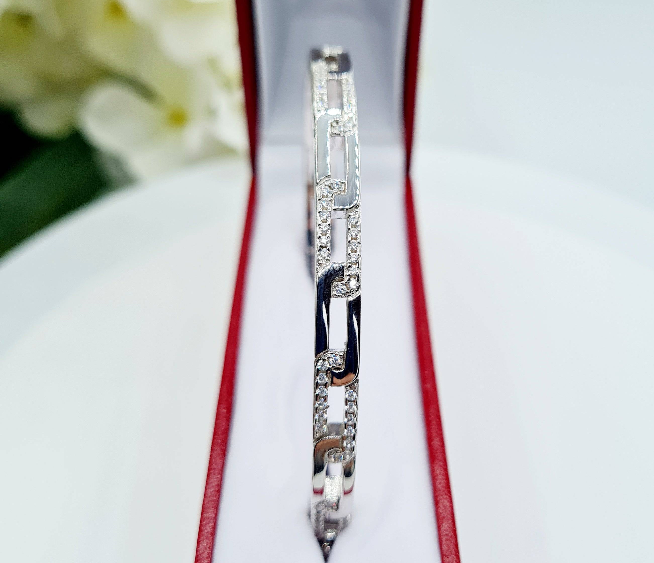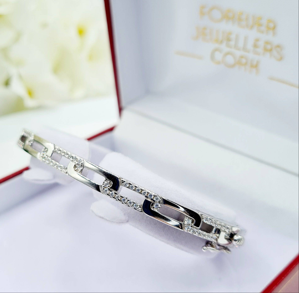 Forever Mia - Sterling Silver Ladies Heavy Cubic Zirconia Paperlink Bracelet