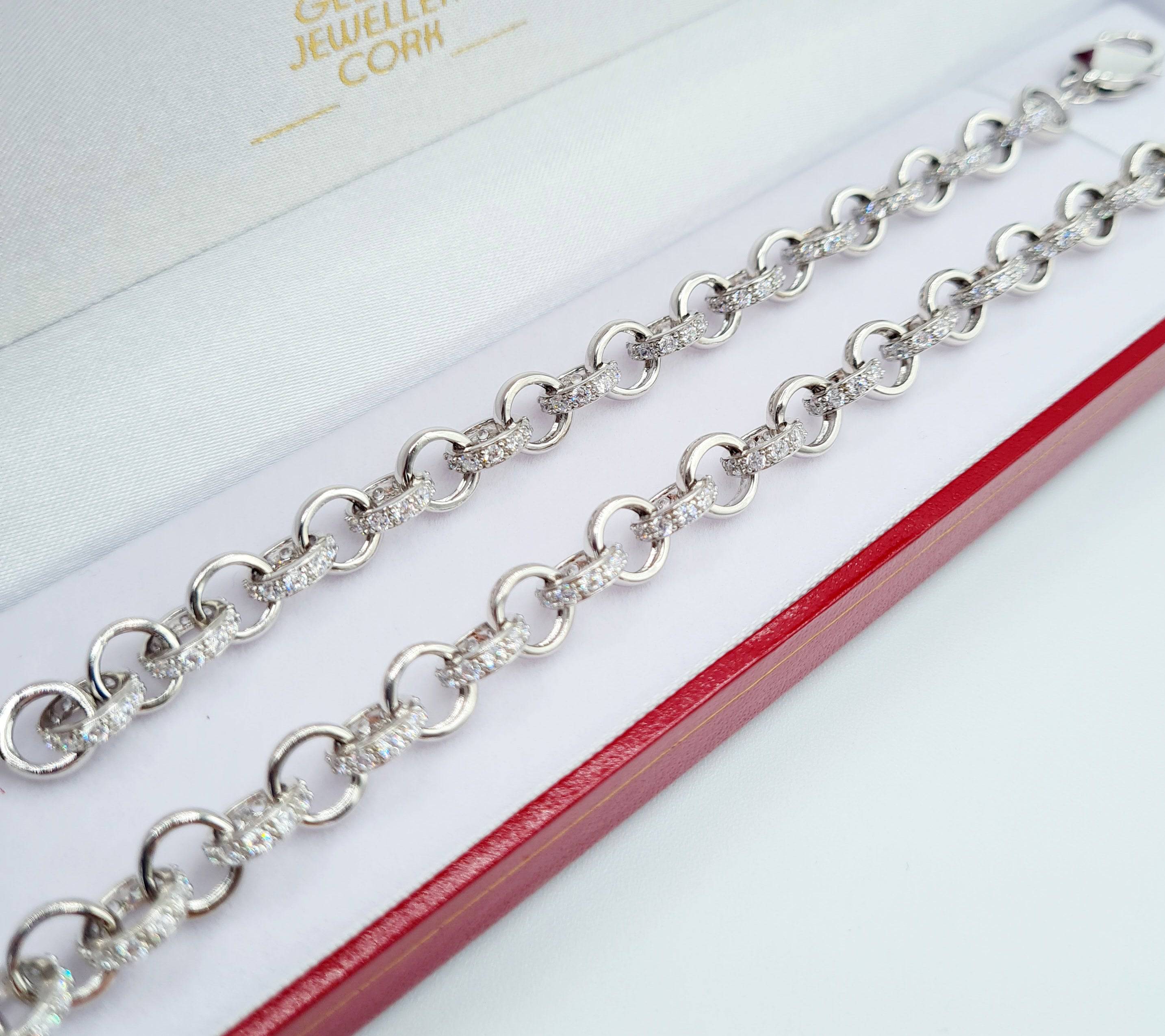 Mama & Daughter Sterling Silver Cubic Zirconia Belcher Bracelet Set