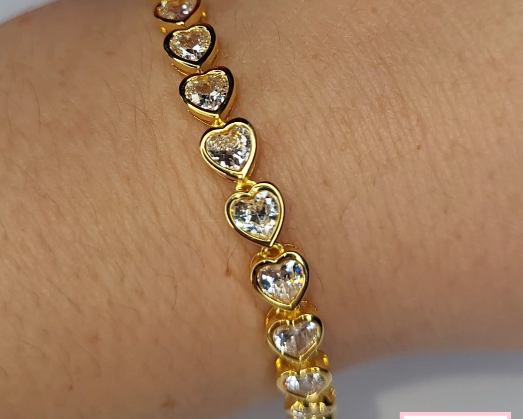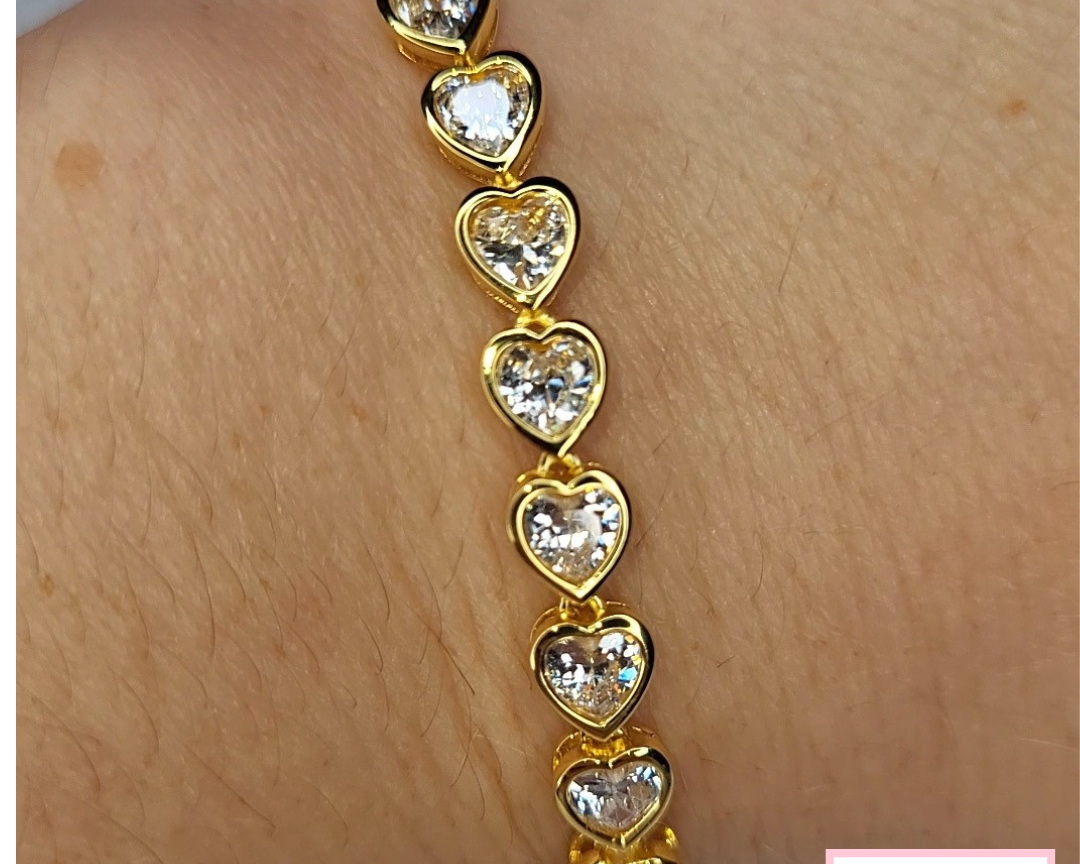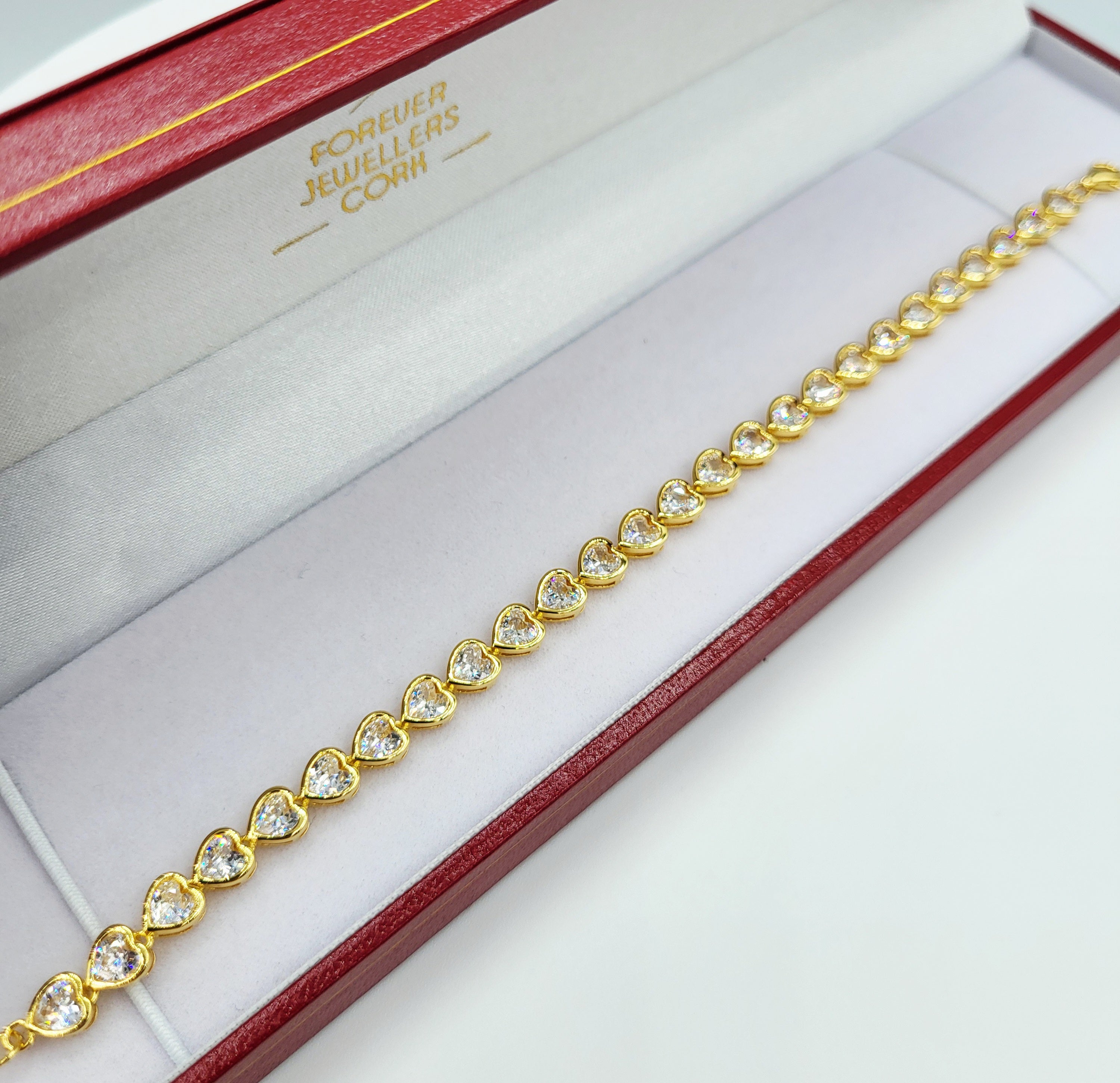 Sarah ~ Gold Plated on Sterling Silver Heart Tennis Bracelet