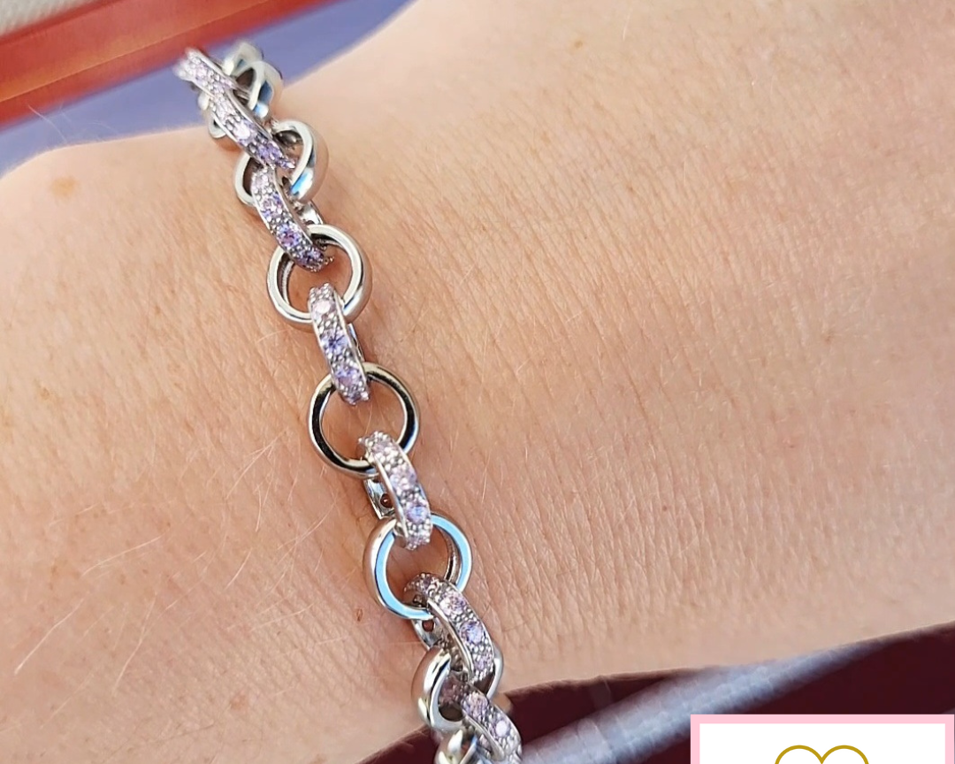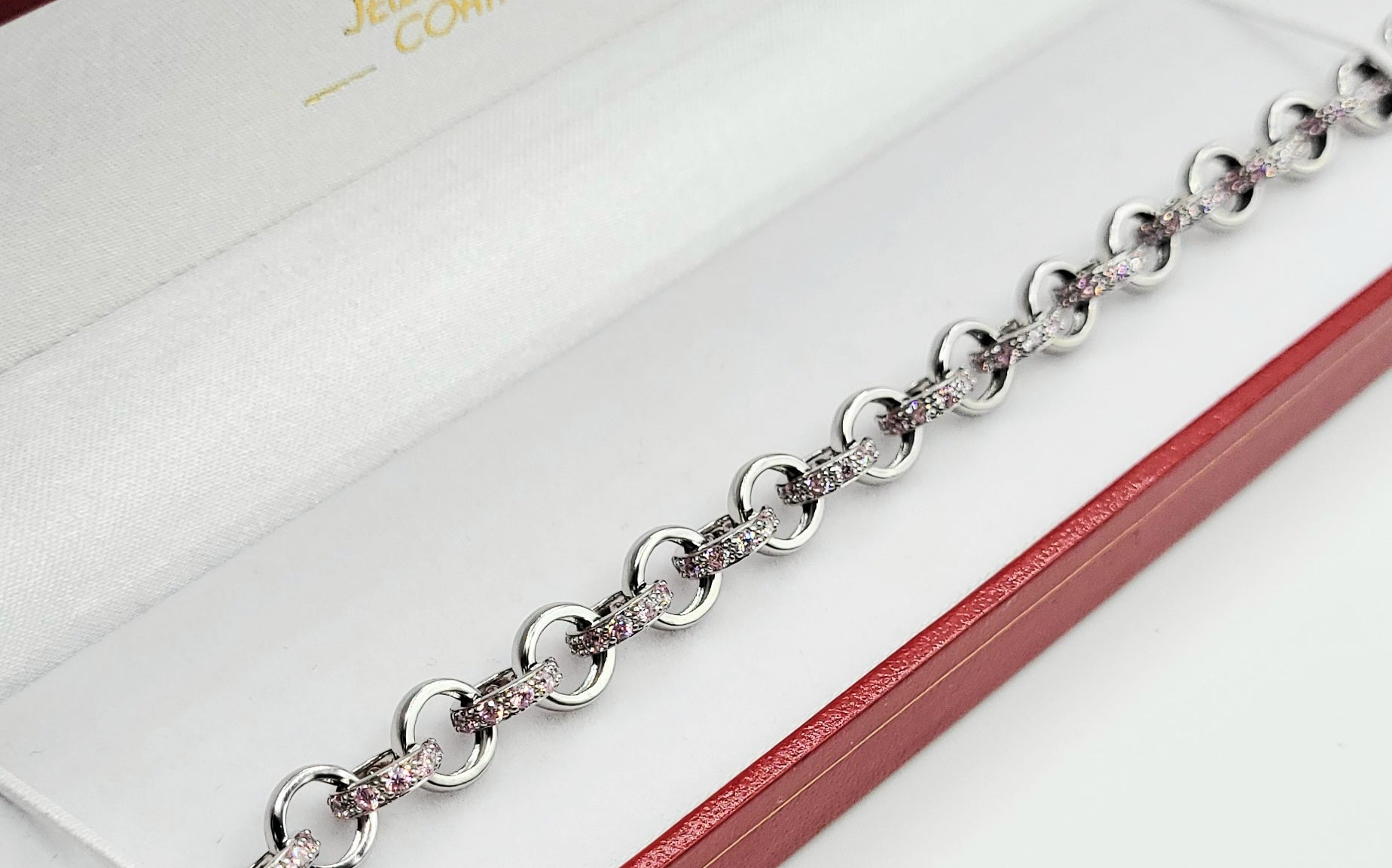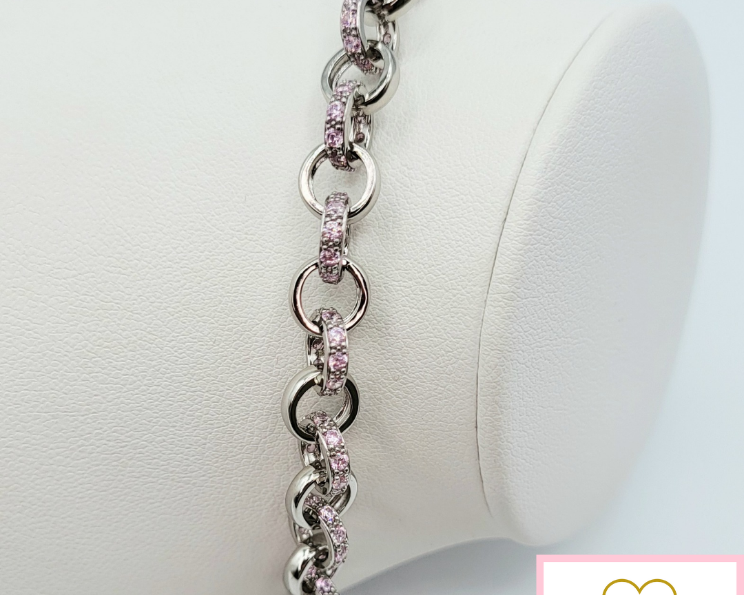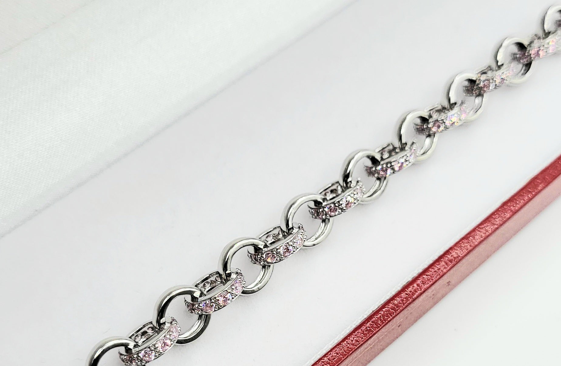 Sterling Silver Blush Pink Cubic Zirconia Belcher Bracelet 🩷