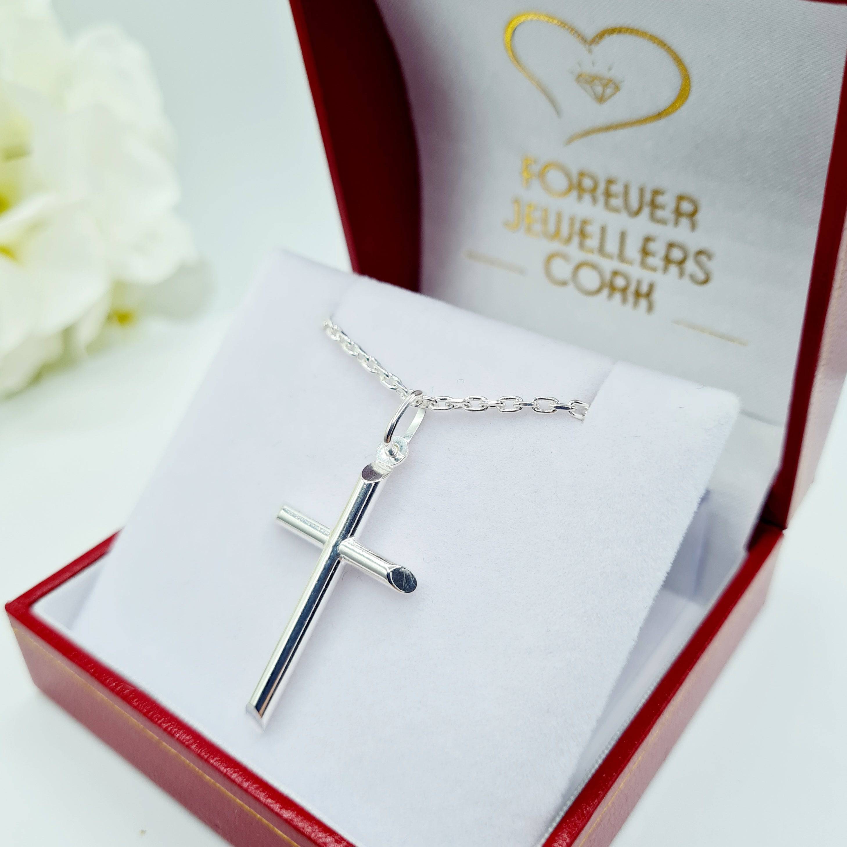 Sterling Silver Cross on 20 inch Diamond Cut Belcher Chain
