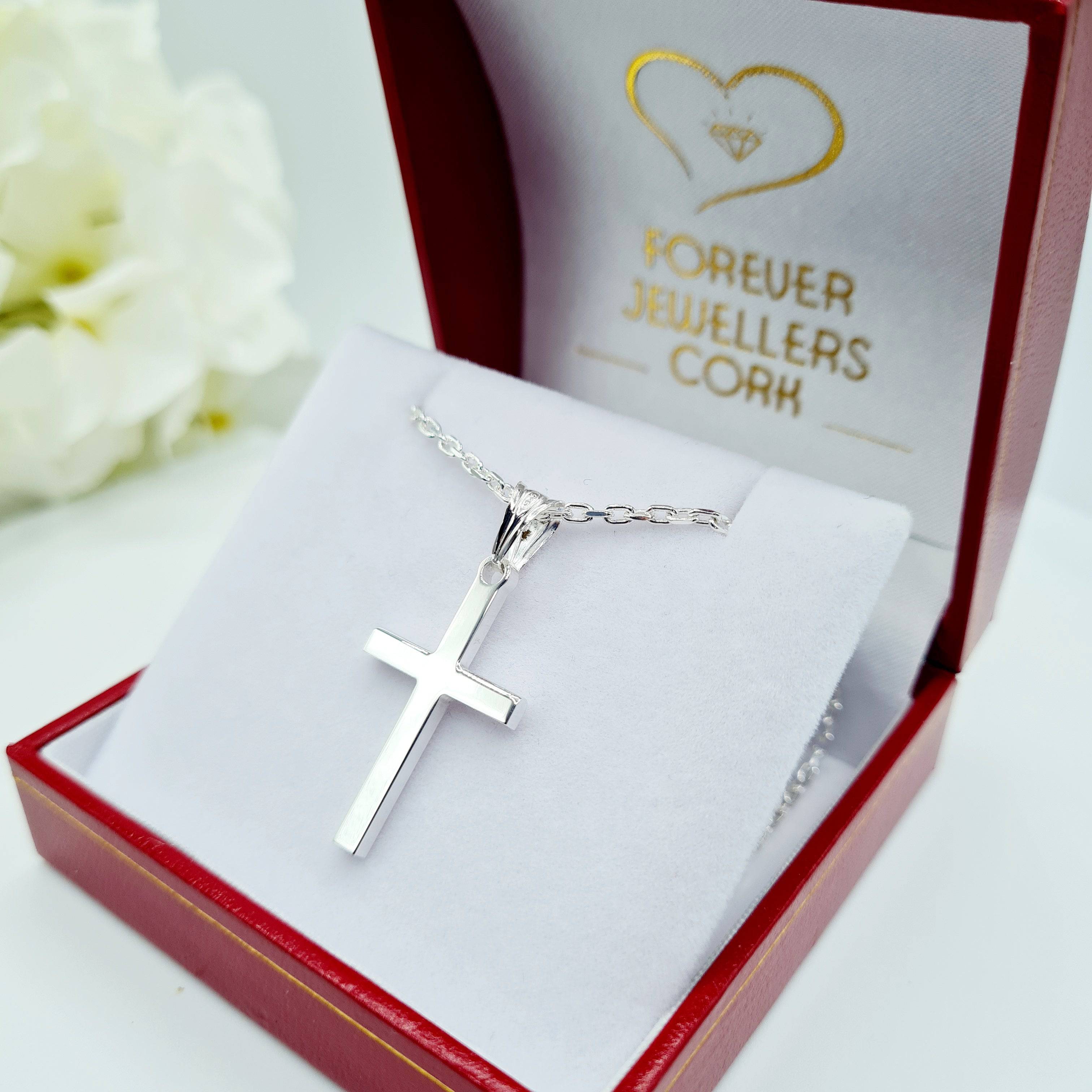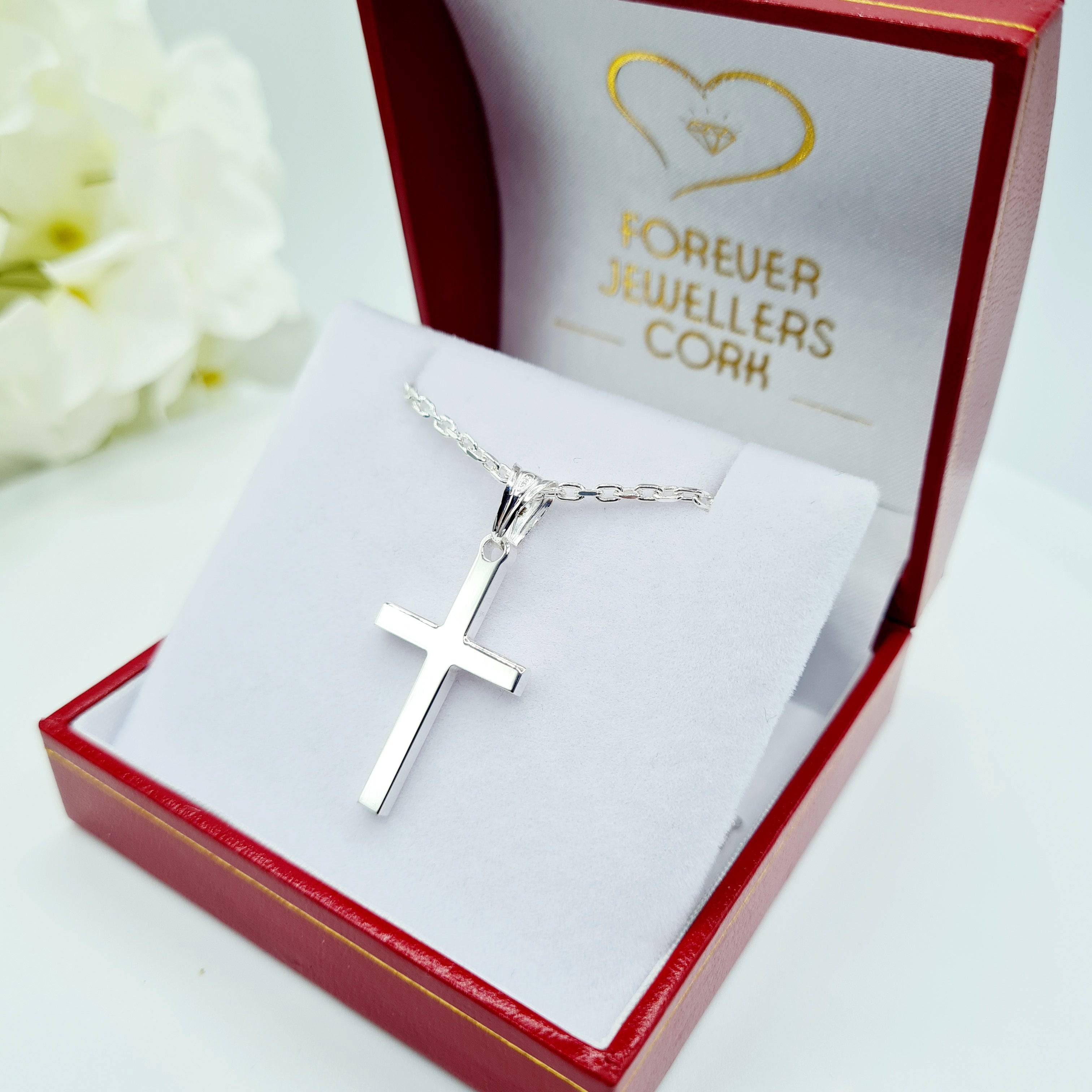 Sterling Silver Cross on 20" Diamond Cut Belcher Chain