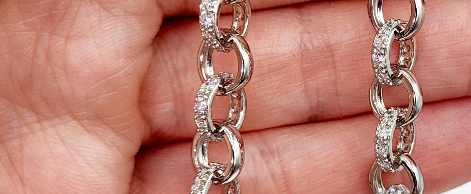 Sterling Silver Cubic Zirconia Belcher Chain ~ 20"