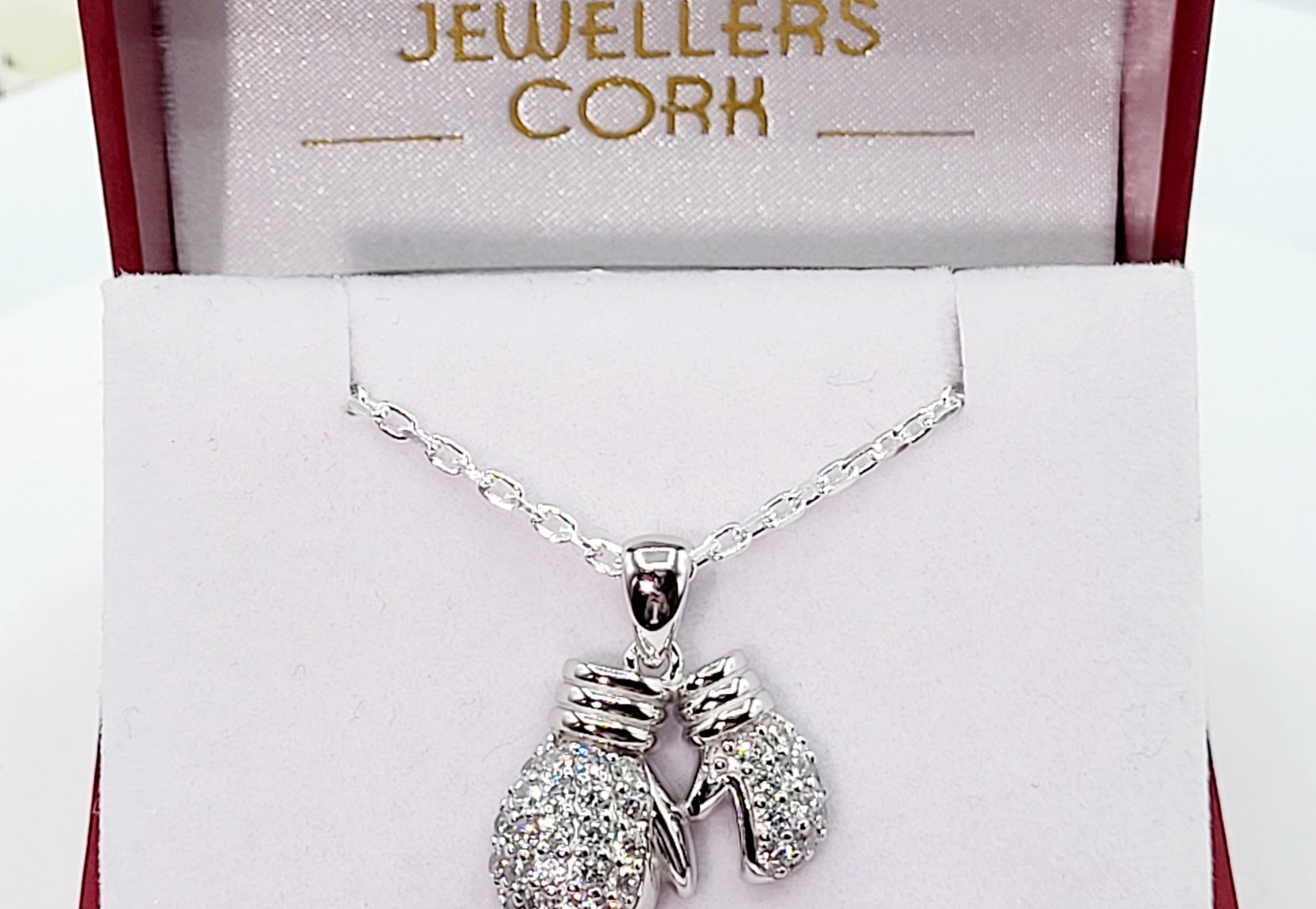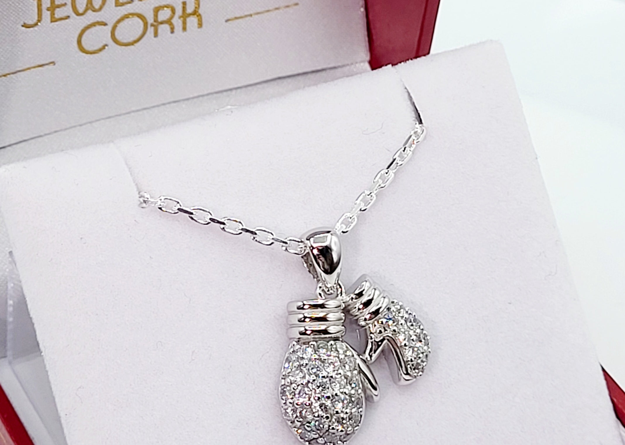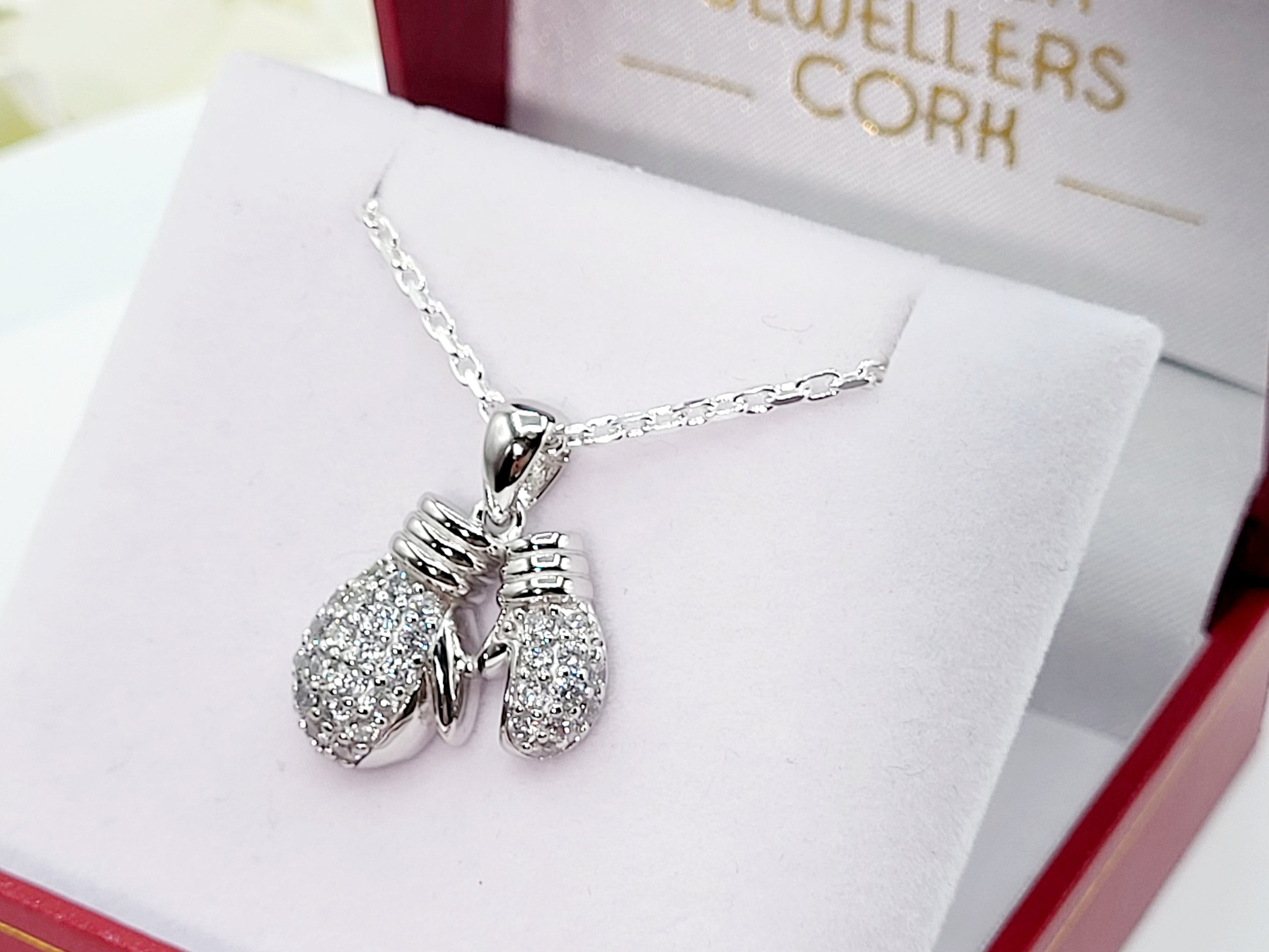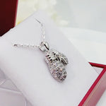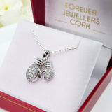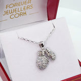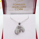 Sterling Silver Cubic Zirconia Double Boxing Glove Pendant & Chain