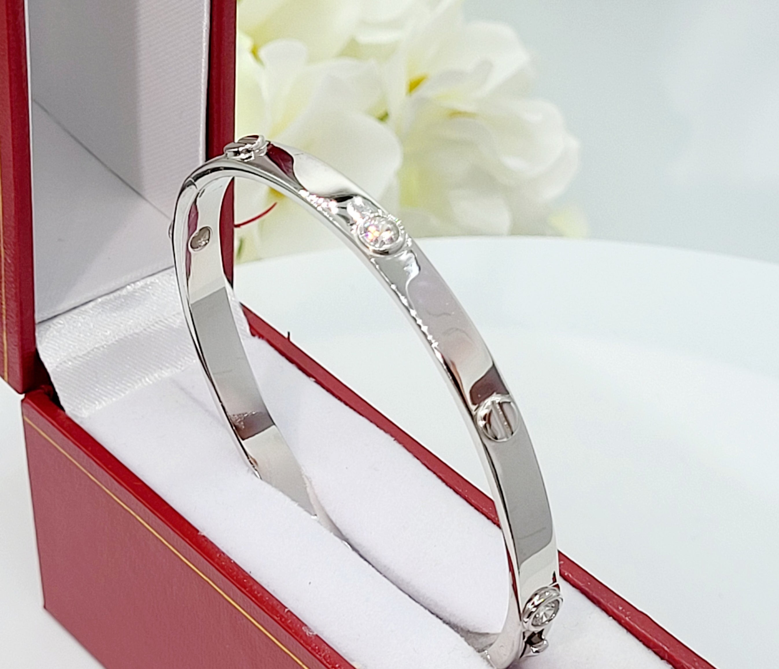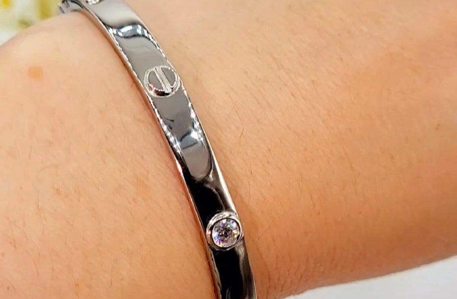 Chloe Bangle ~ Sterling Silver Cubic Zirconia Solid Bangle