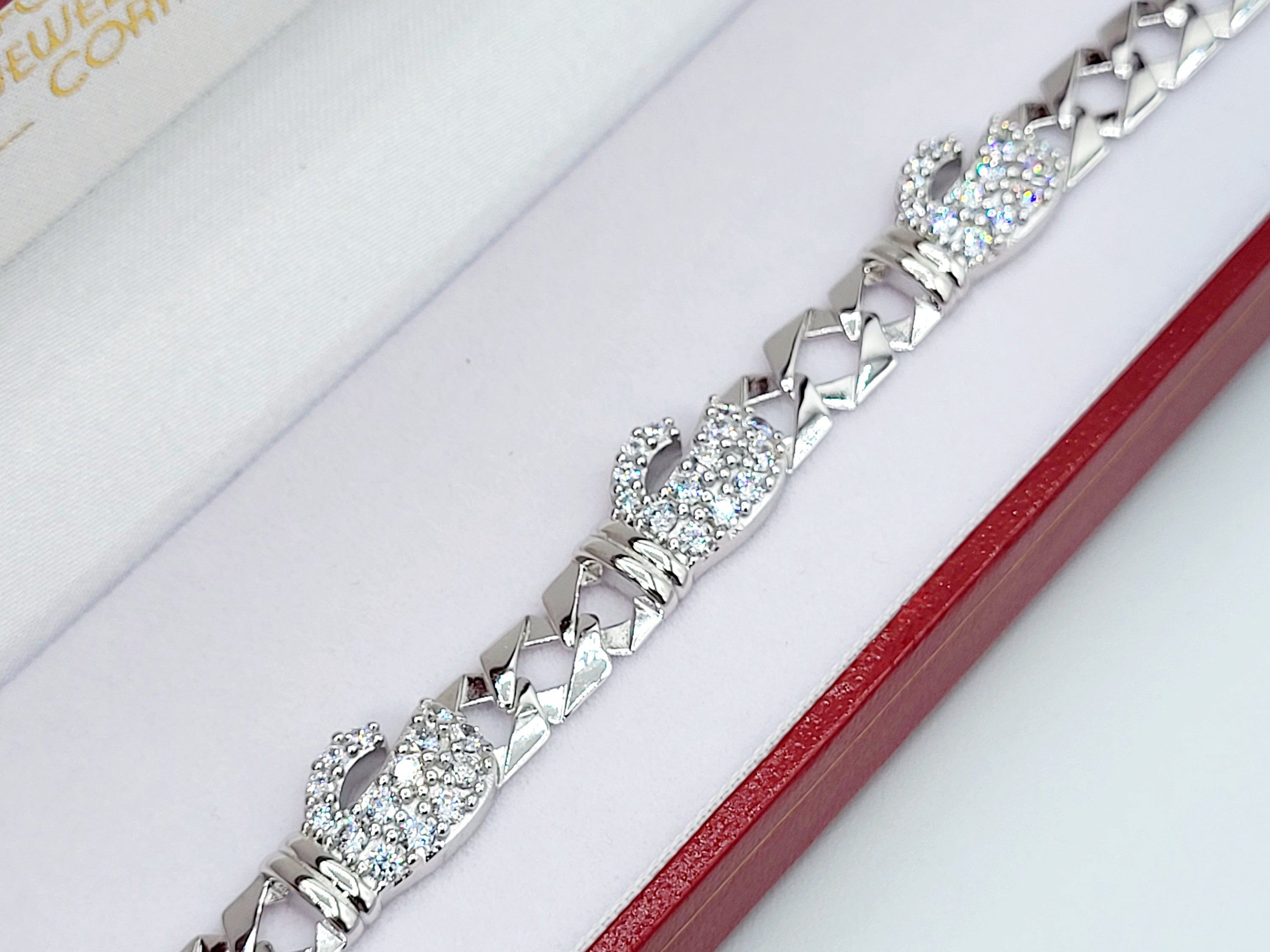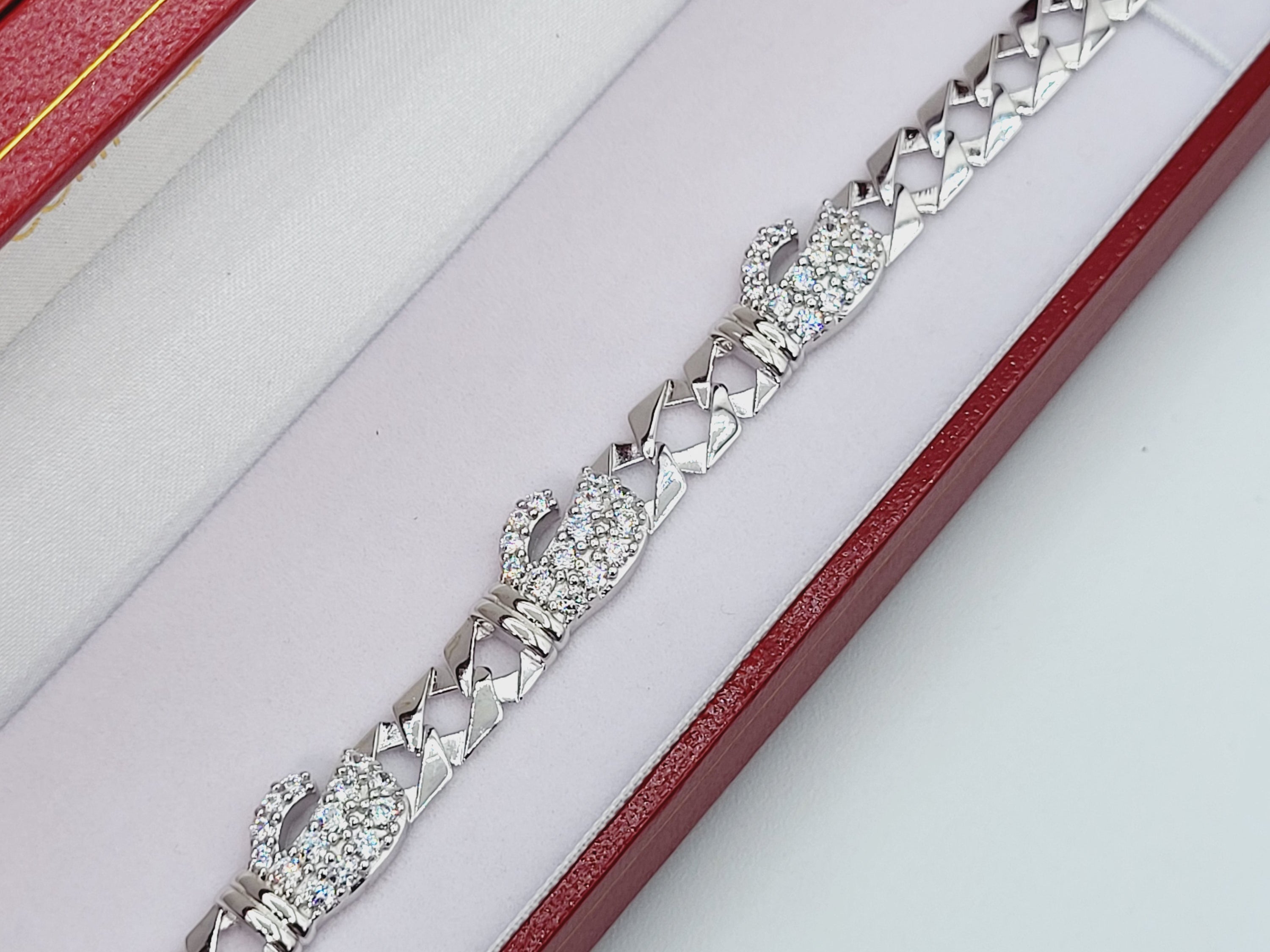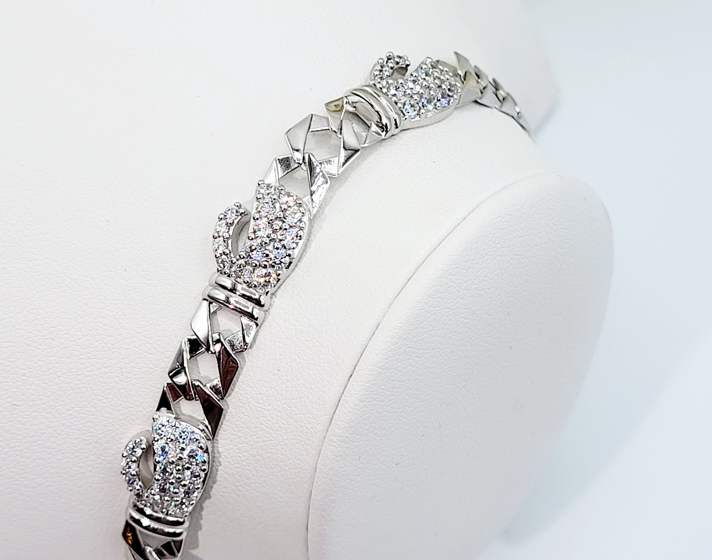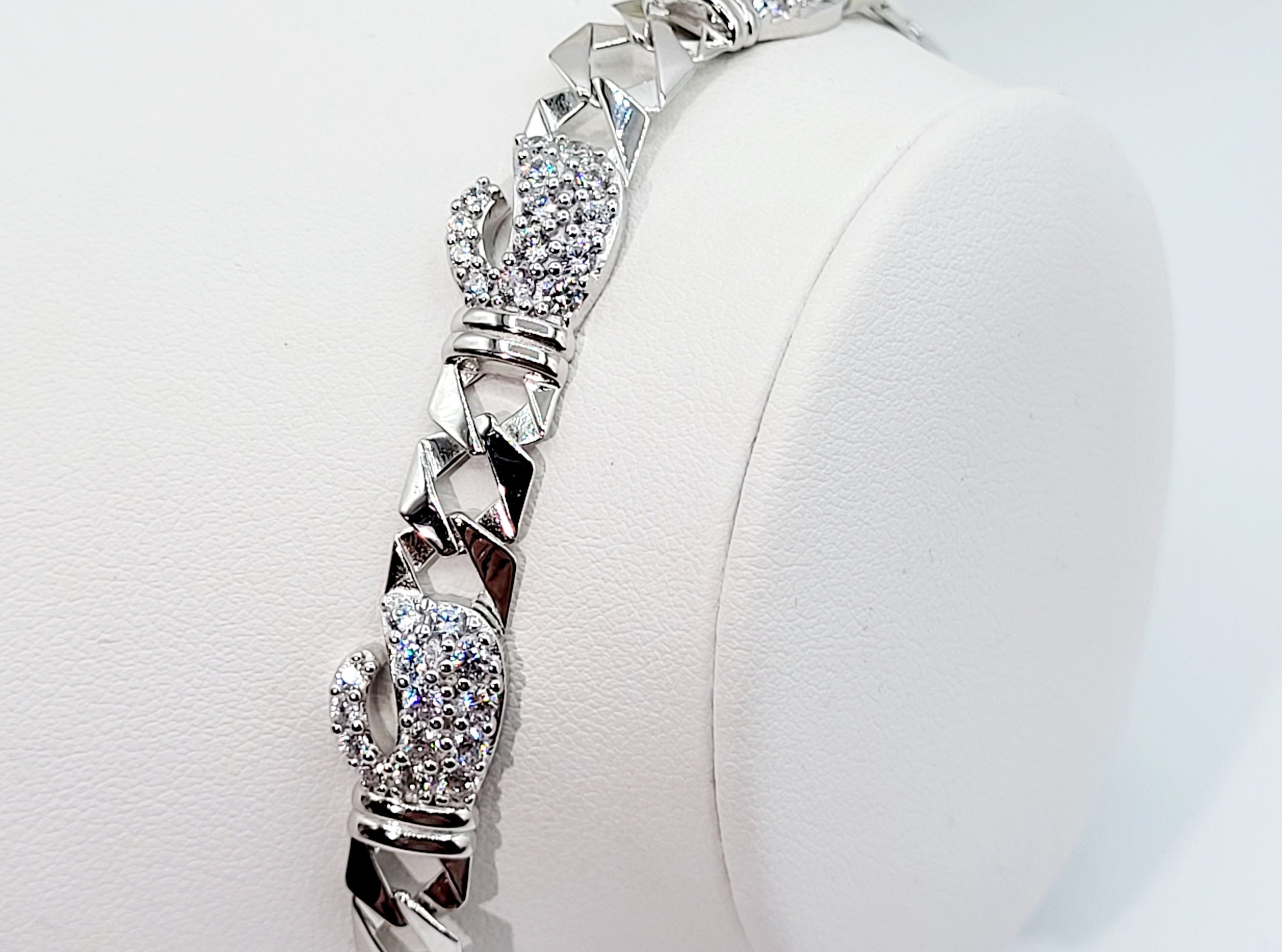 Sterling Silver Cubic Zirconia Triple Boxing Glove Chaps Bracelet
