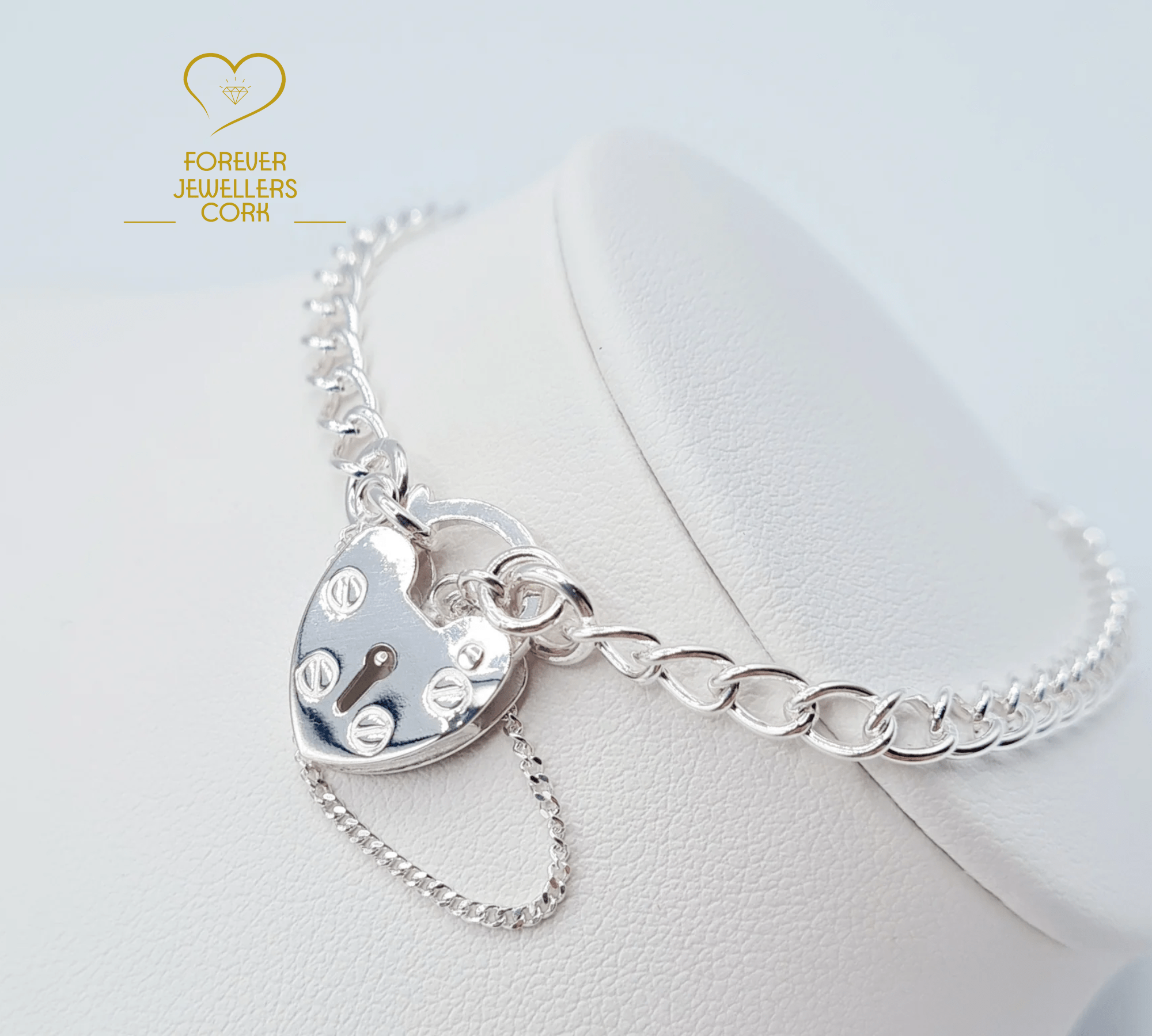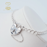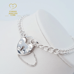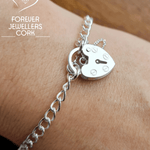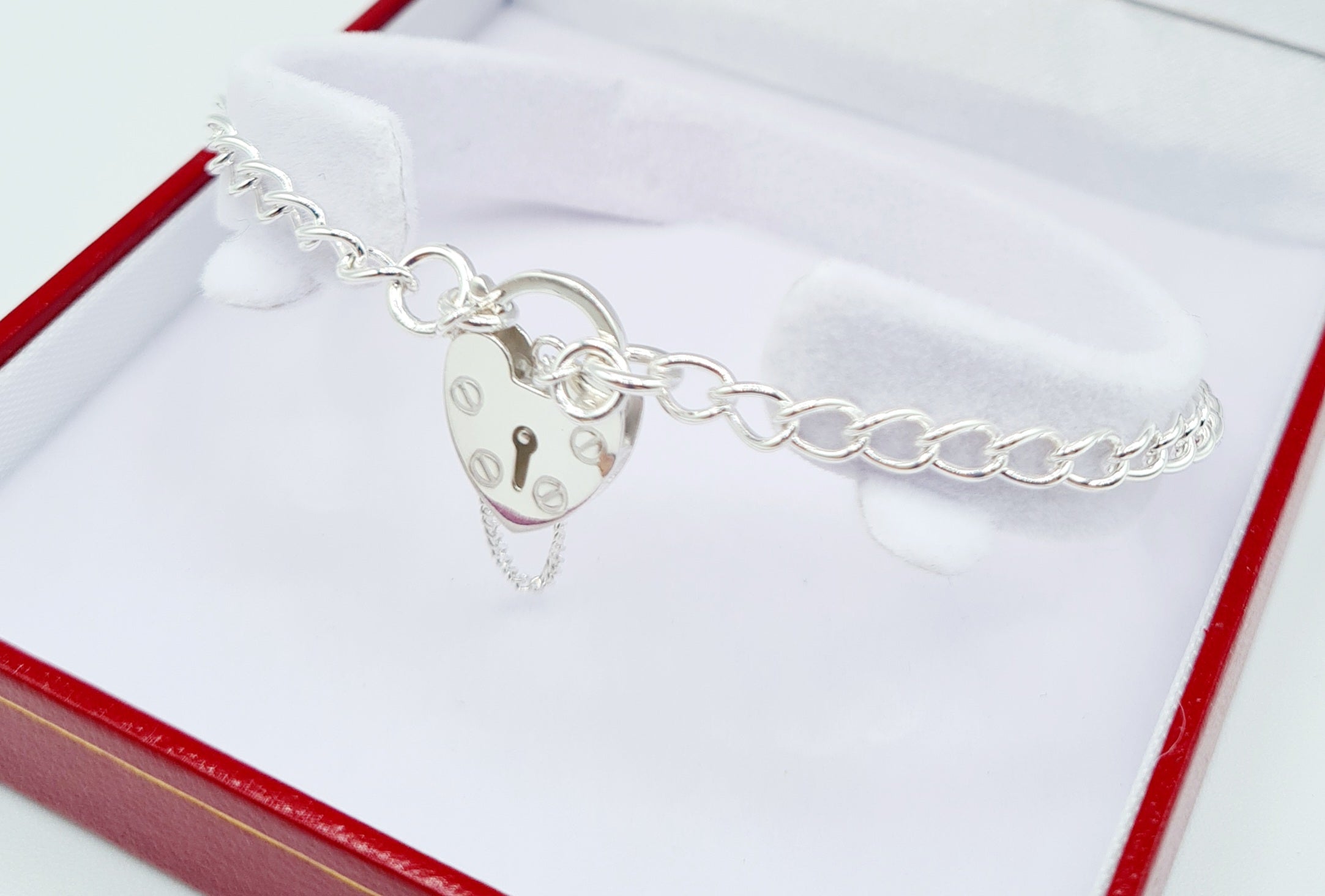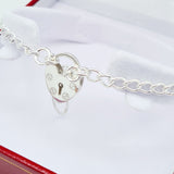 Sterling Silver Curb Charm Bracelet with Heart Shaped Padlock