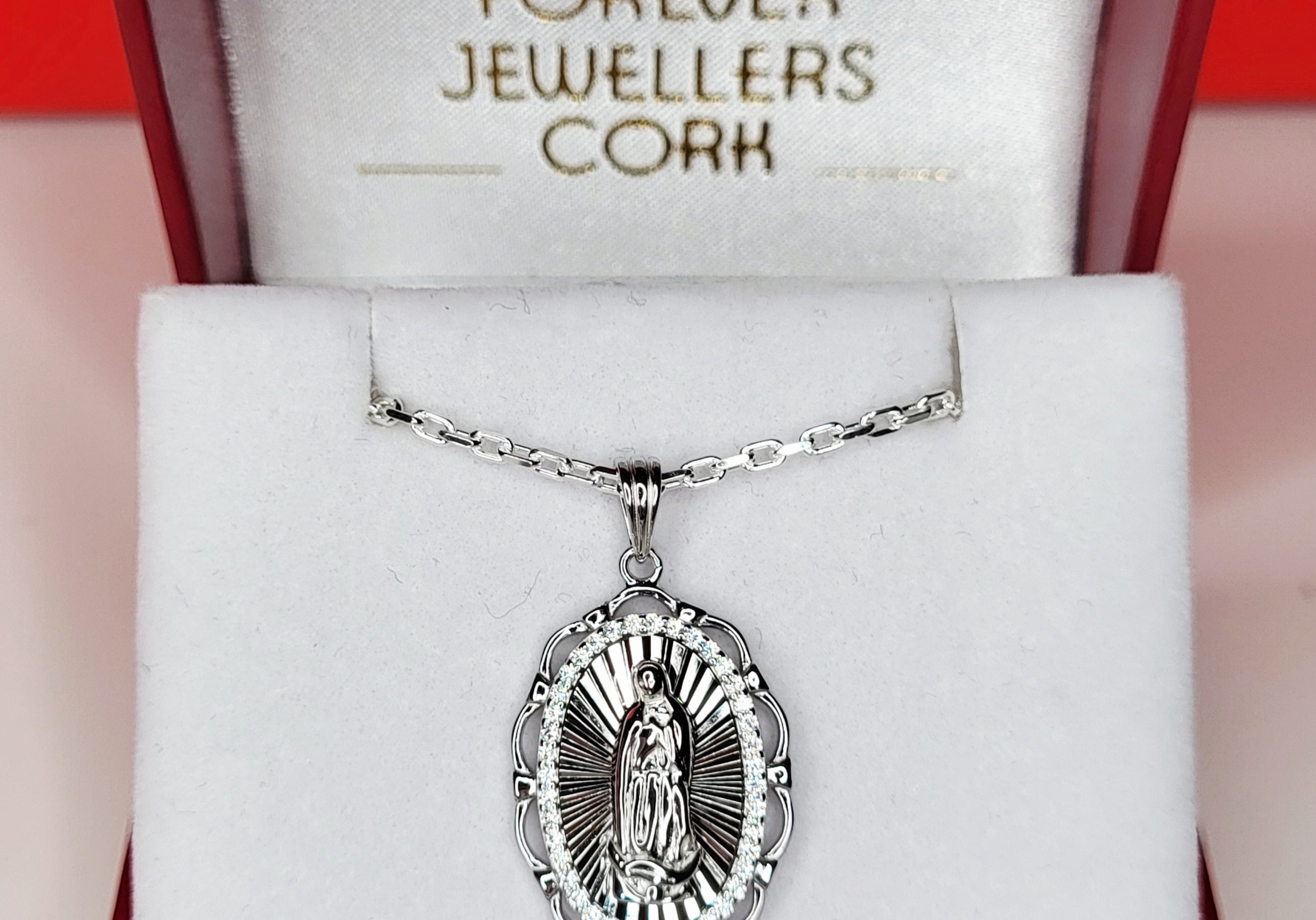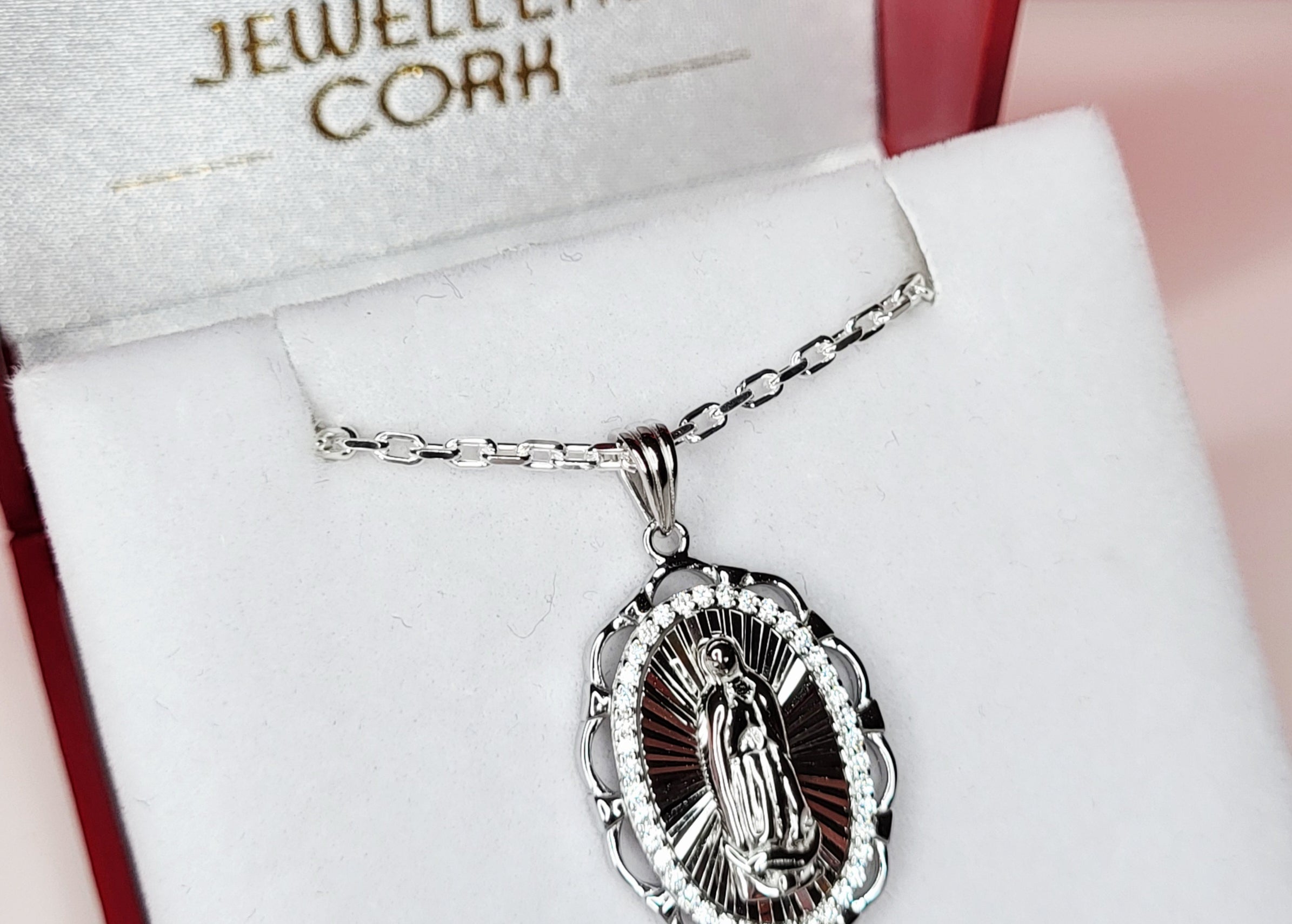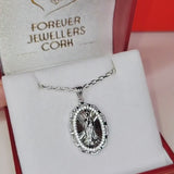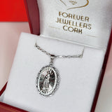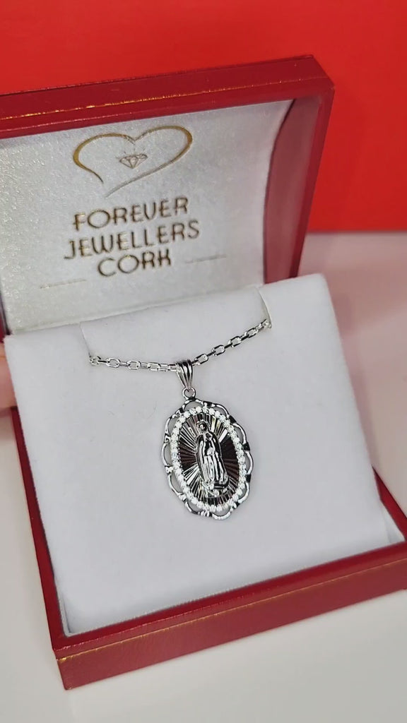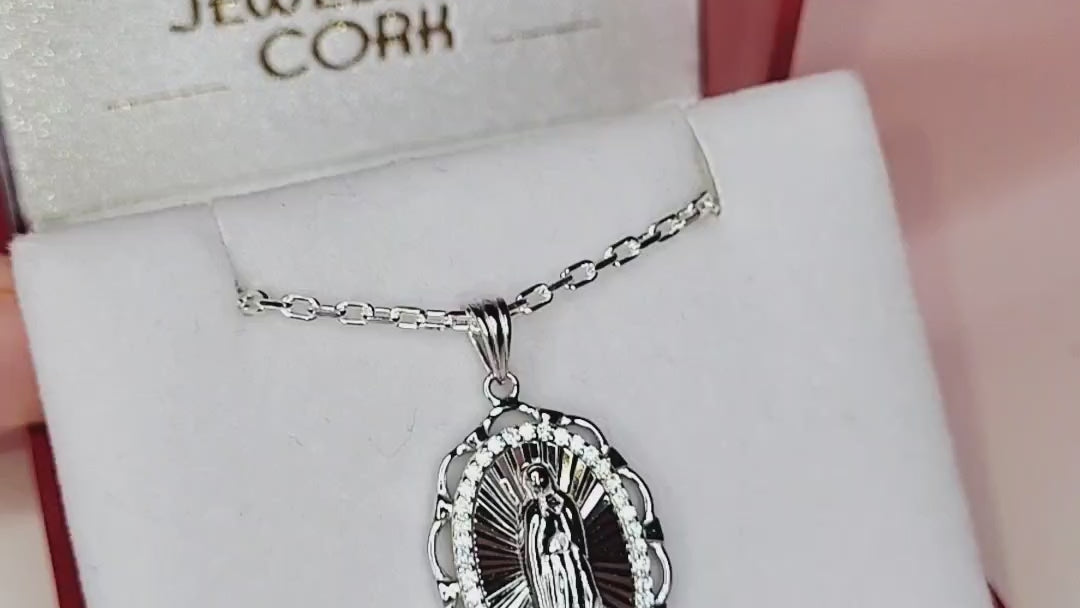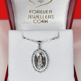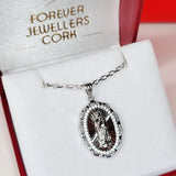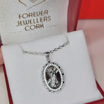 Sterling Silver CZ Halo Our Lady Medal & Chain