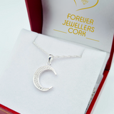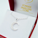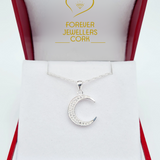 Sterling Silver CZ Moon Pendant & Chain