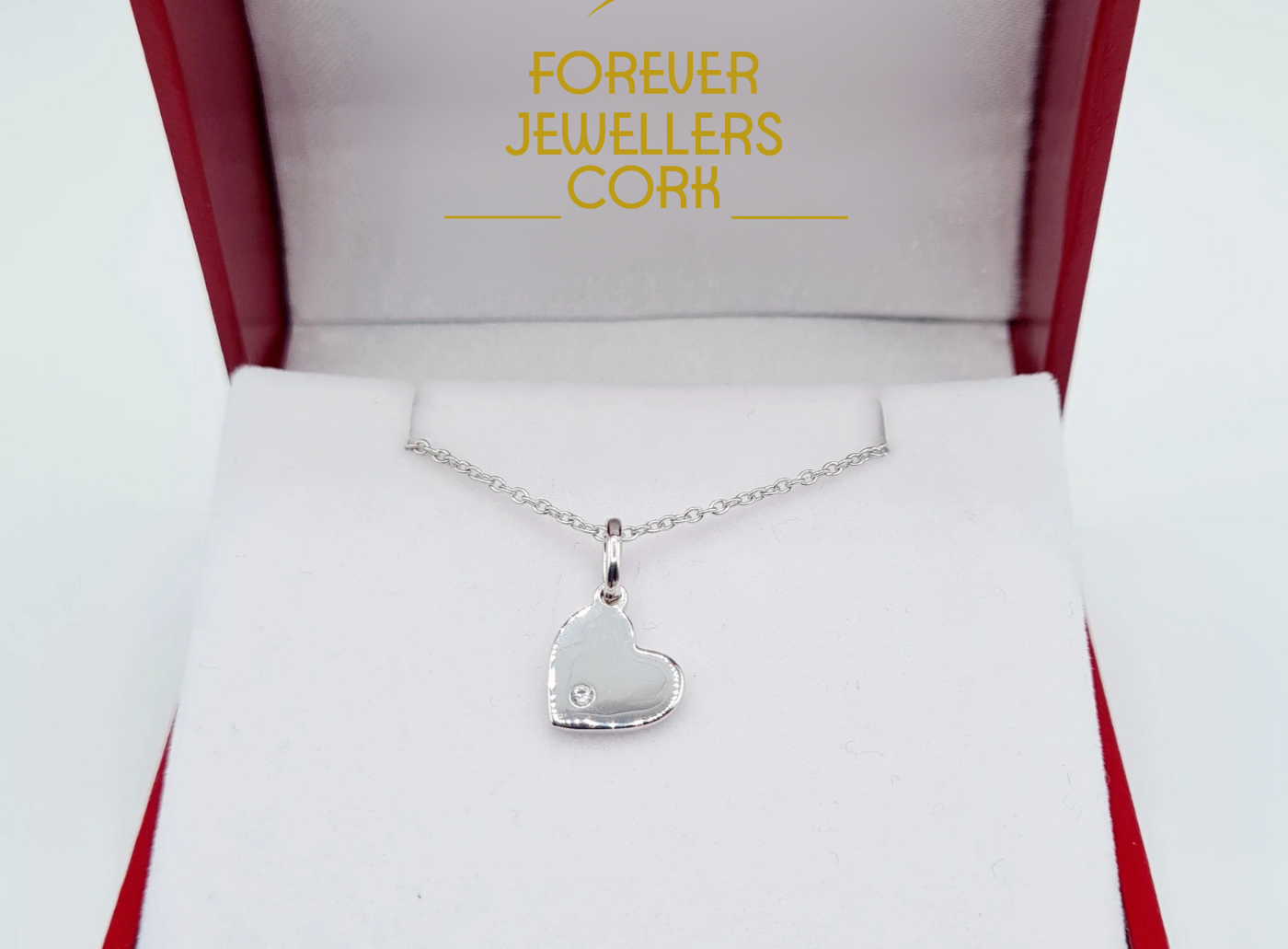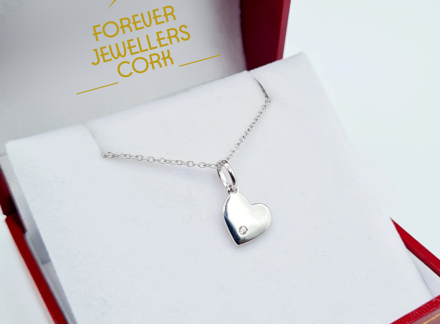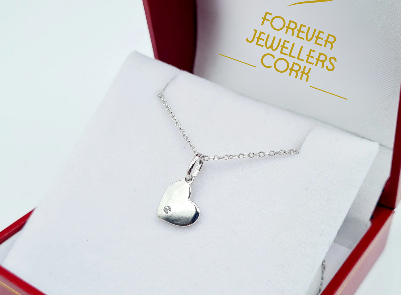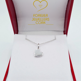 Sterling Silver Heart Disc with CZ Detail & Chain