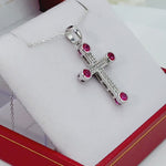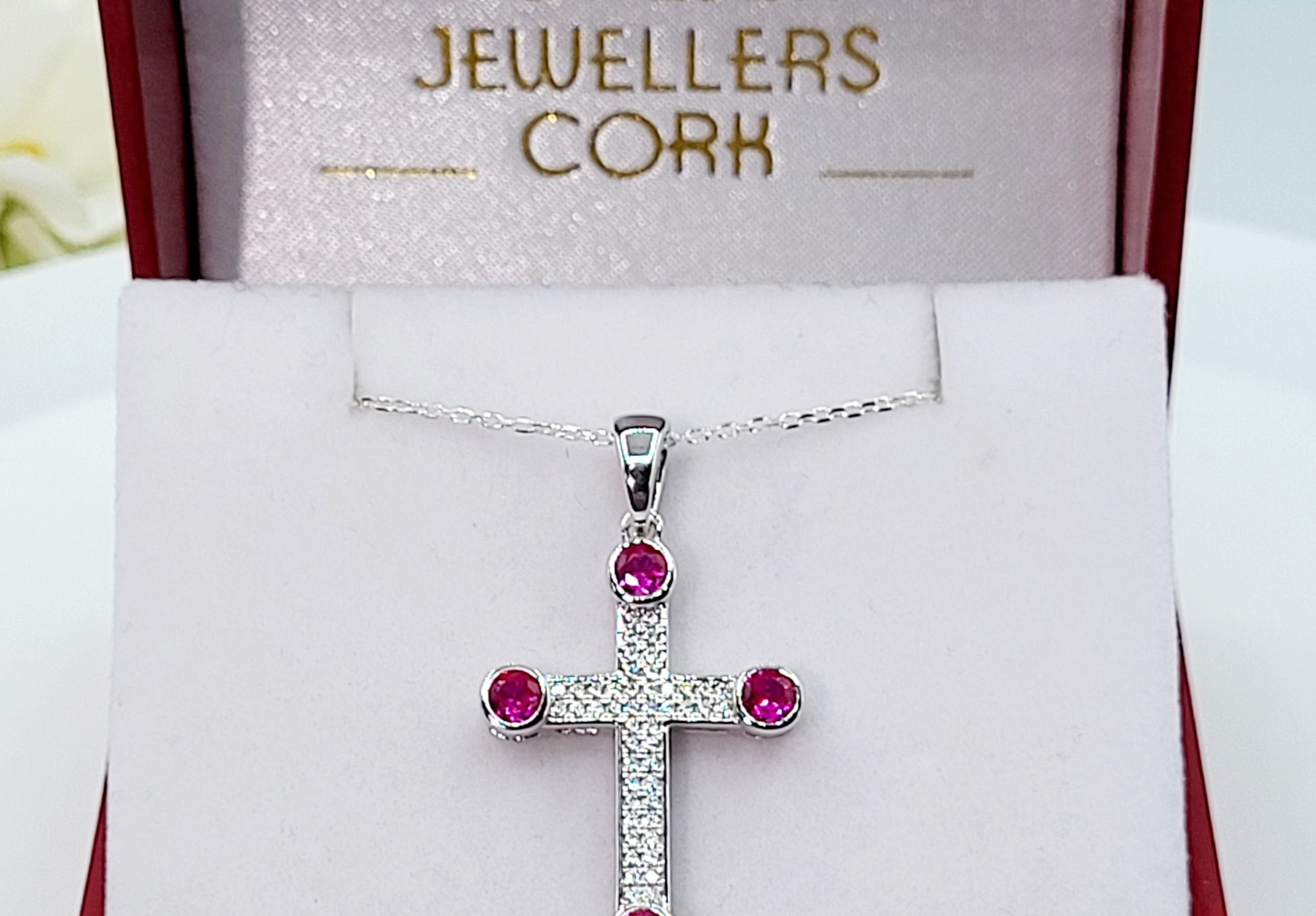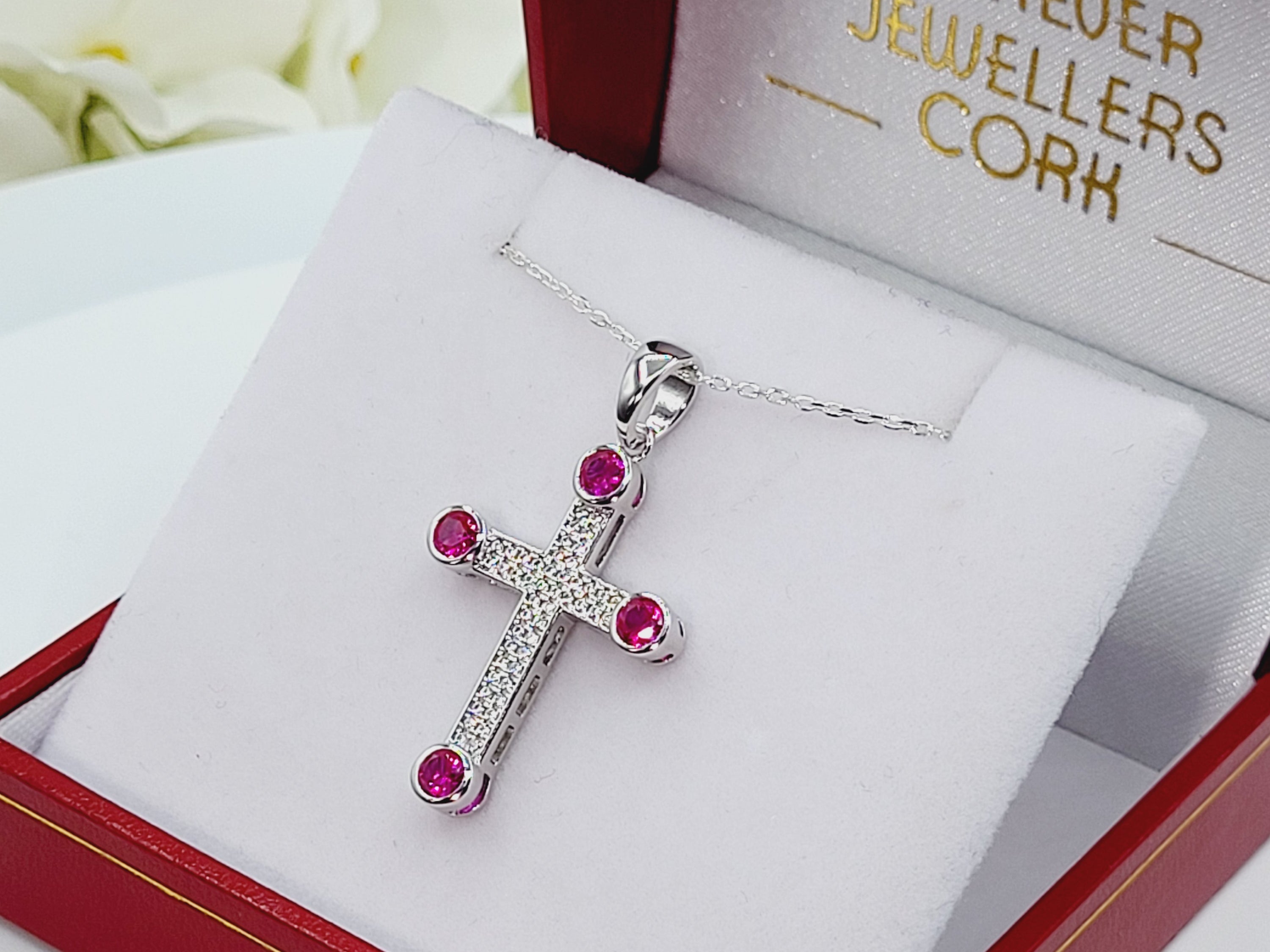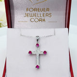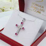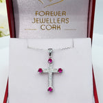 Sterling Silver Pink Cubic Zirconia Cross & Chain