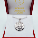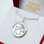 Sterling Silver Round St. Christopher Medal & Chain (Double Sided)