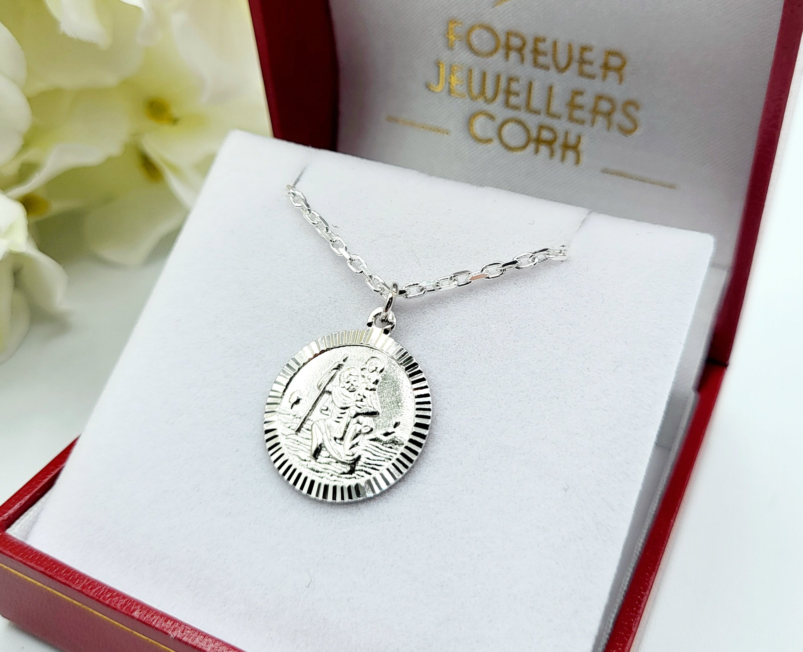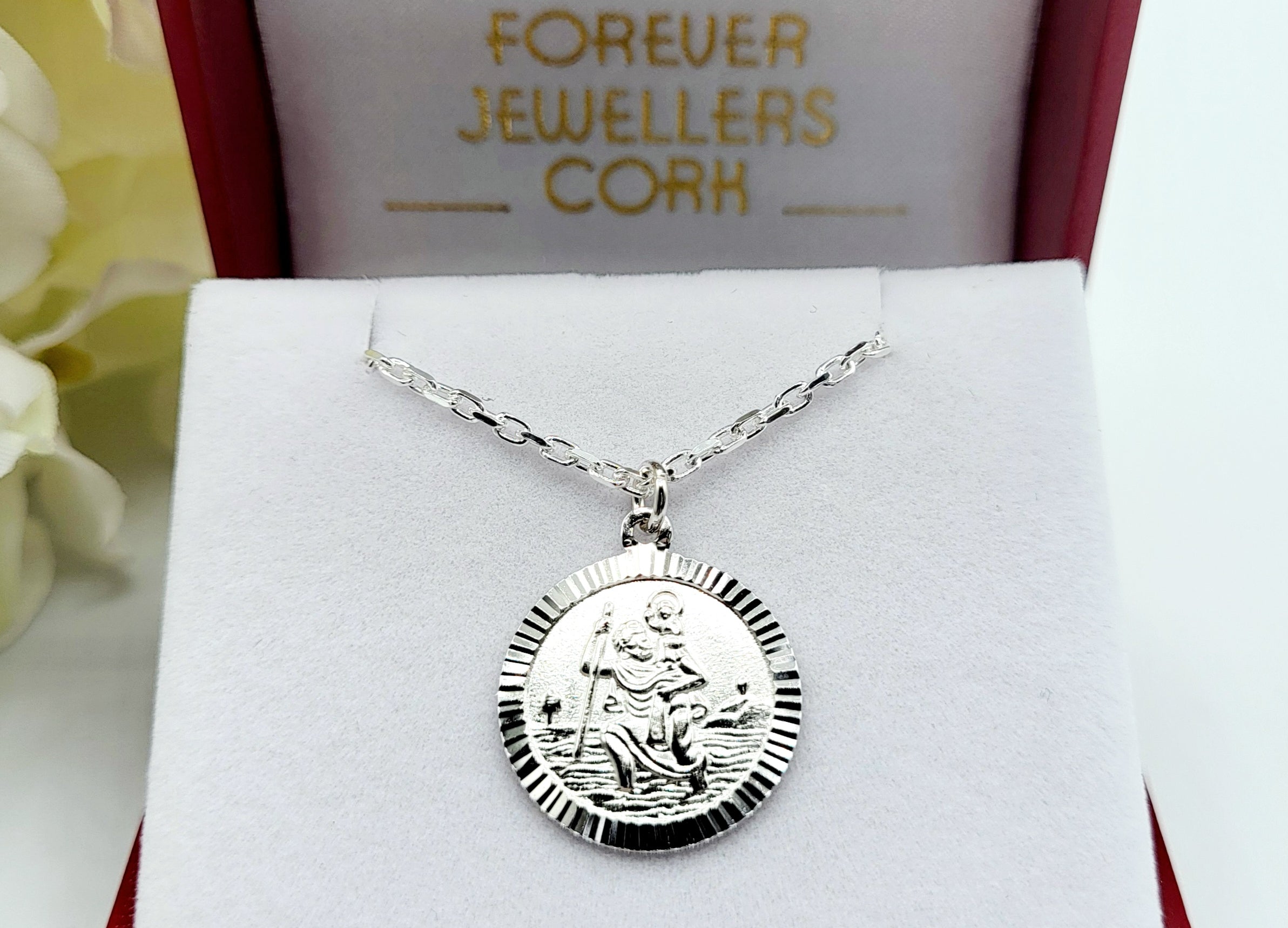 Sterling Silver St. Christopher's Medal on 20 inch Diamond Cut Belcher Chain