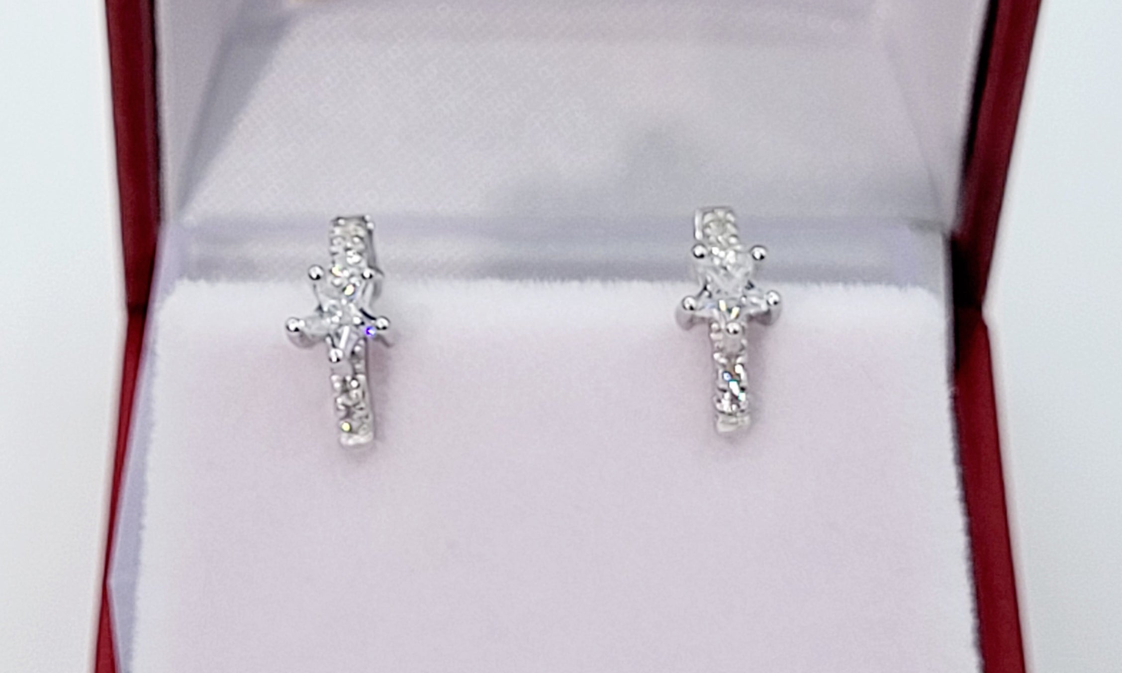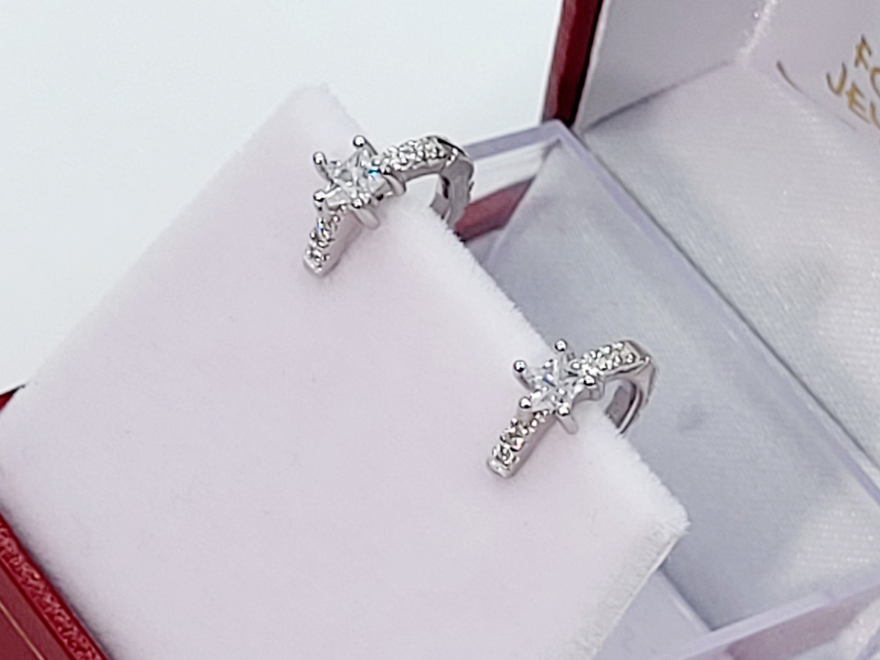 Sterling Silver Star Cubic Zirconia Huggie Earrings