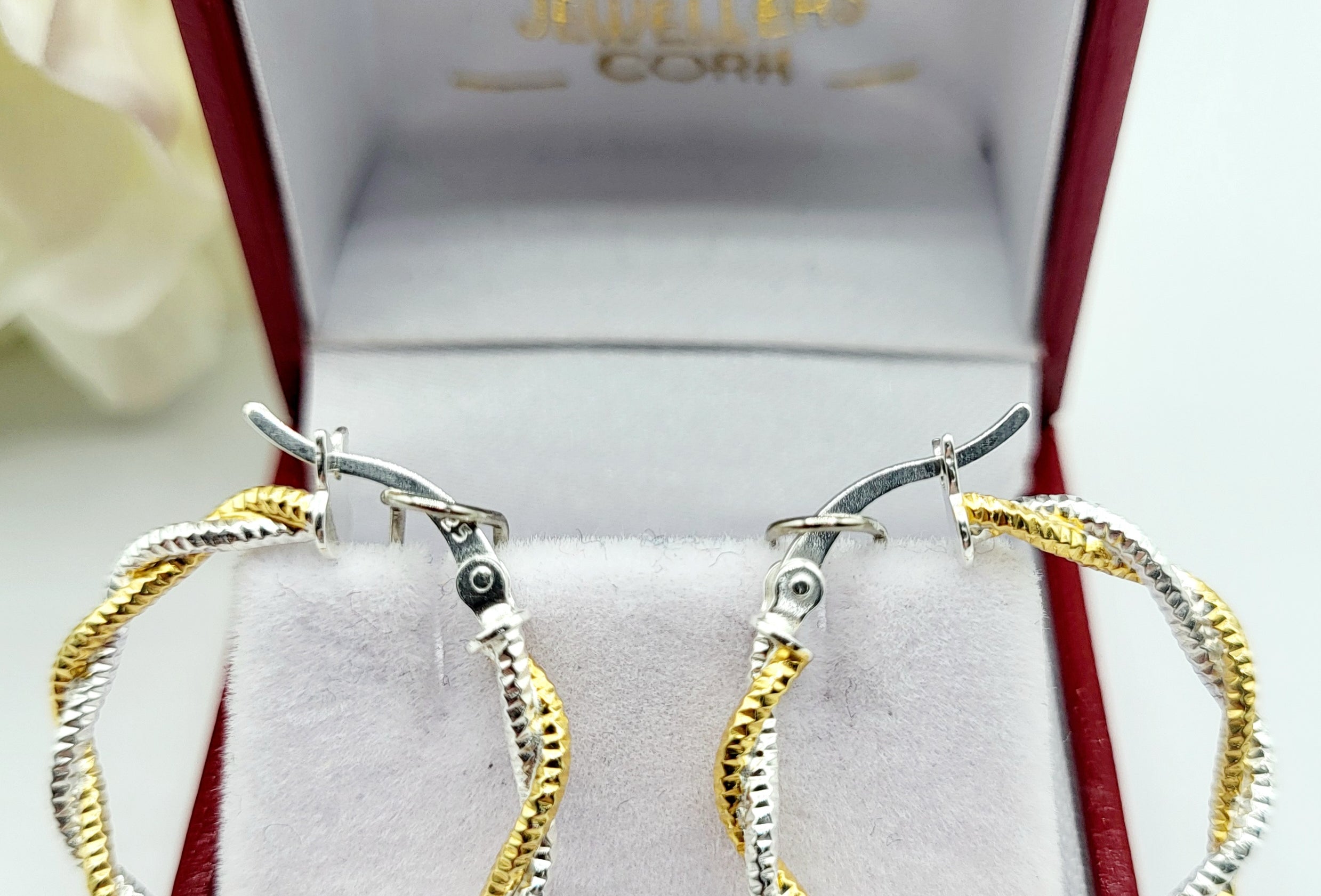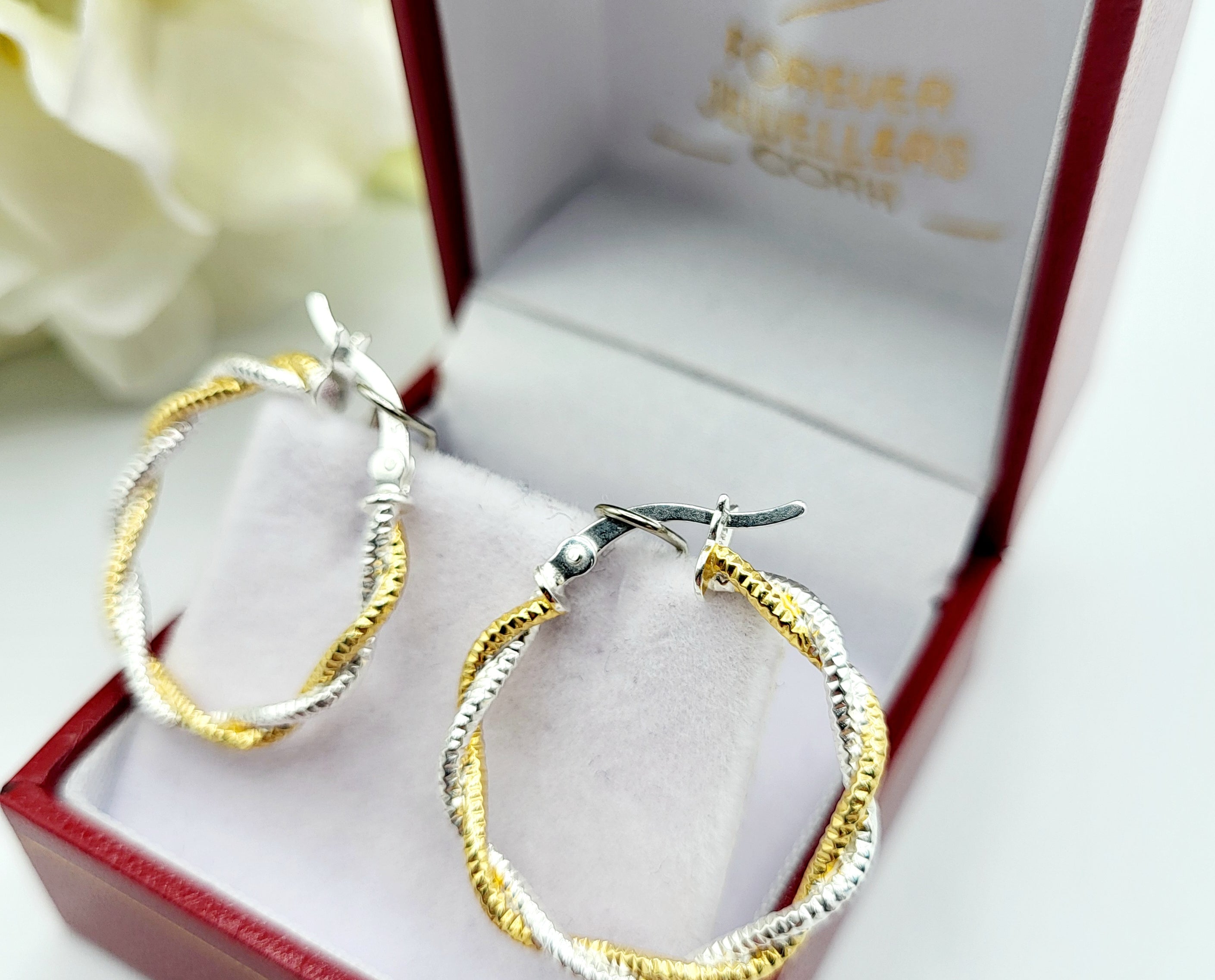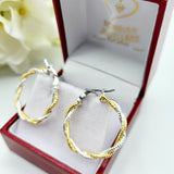 Gorgeous Sterling Silver Twist Two Tone Hoop Earrings